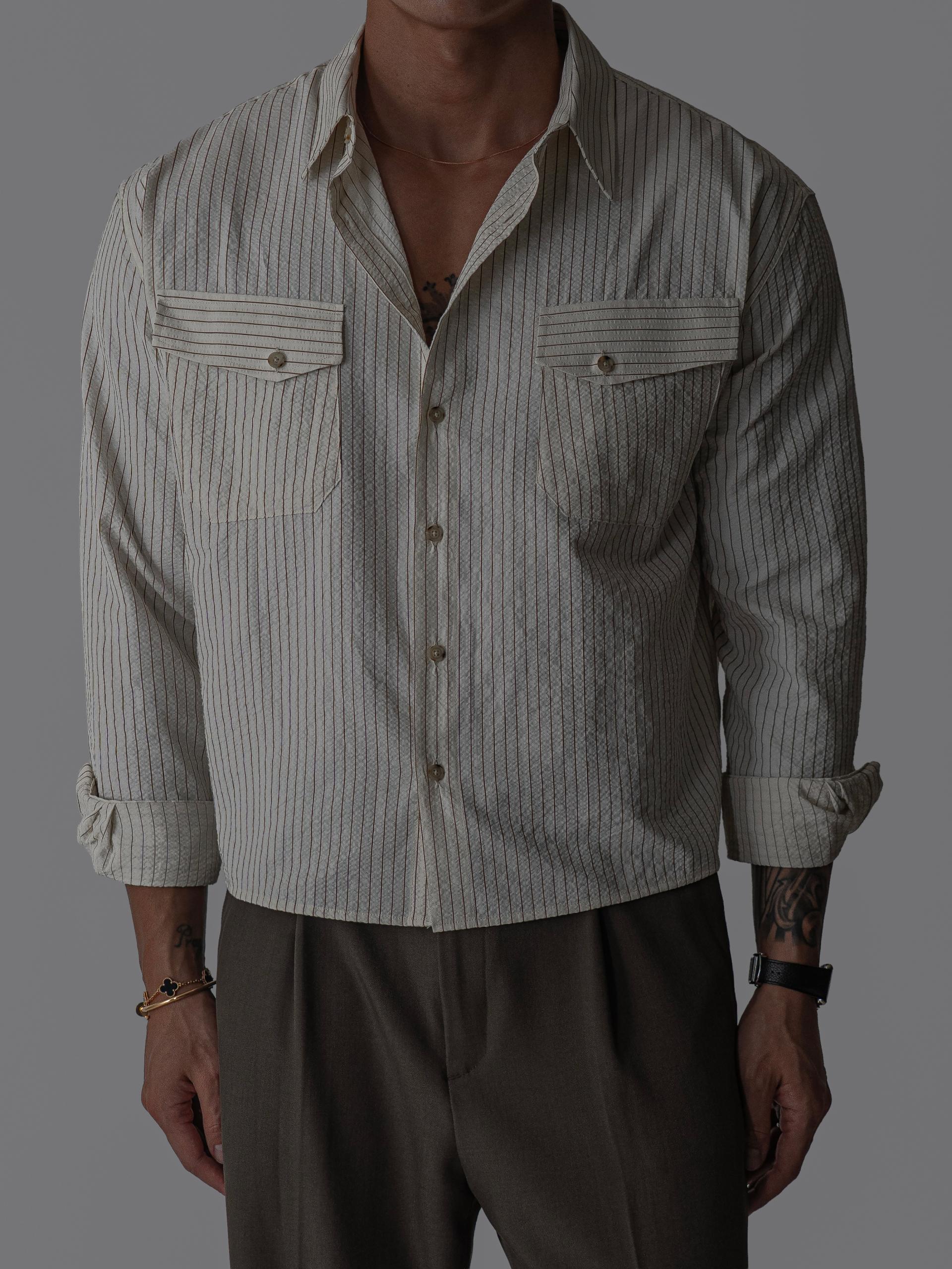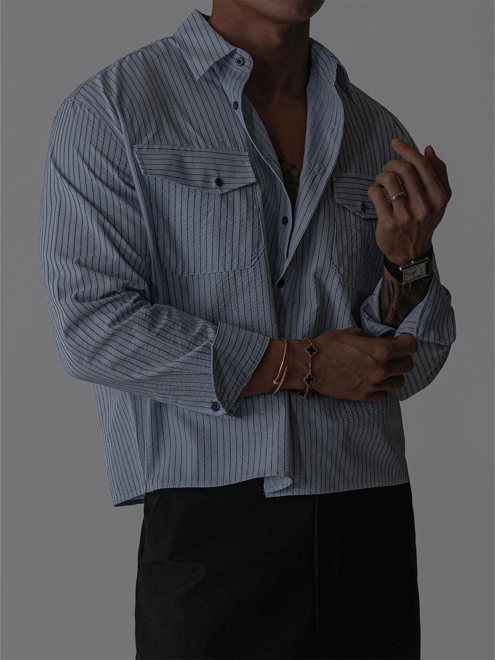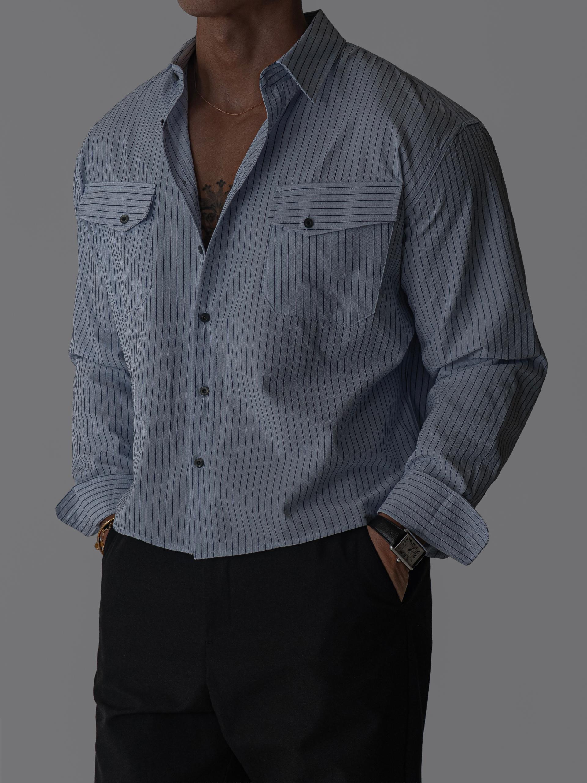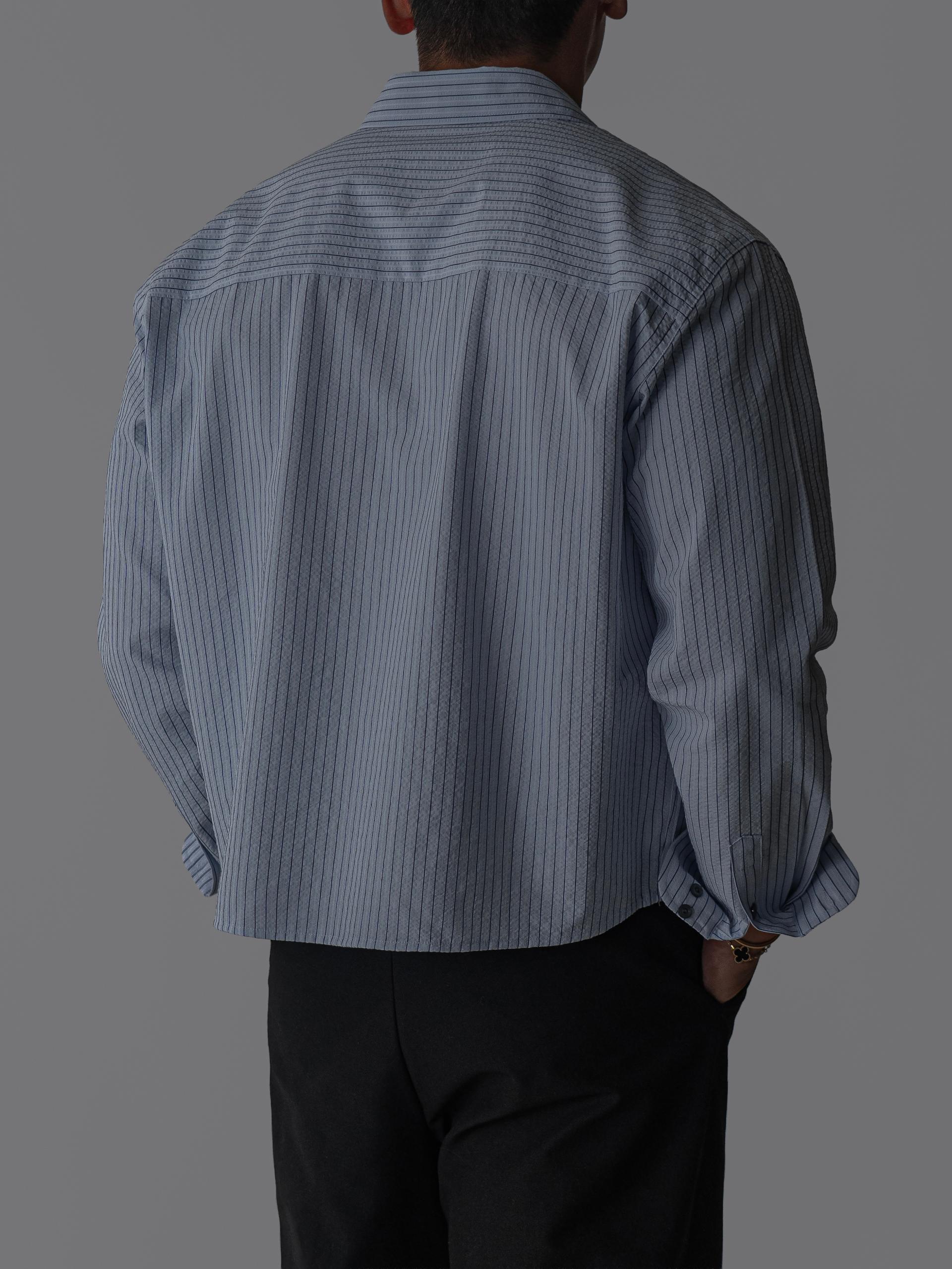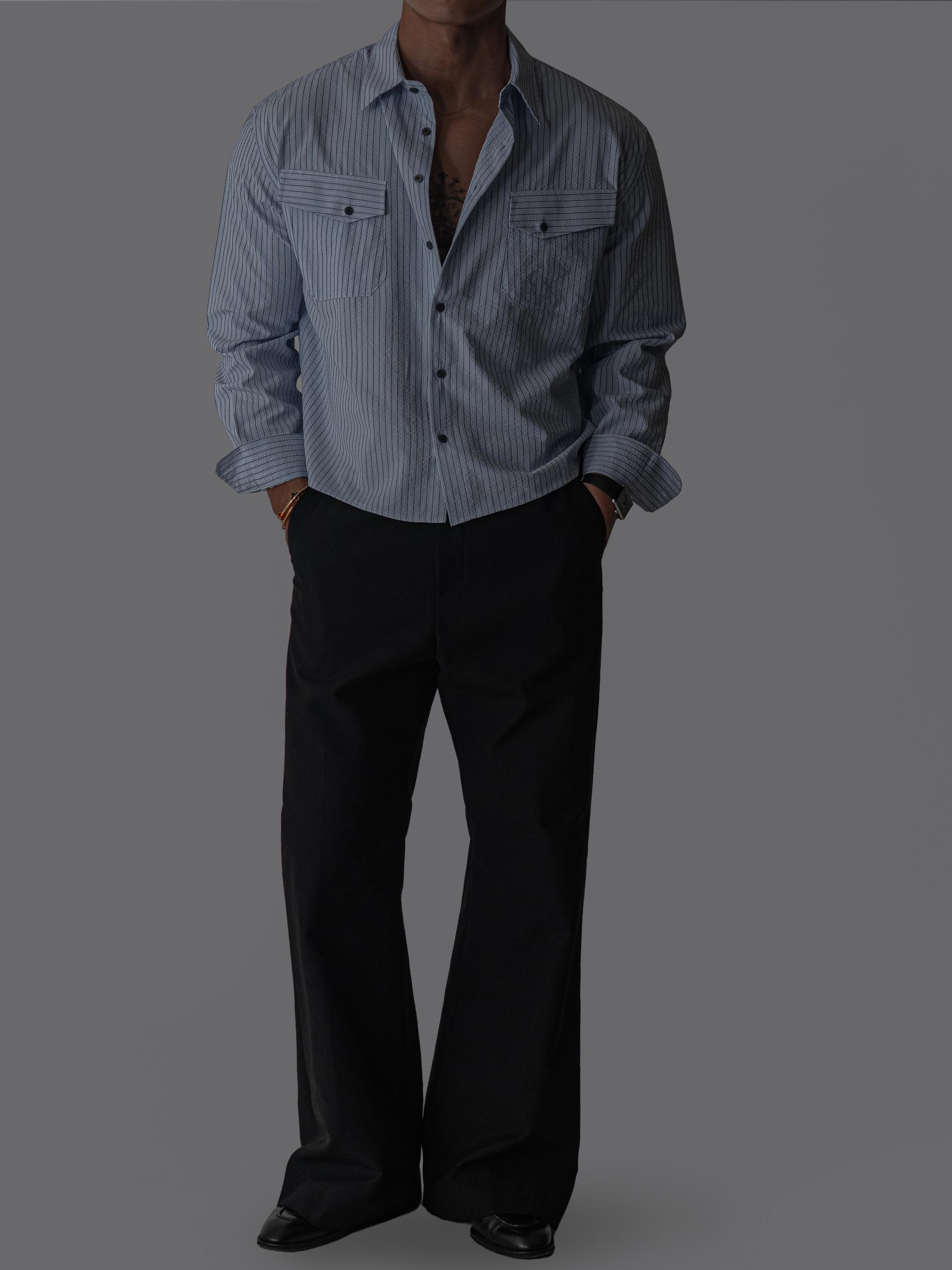 (당일발송) 데니 스트라이프 투 포켓 크롭 셔츠 (2color)