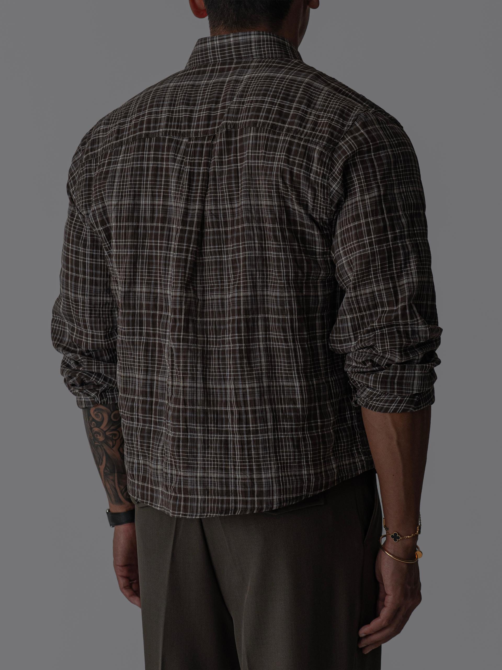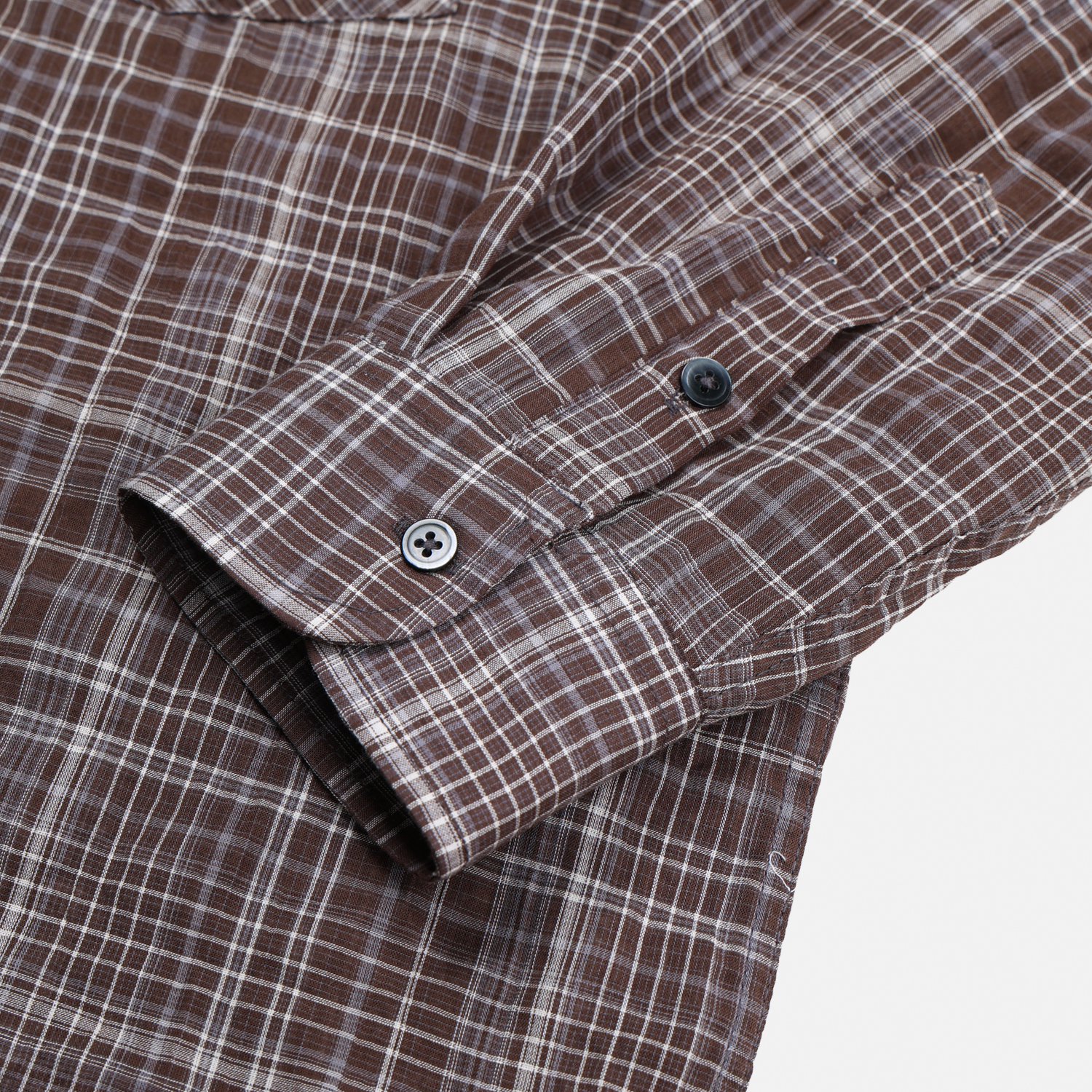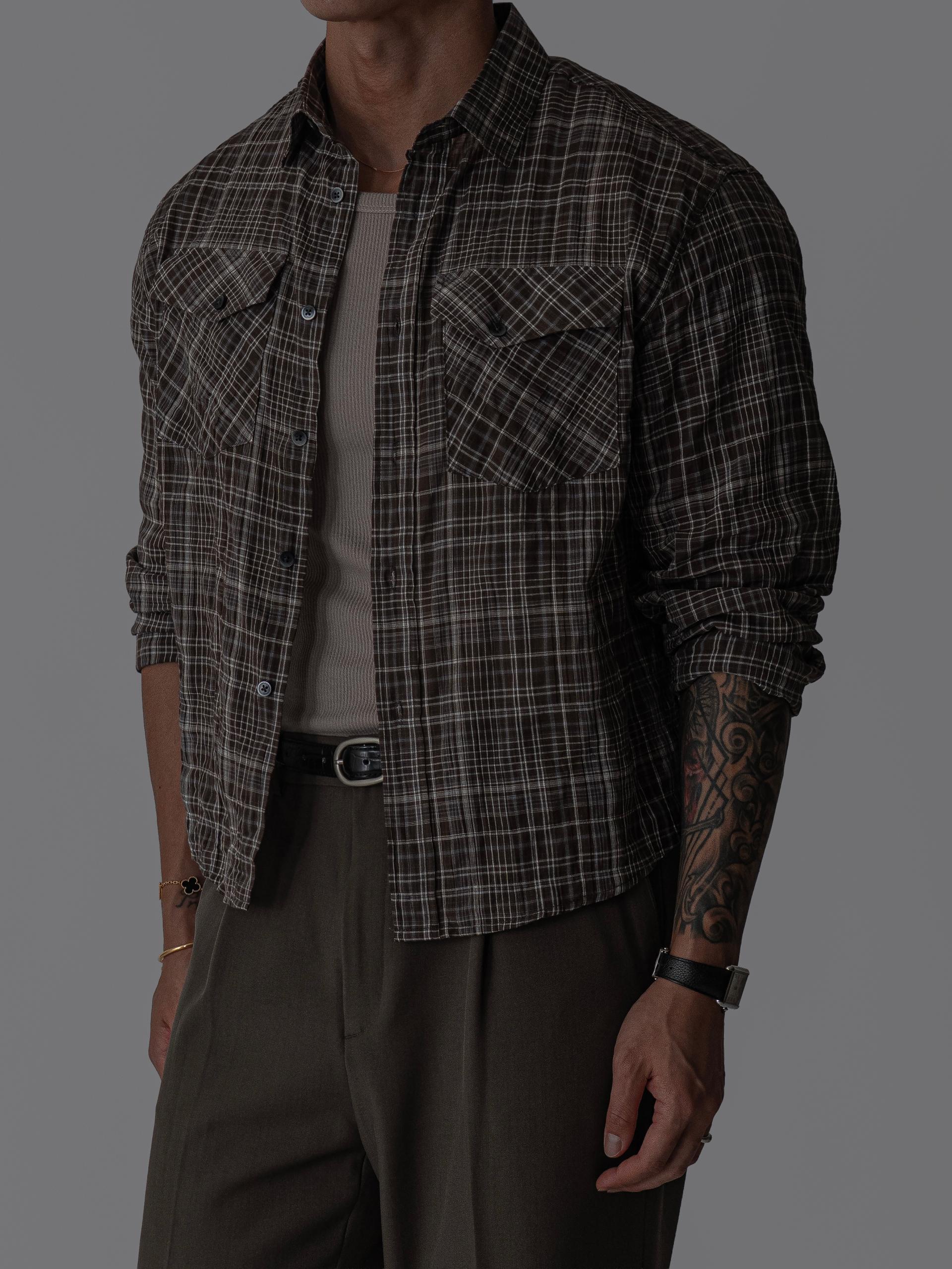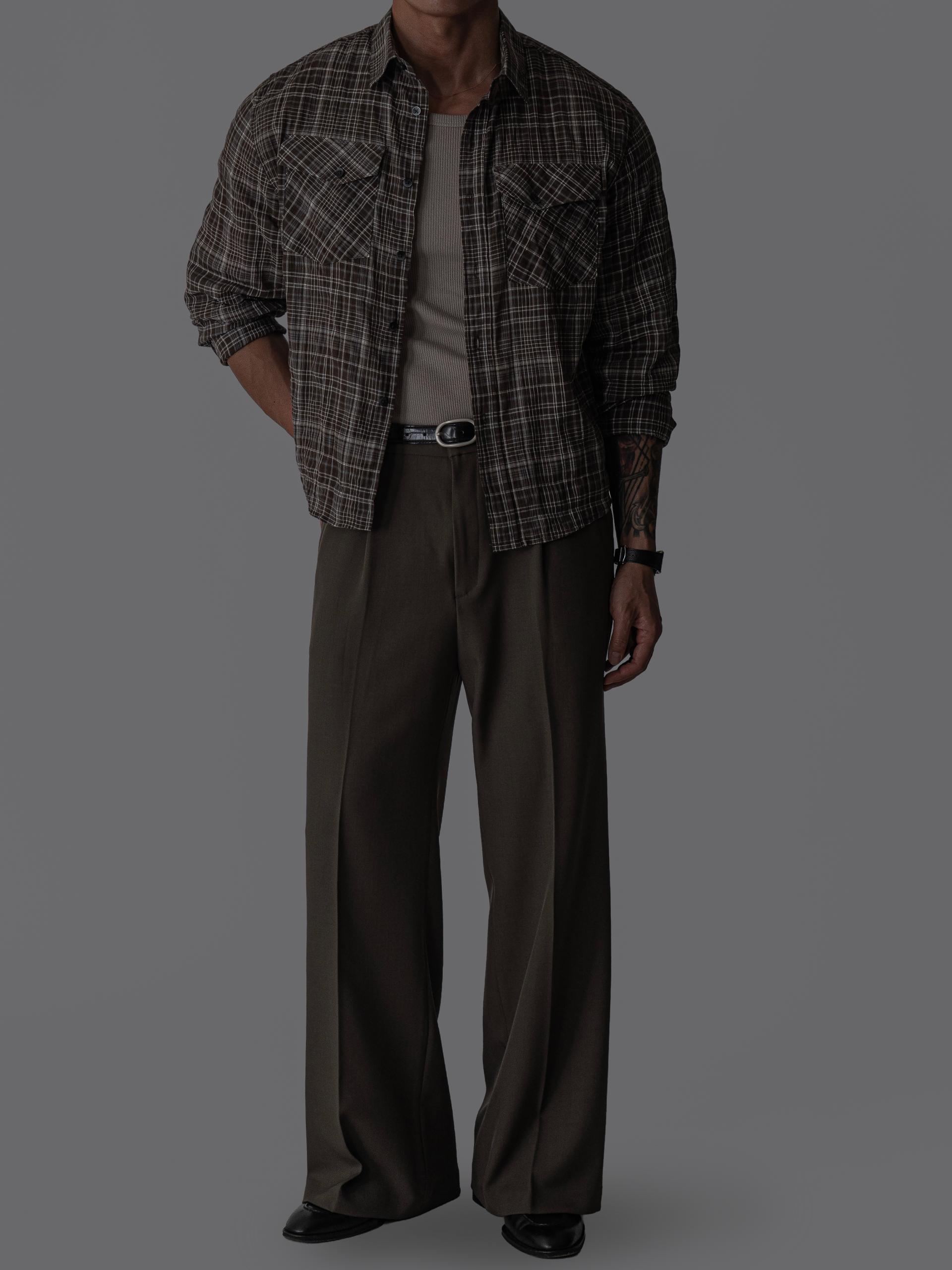 - 빈티지한 체크 패턴과 브라운 컬러감으로 남성적인 무드 연출