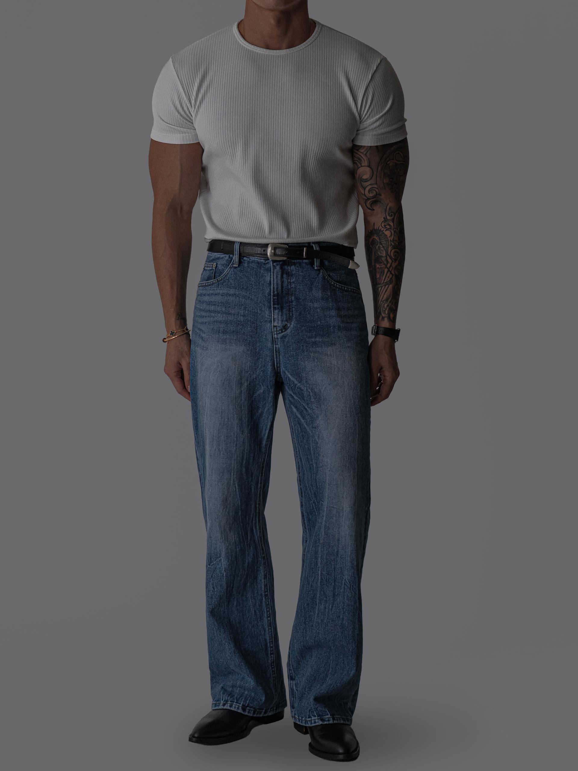 벨로 링클 시와 워시드 플레어 데님 팬츠 (one color)