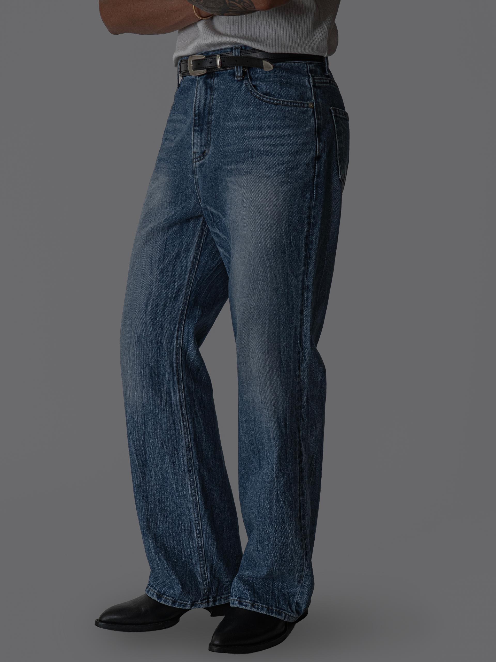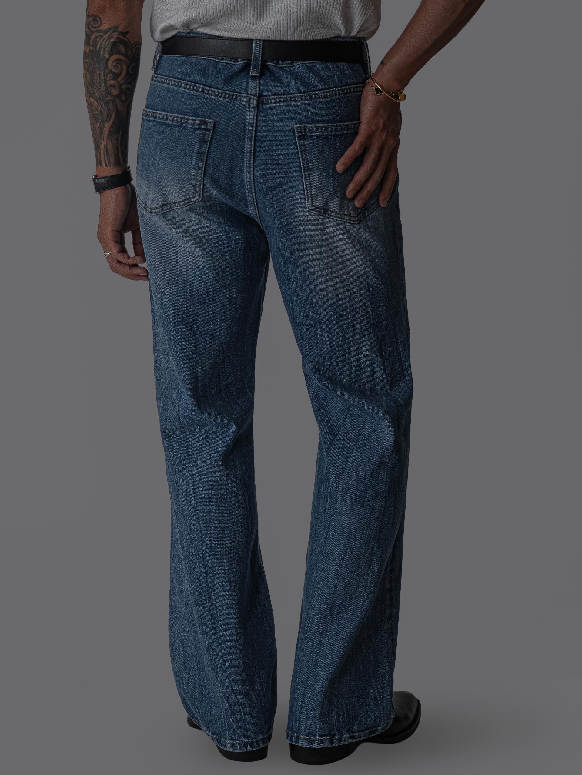 - 링클 주름 디테일과 워싱 가공으로 빈티지한 무드가 살아있는 데님 팬츠