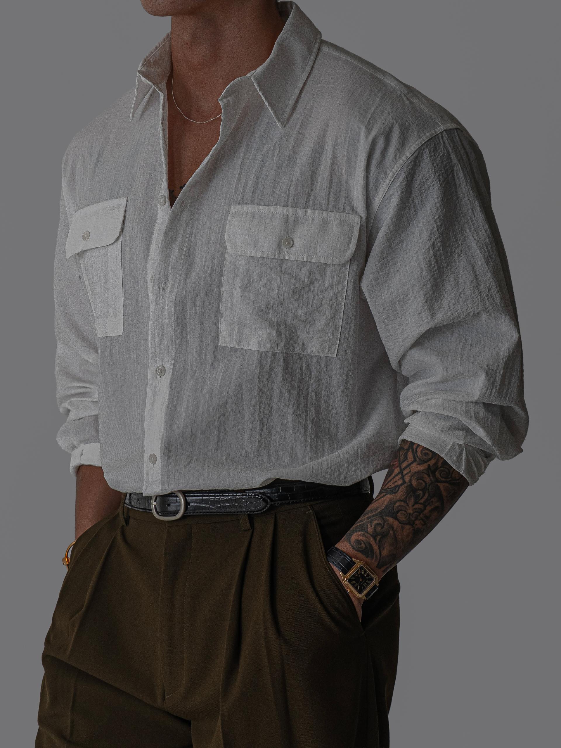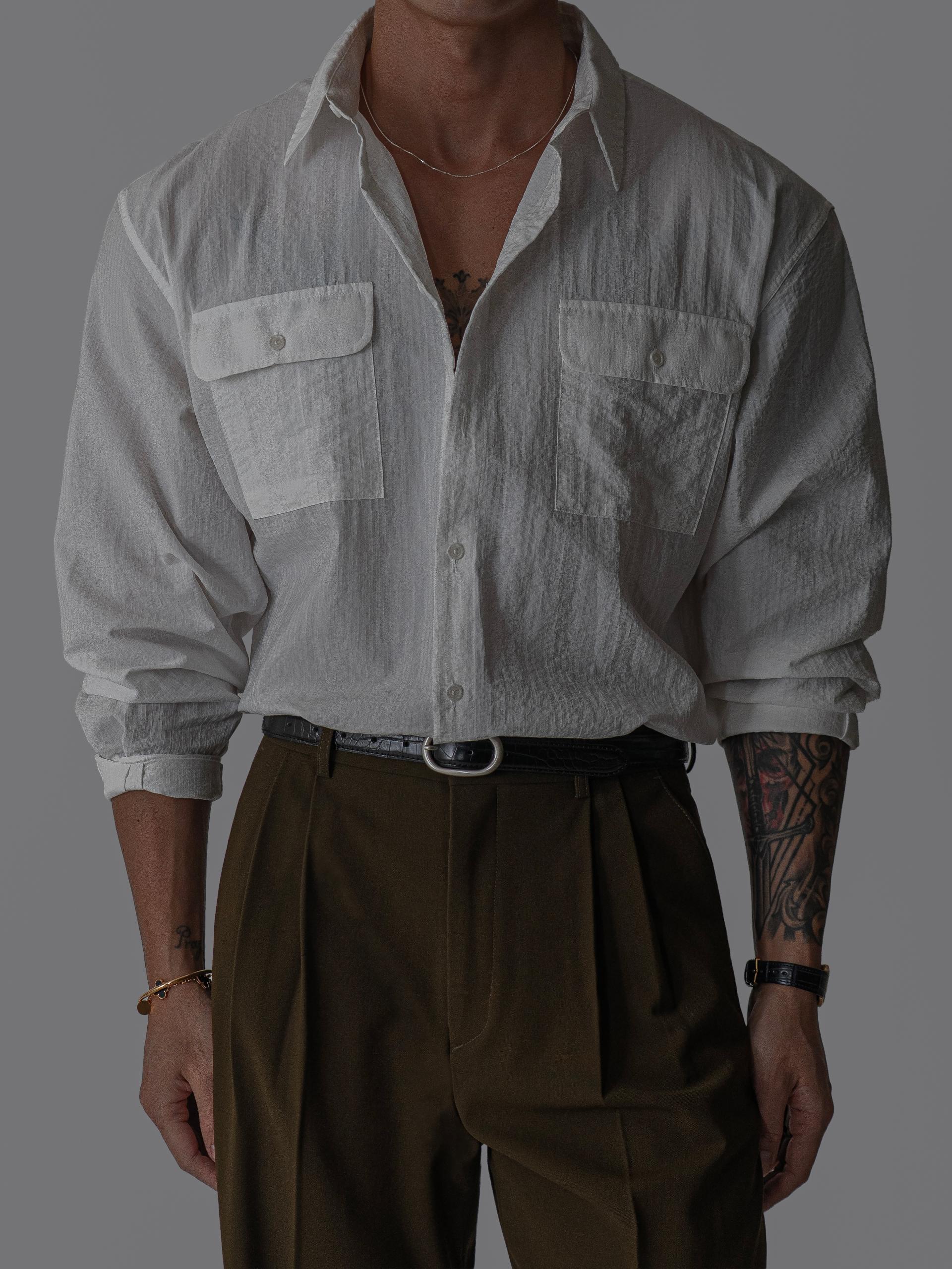 - 여유있는 핏과 부드러운 드레이프감으로 단품·이너 모두 활용도 높은 셔츠