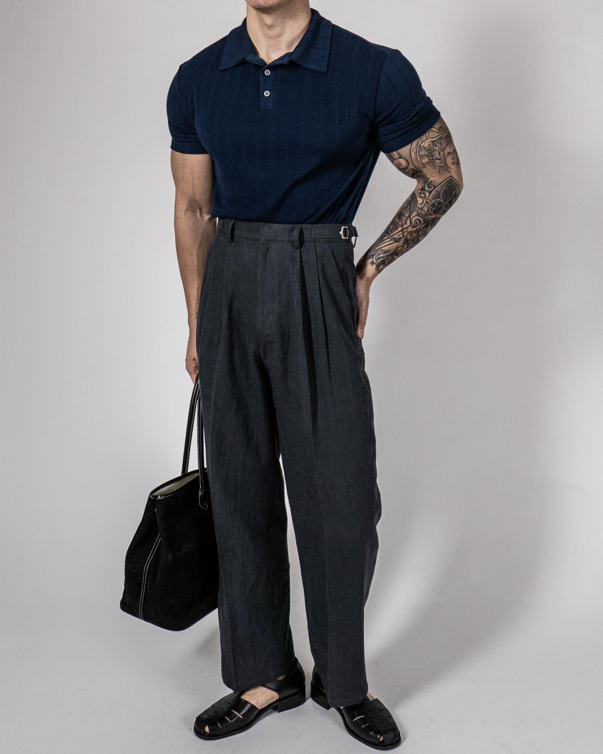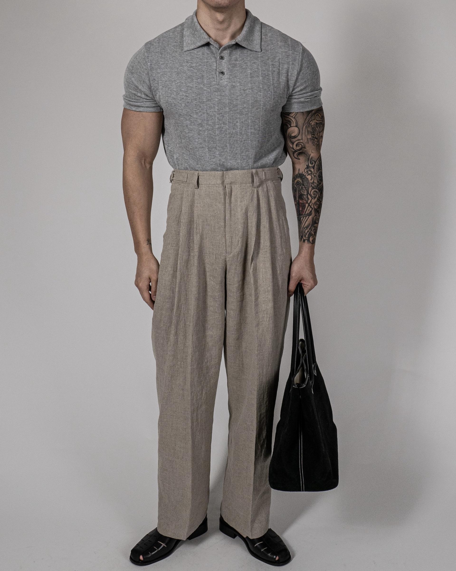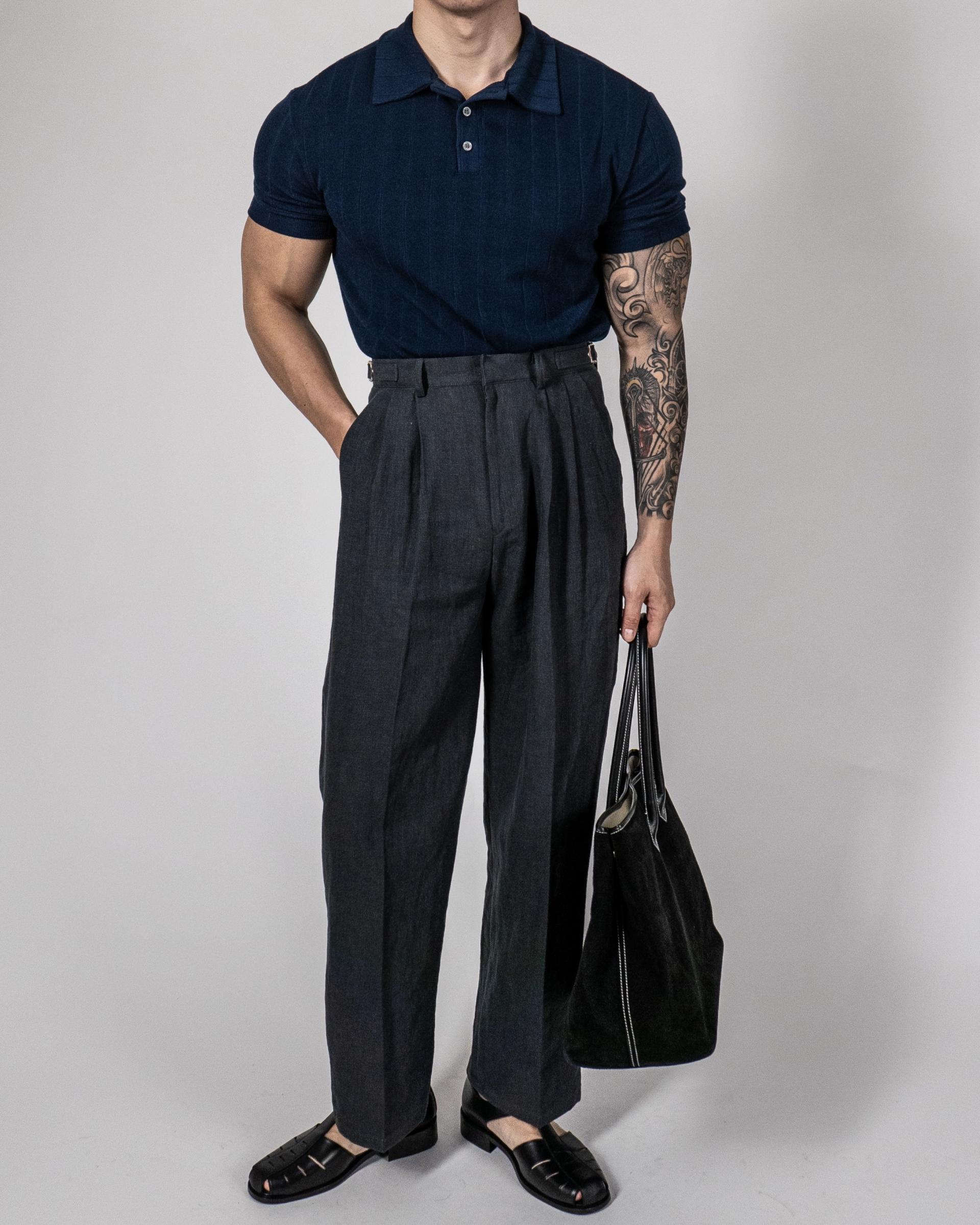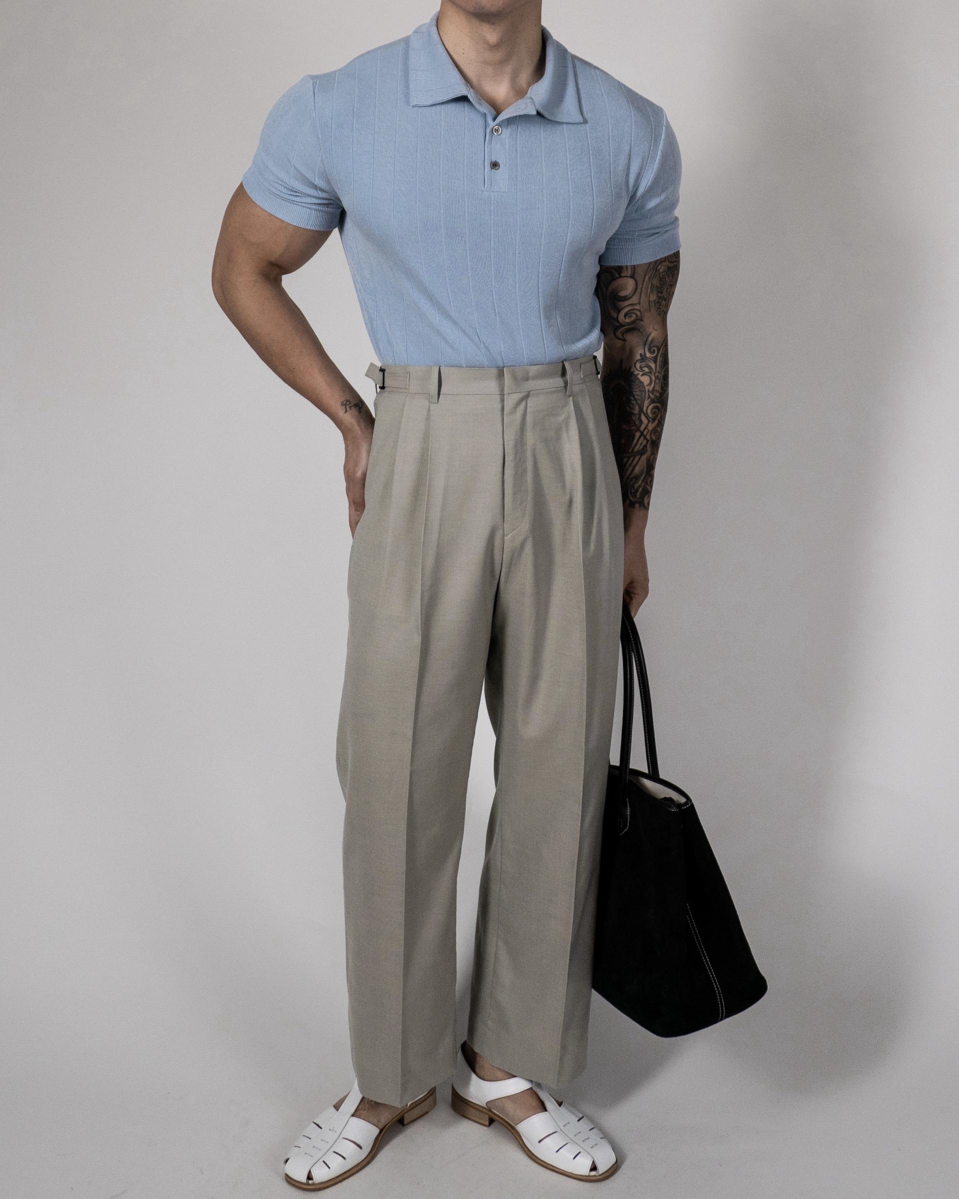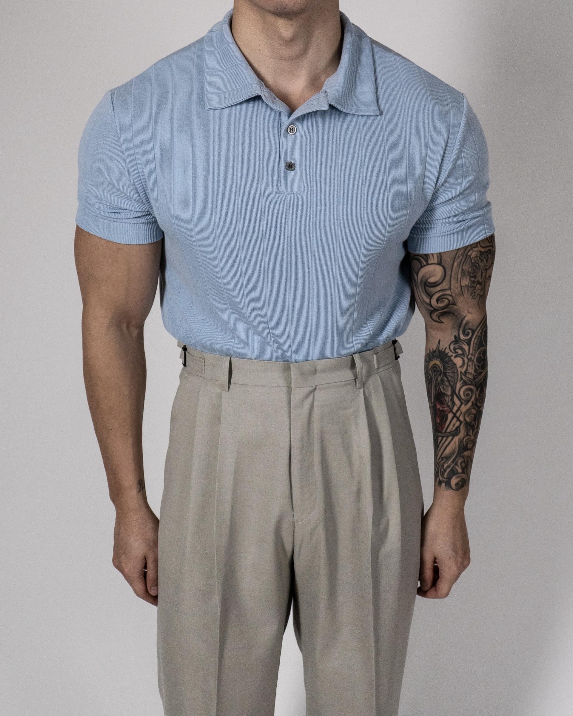 - 탄탄한 팔 립 조직과 짧은 팔길이의 머슬핏 카라 티셔츠