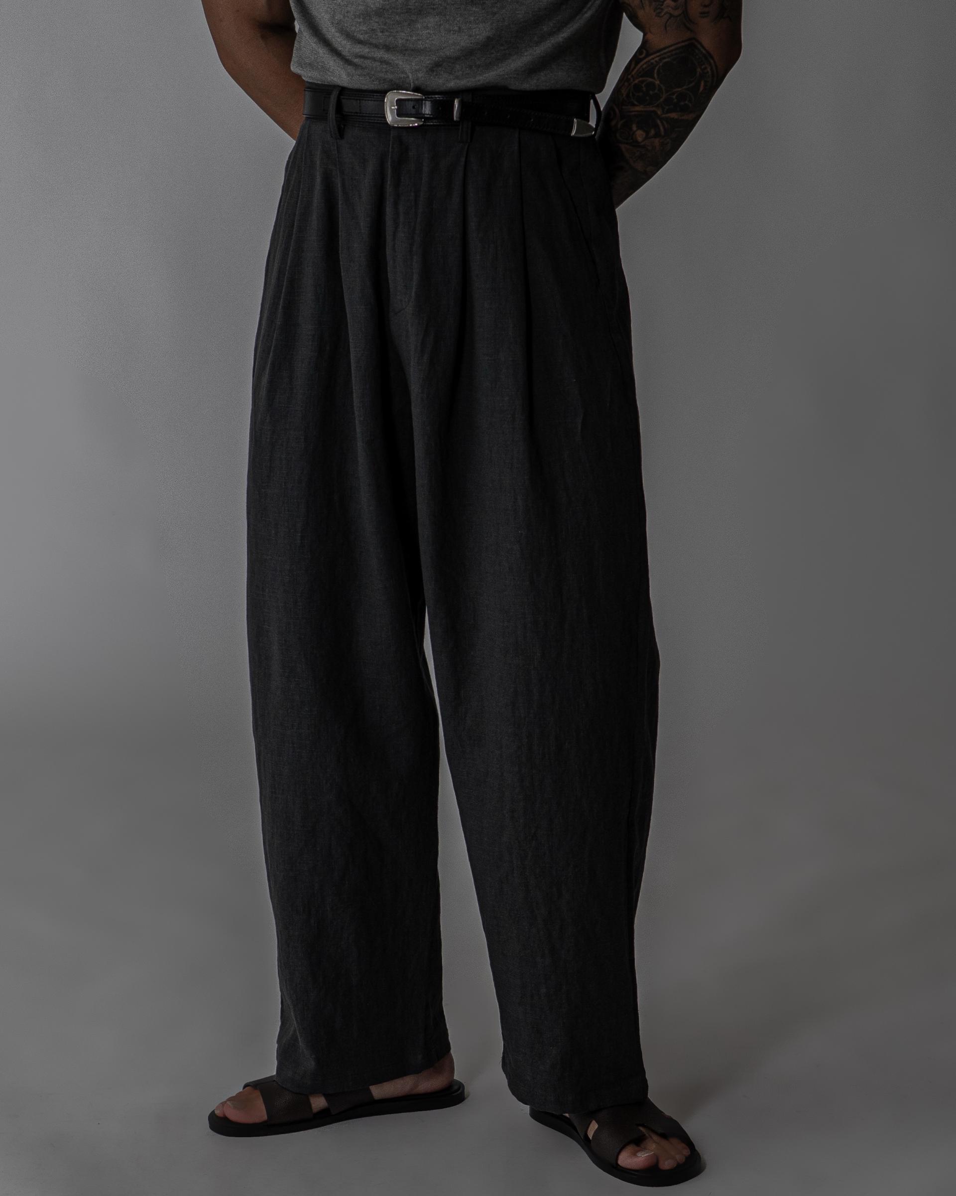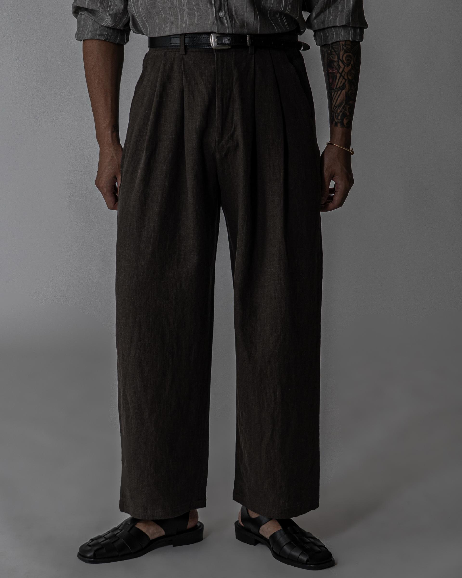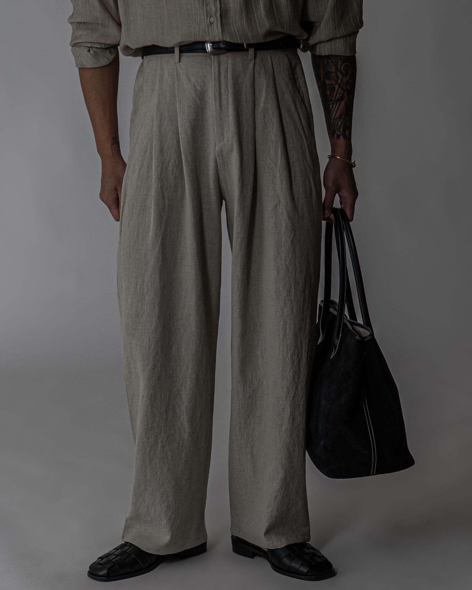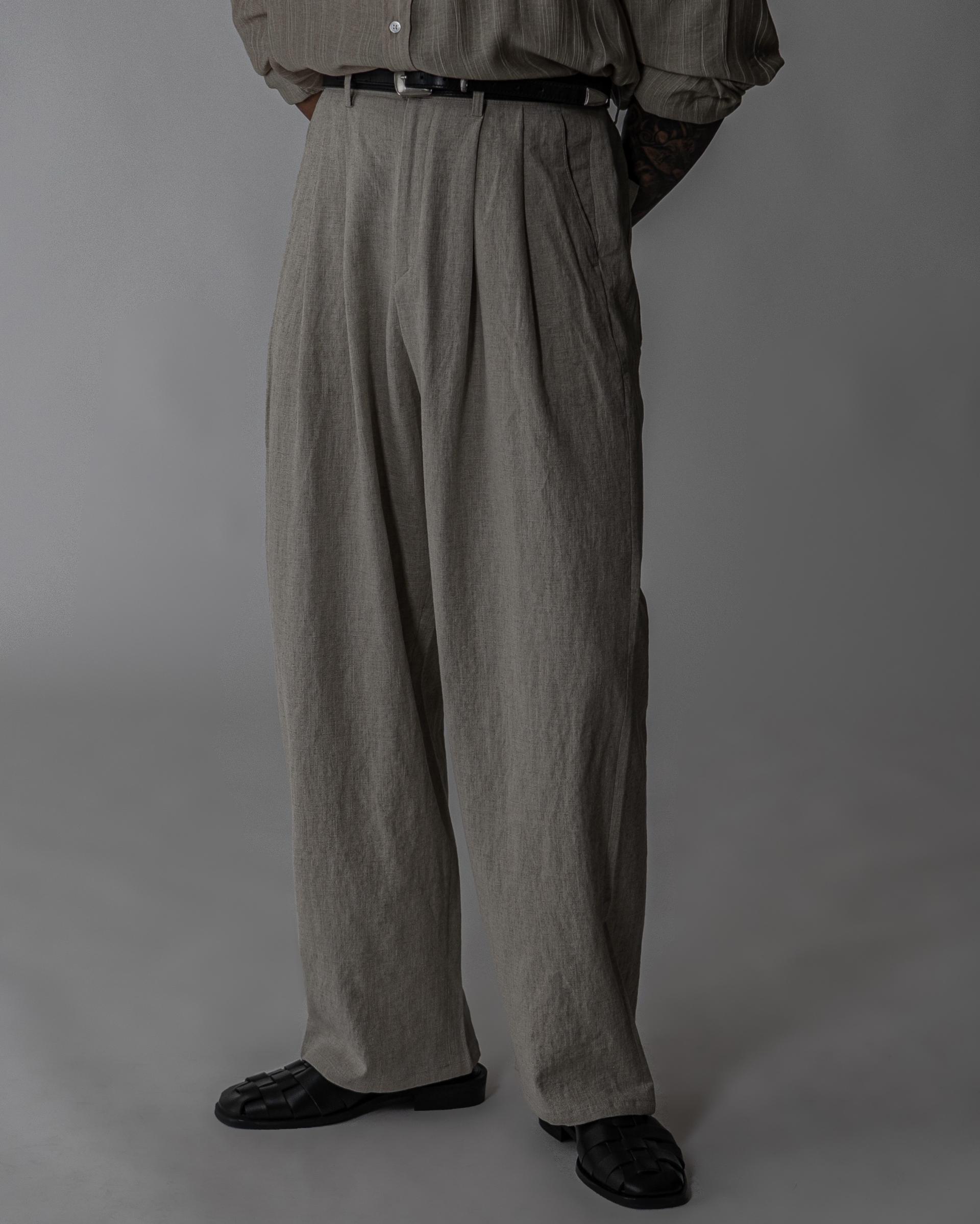 - 전면 투턱디테일, 와이드 핏 린넨 팬츠