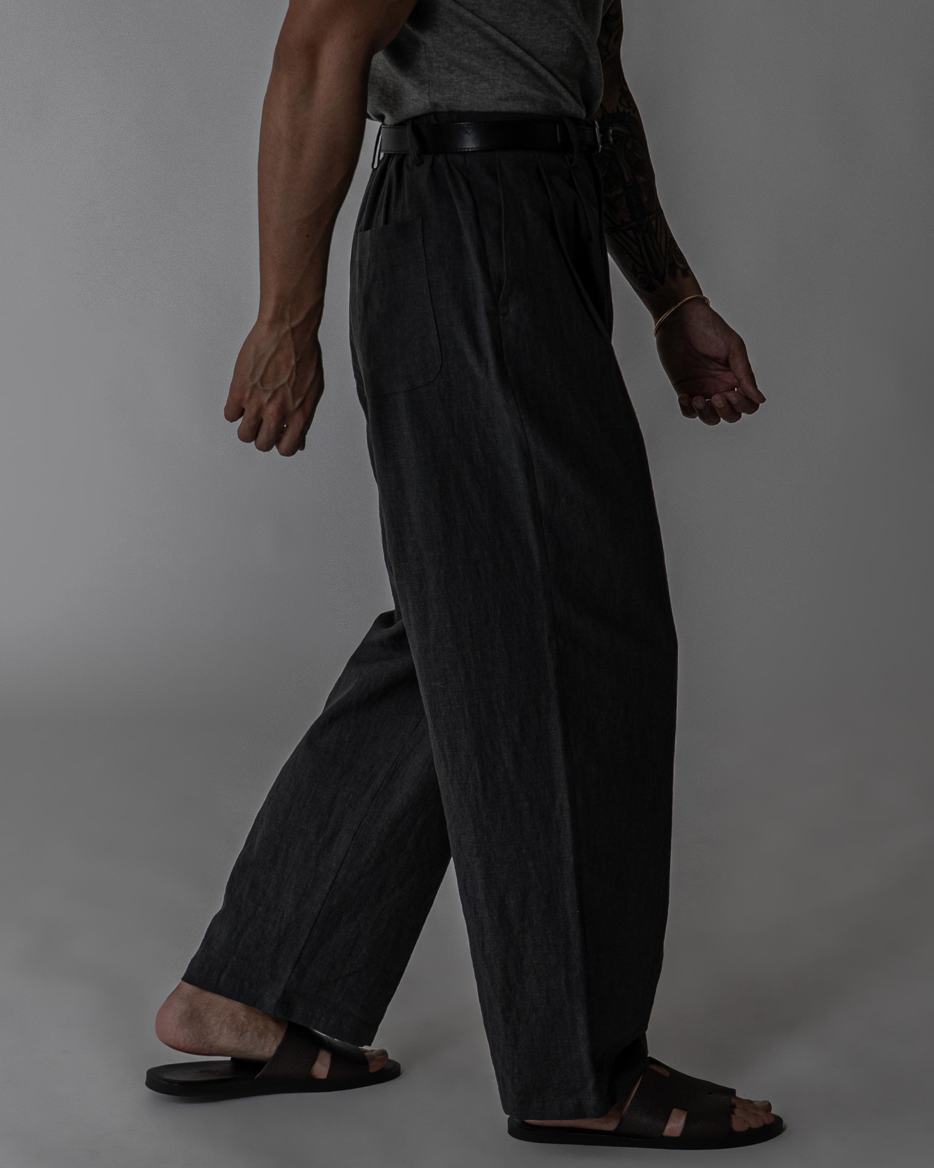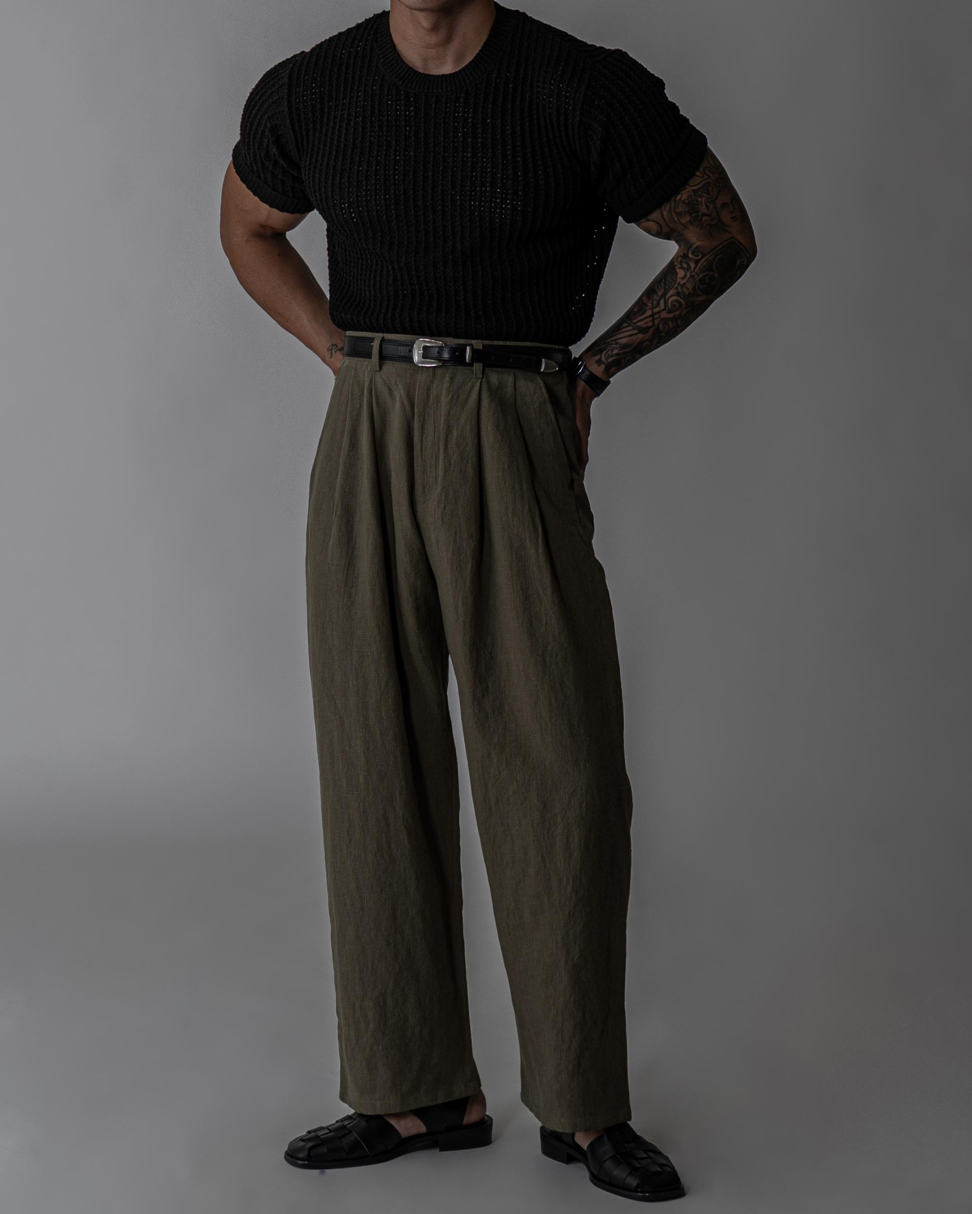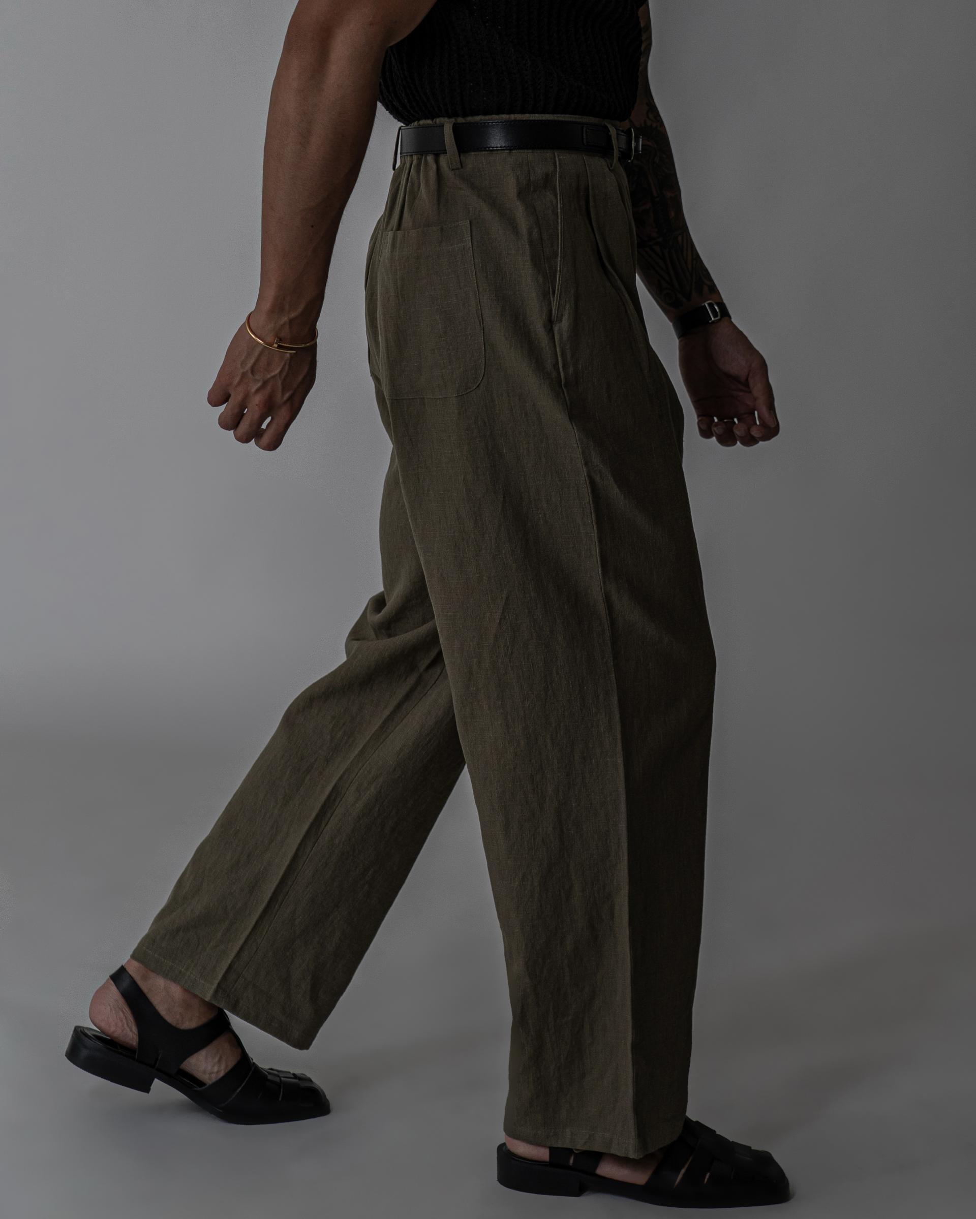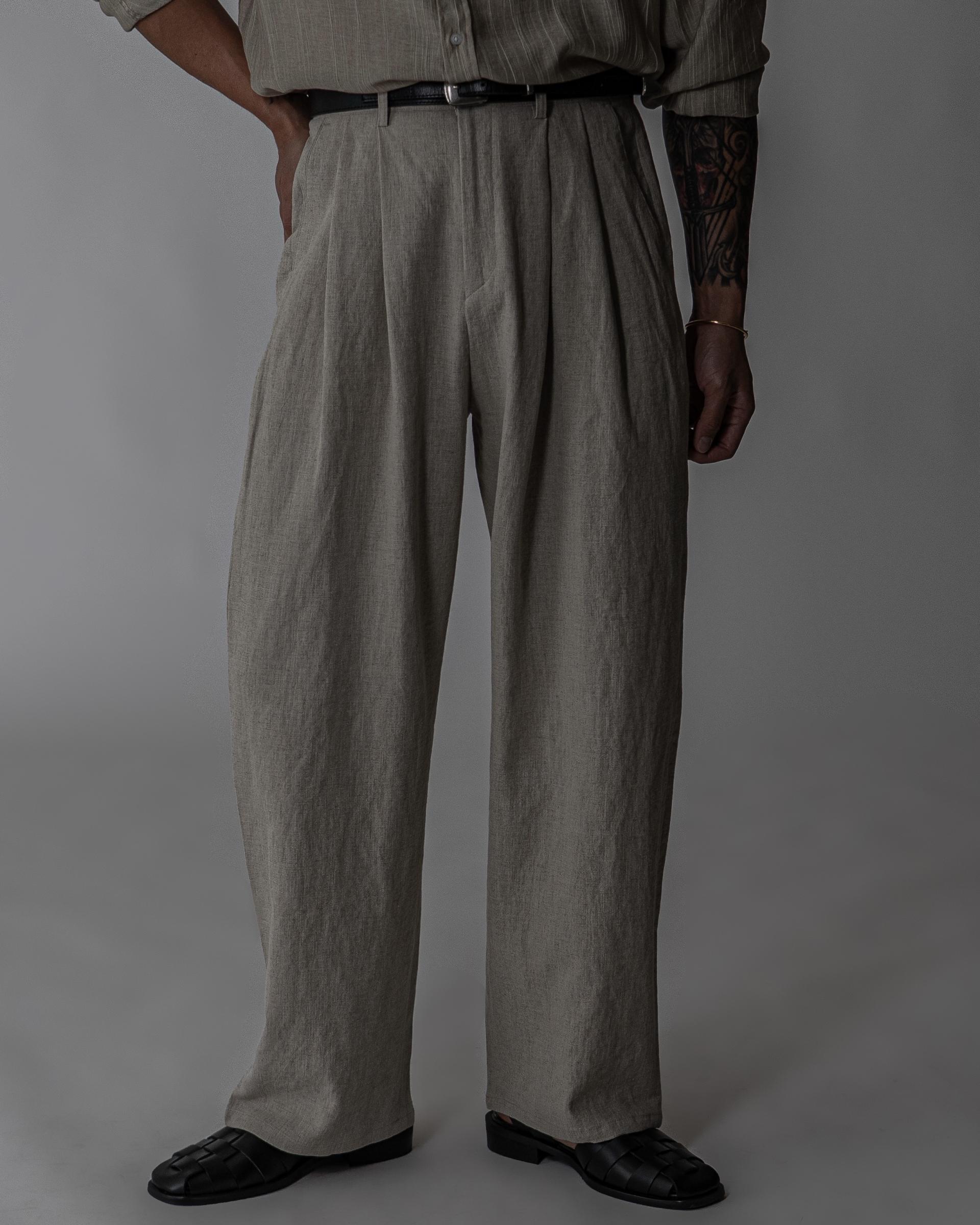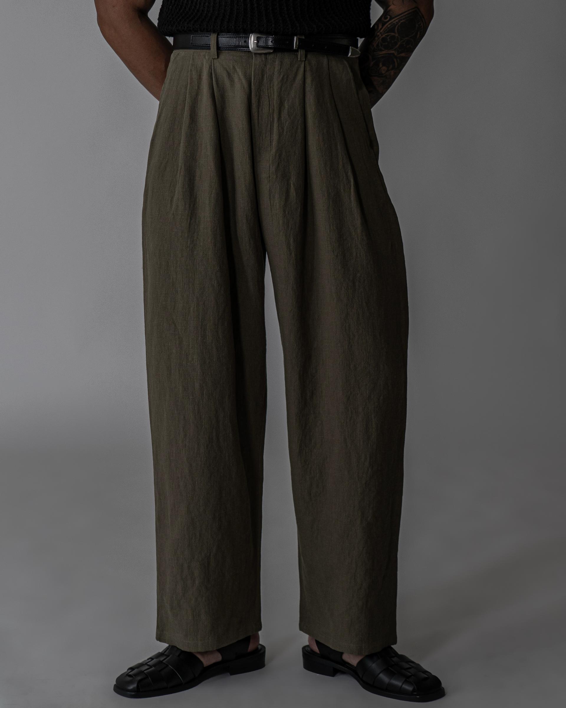- 전면 투턱디테일, 와이드 핏 린넨 팬츠