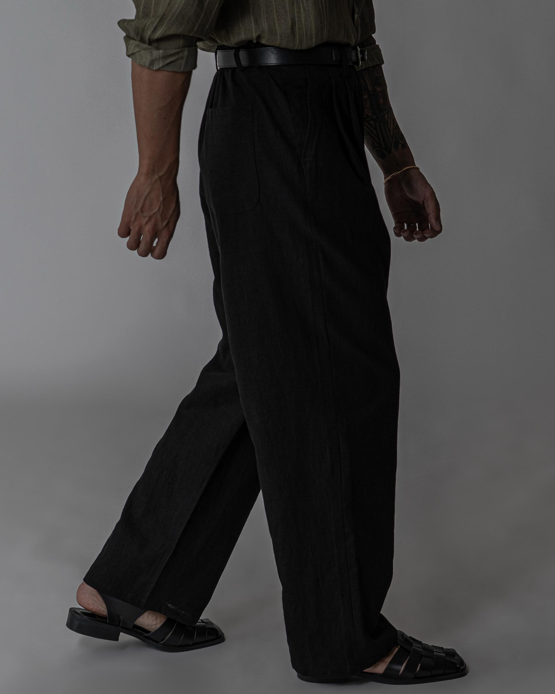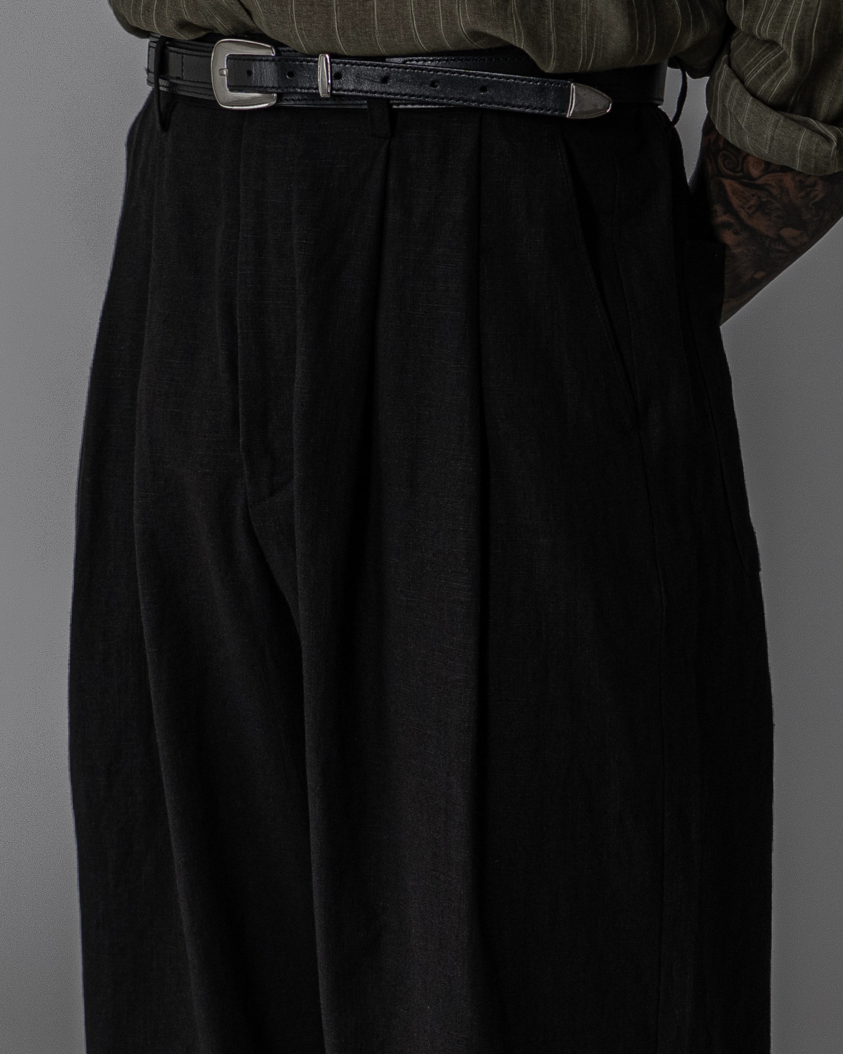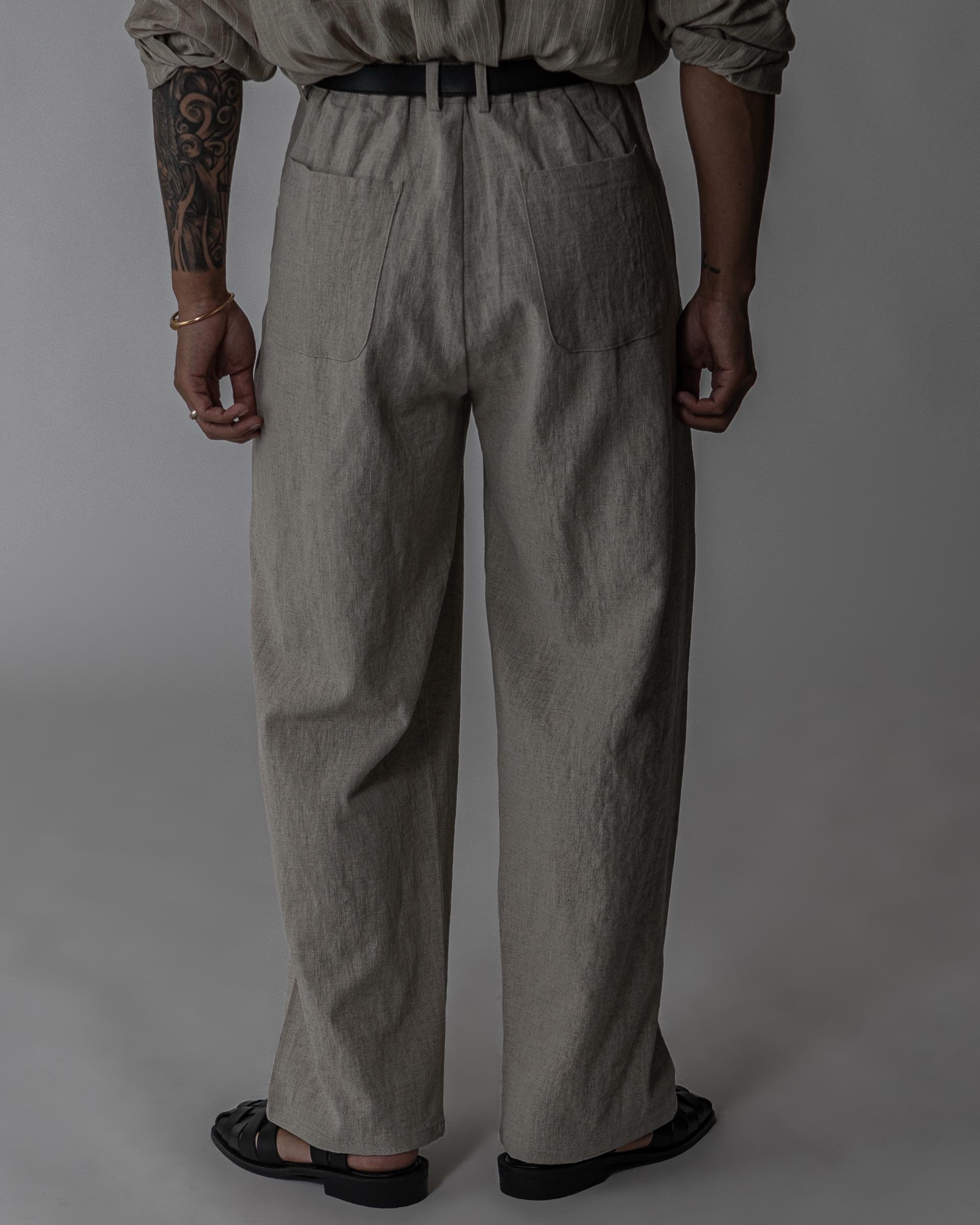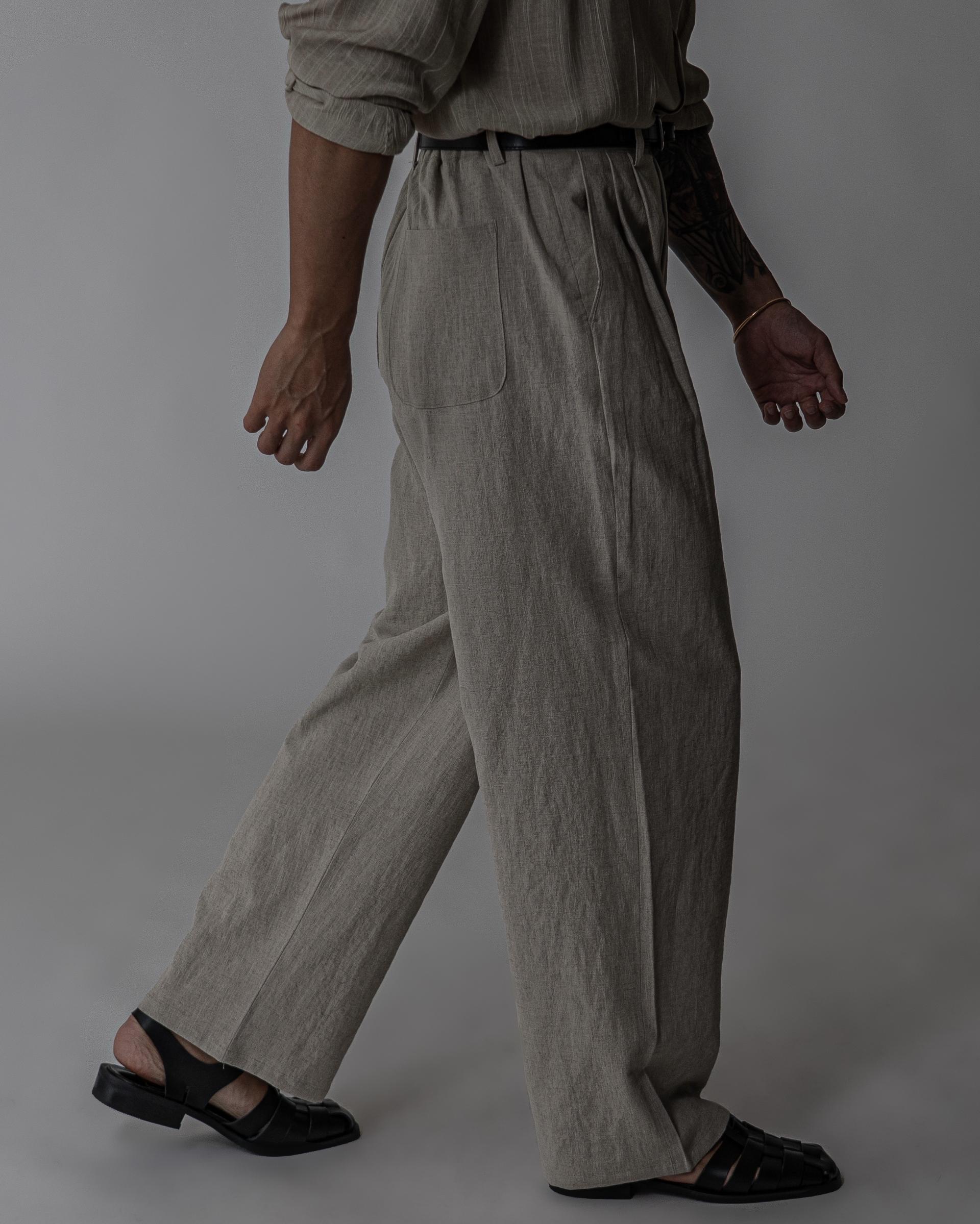 - 전면 투턱디테일, 와이드 핏 린넨 팬츠