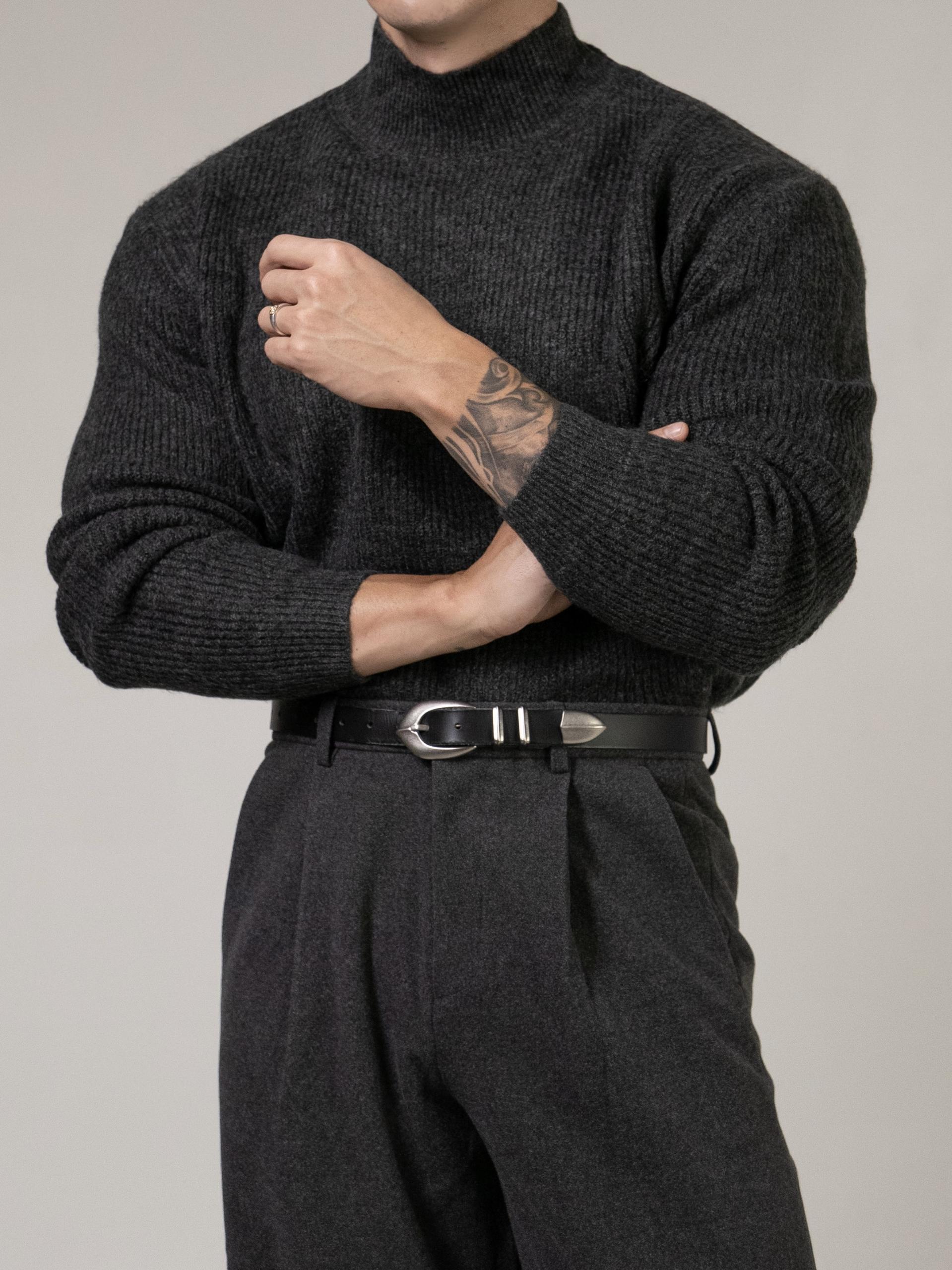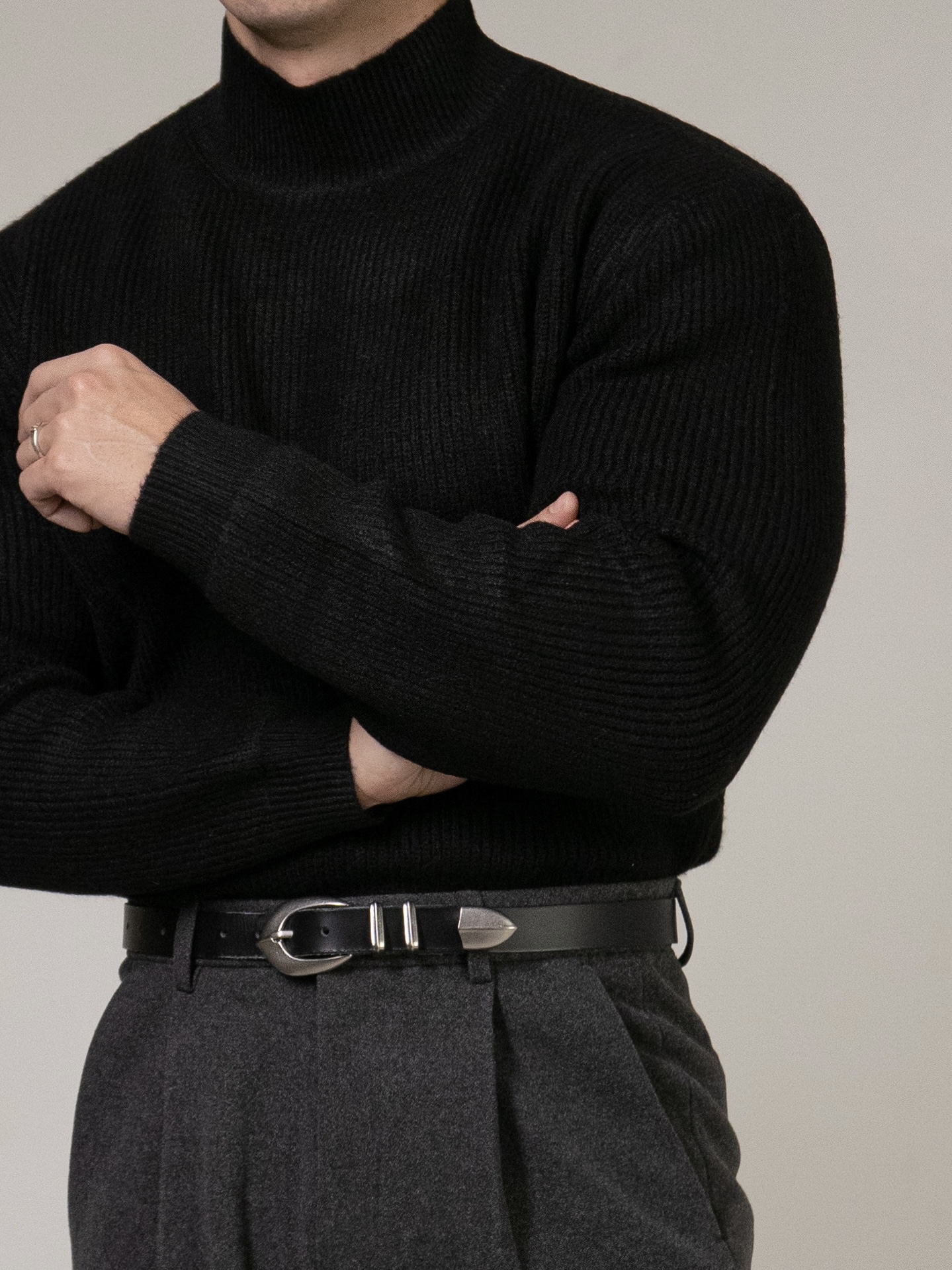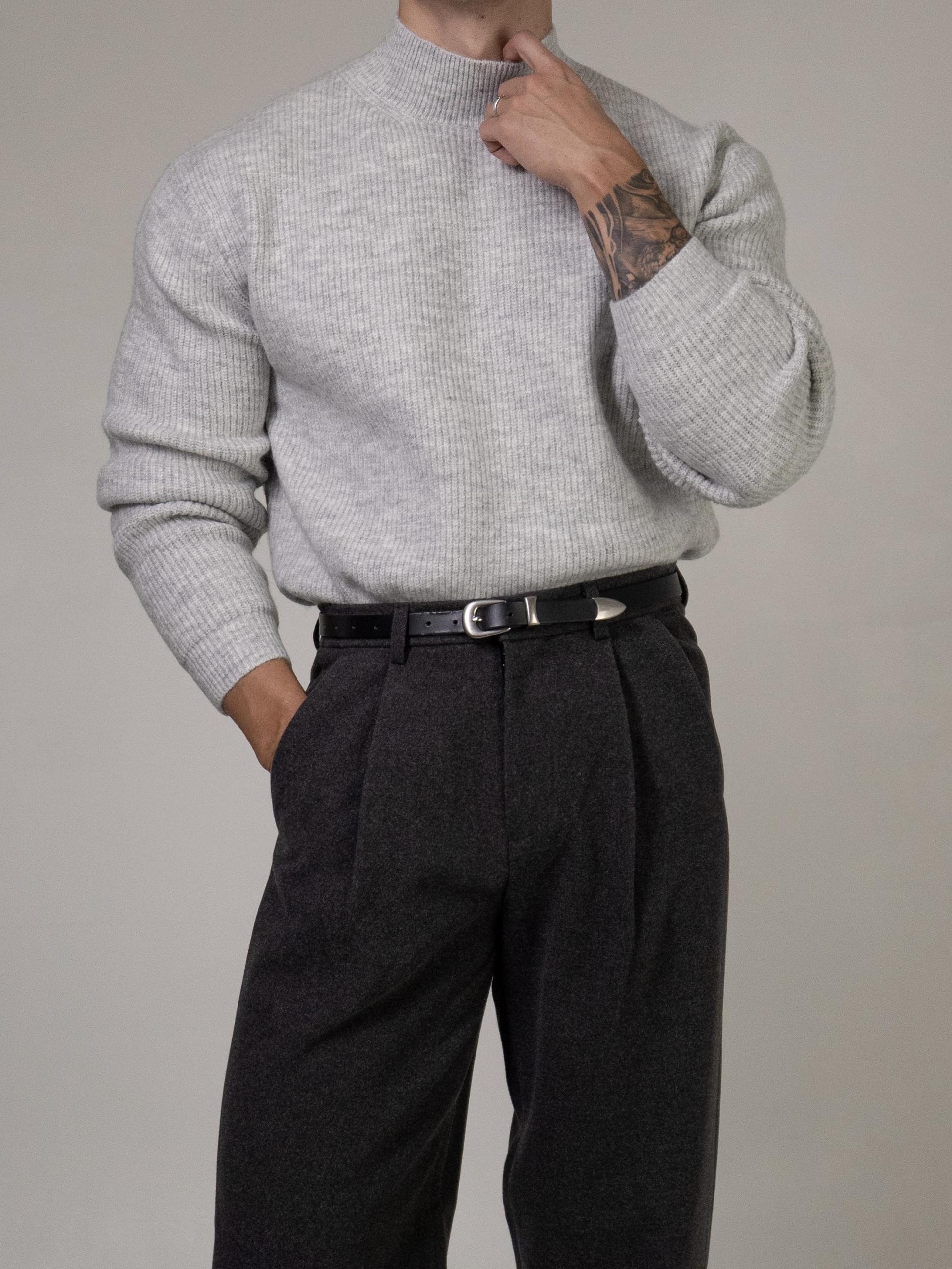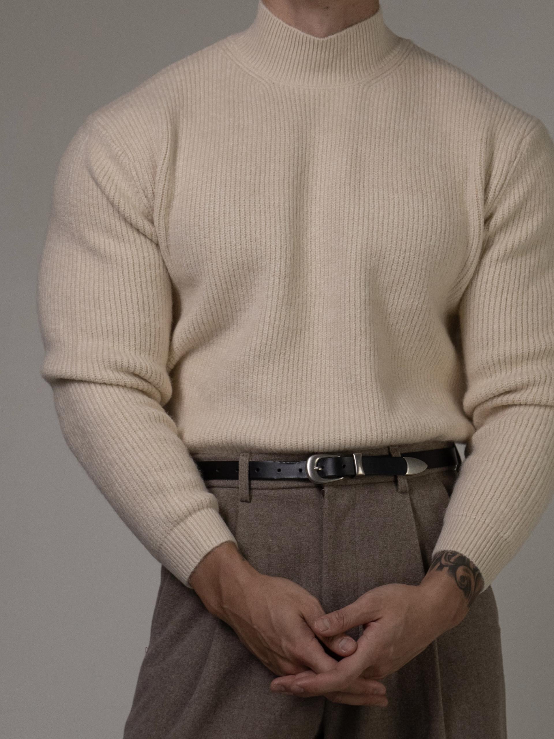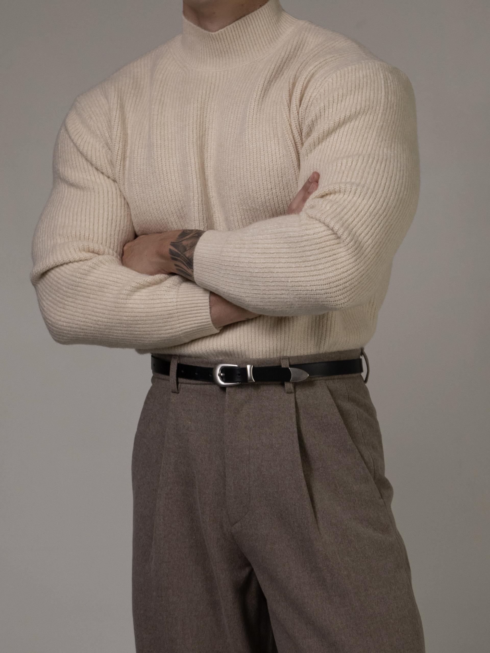 - 골지패턴의 니트로 상체의 입체감을 주기에 용이