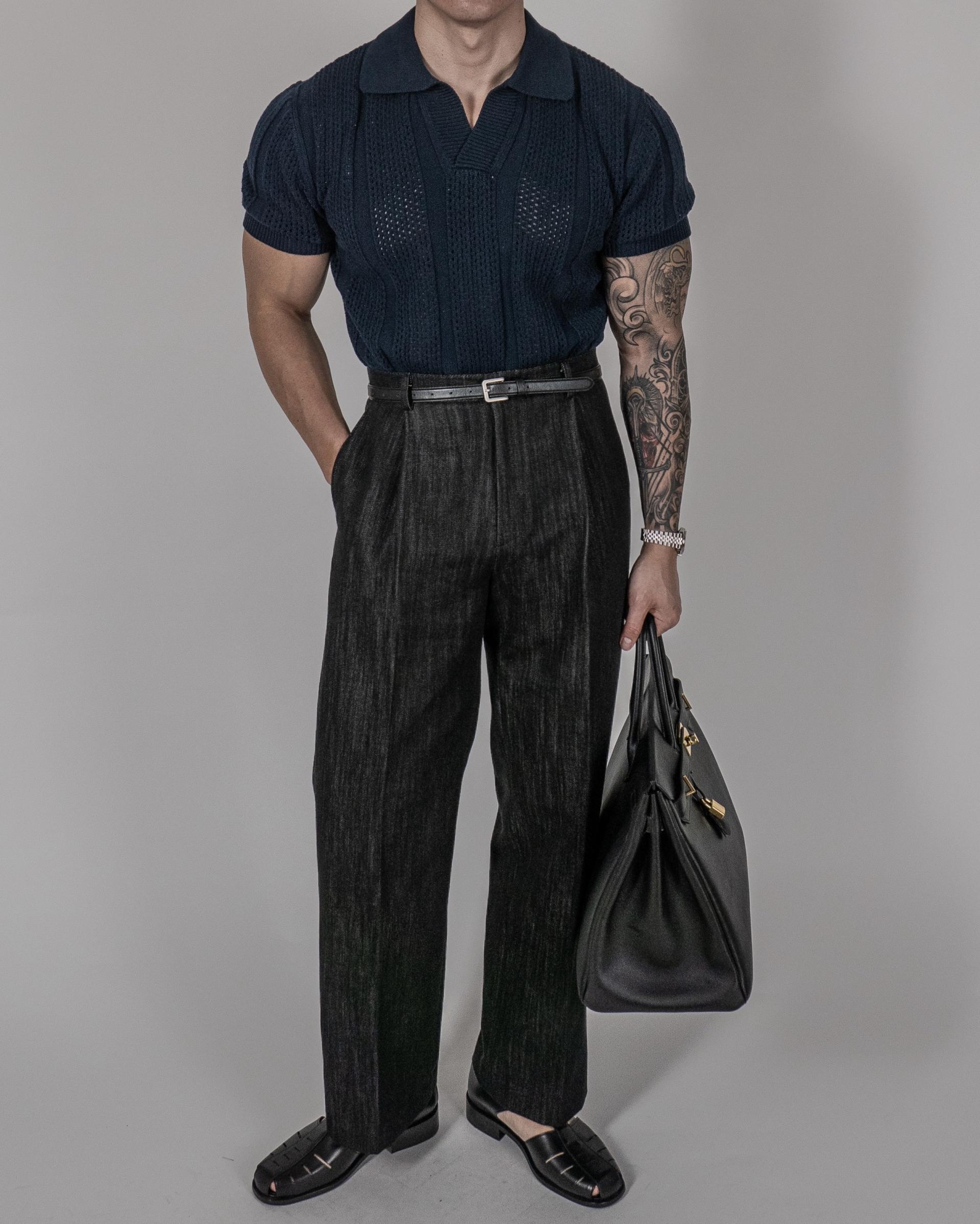 하의 - 시스 쿨 데님 원턱 밴딩 팬츠