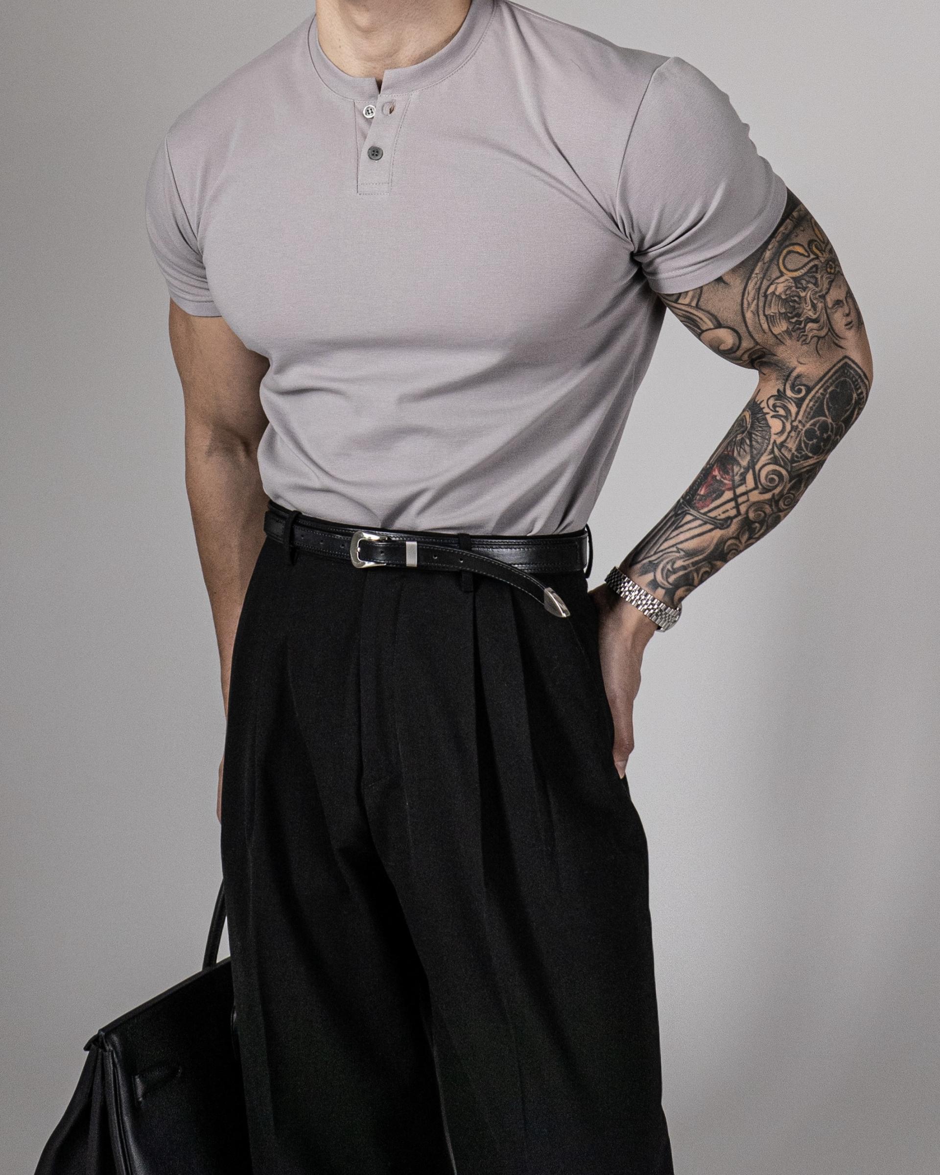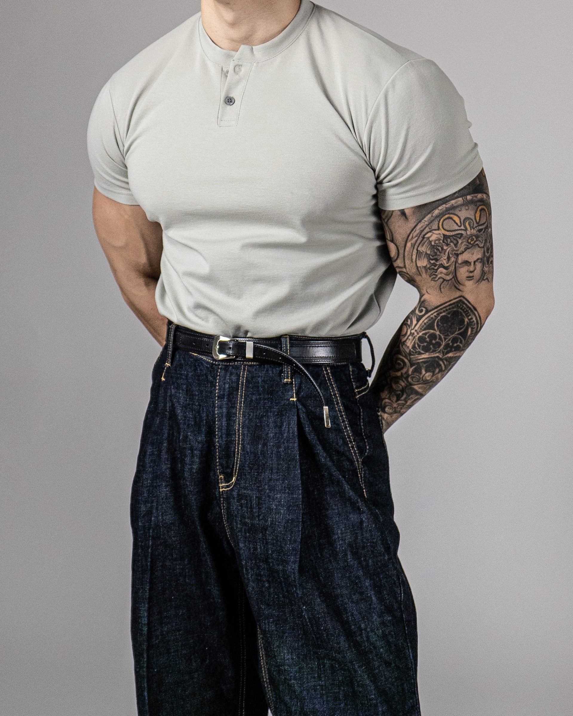 - 전체적으로 탄탄하고, 높은 텐션감의 머슬핏 티셔츠