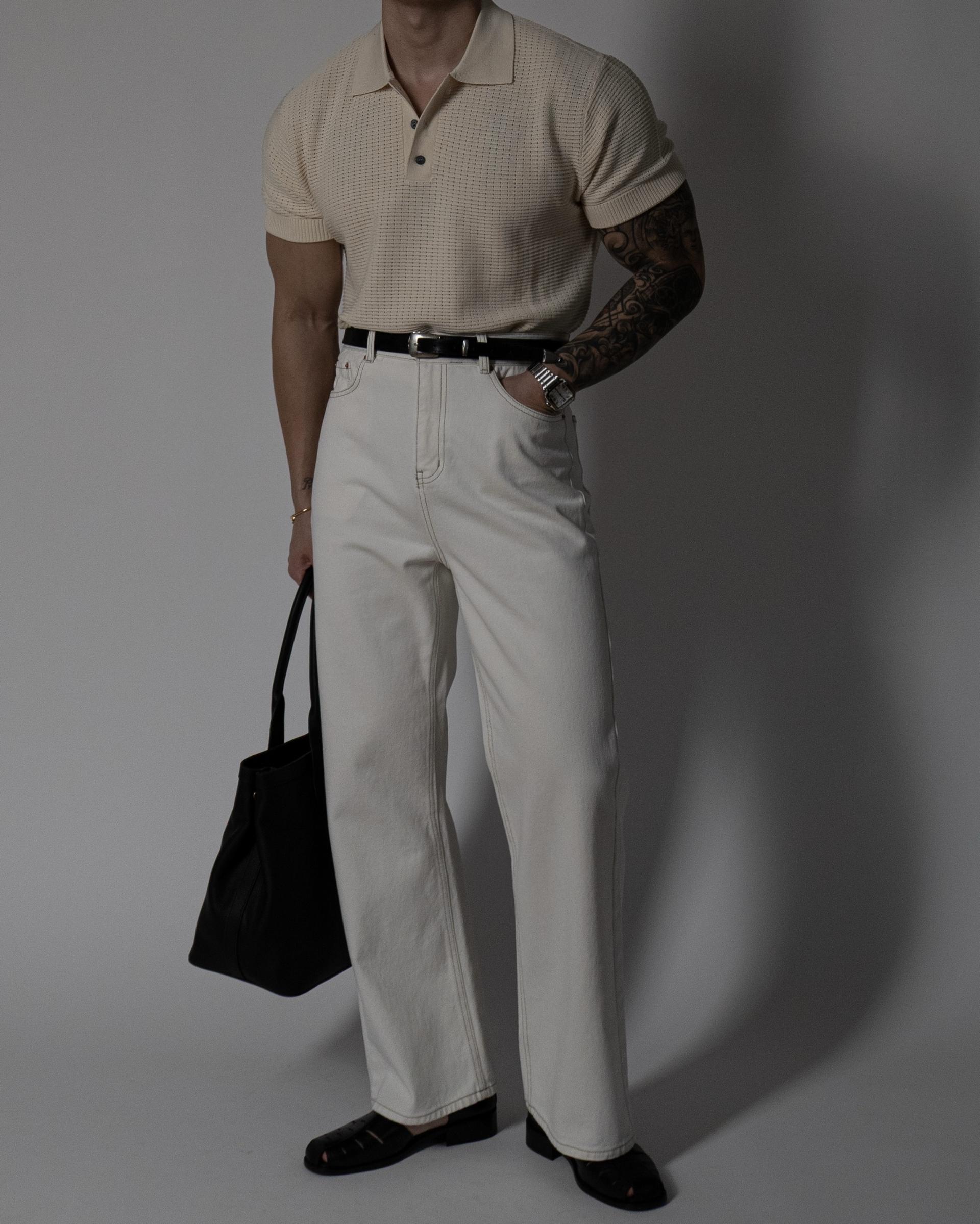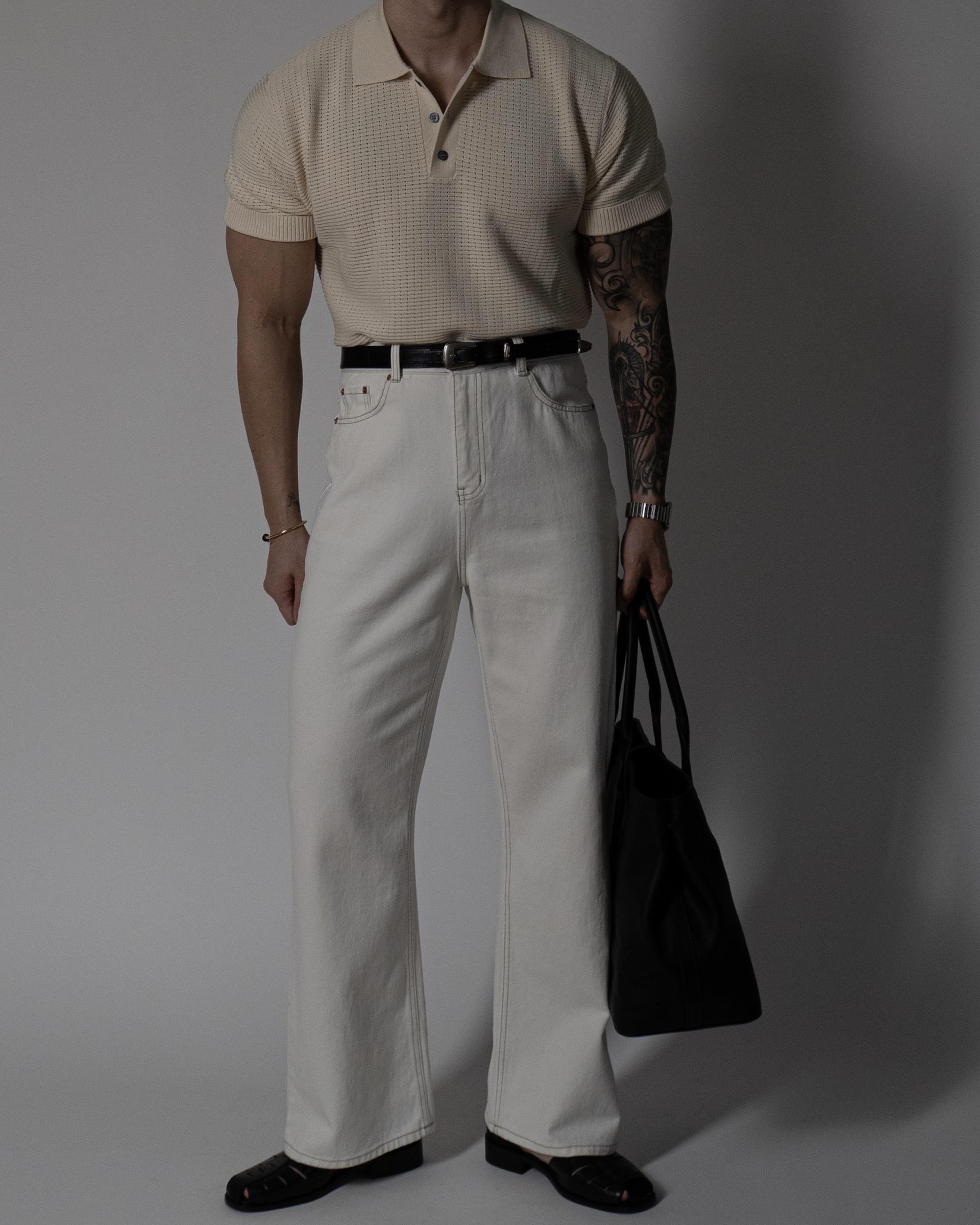 하의 - 화이트 오가닉 코튼 플레어 팬츠