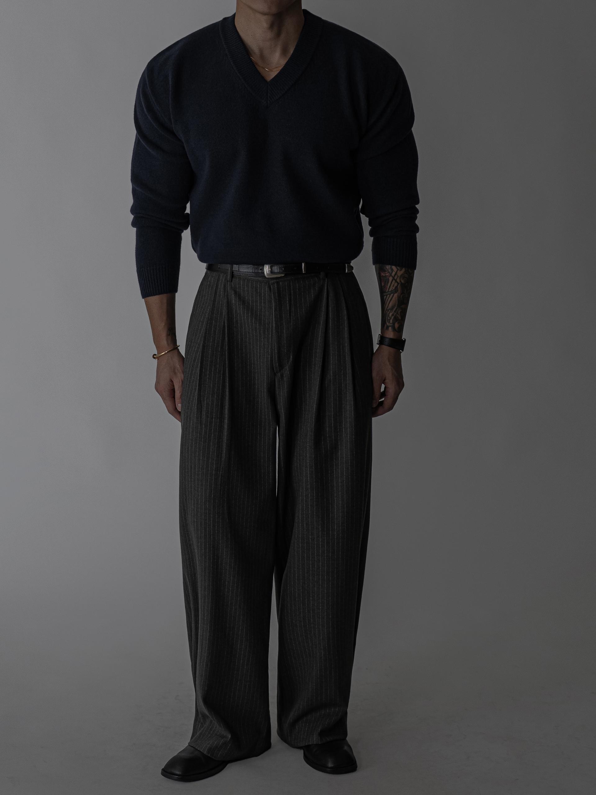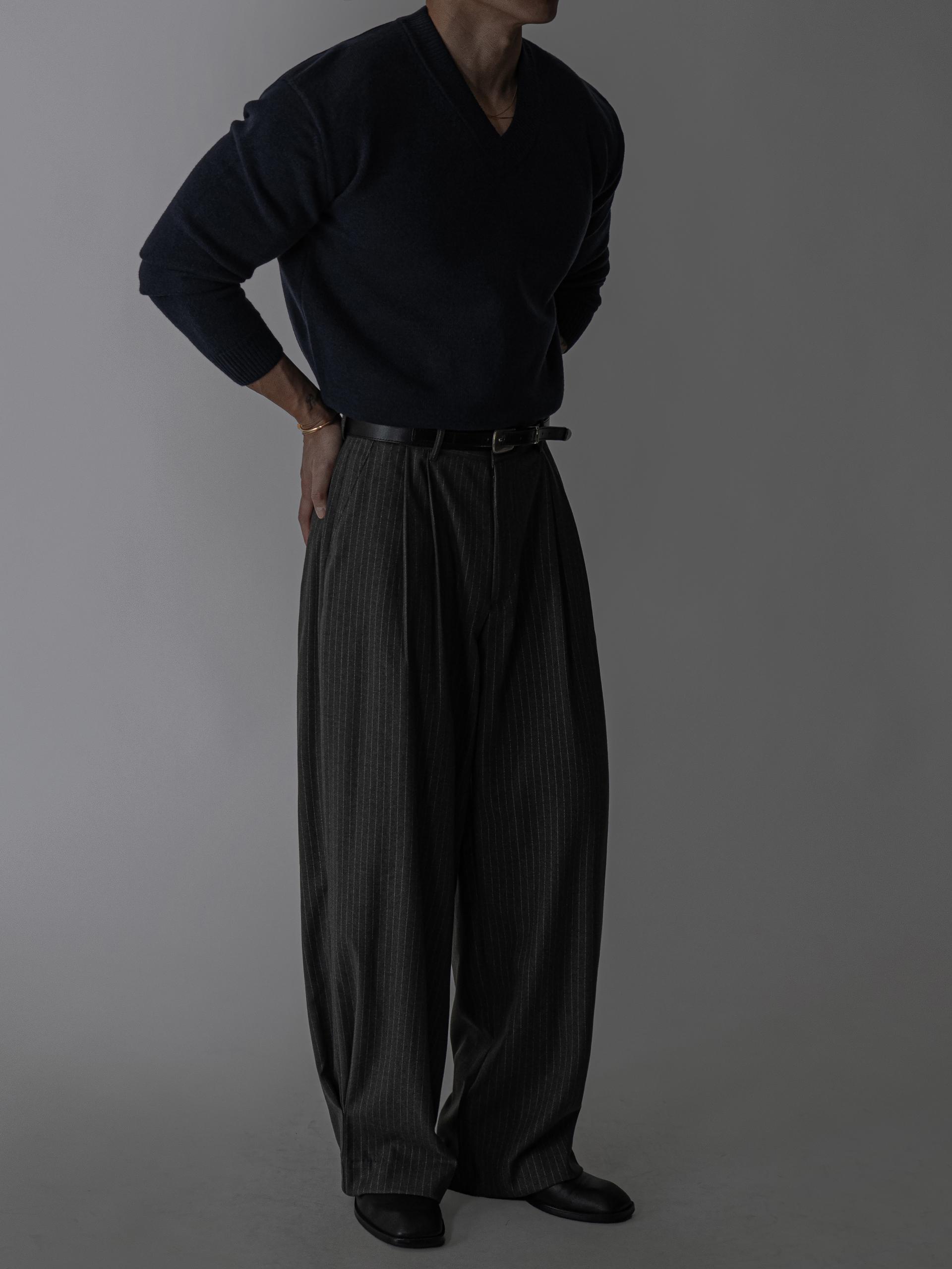 하의 - 로우 턱 울 스트라이프 팬츠