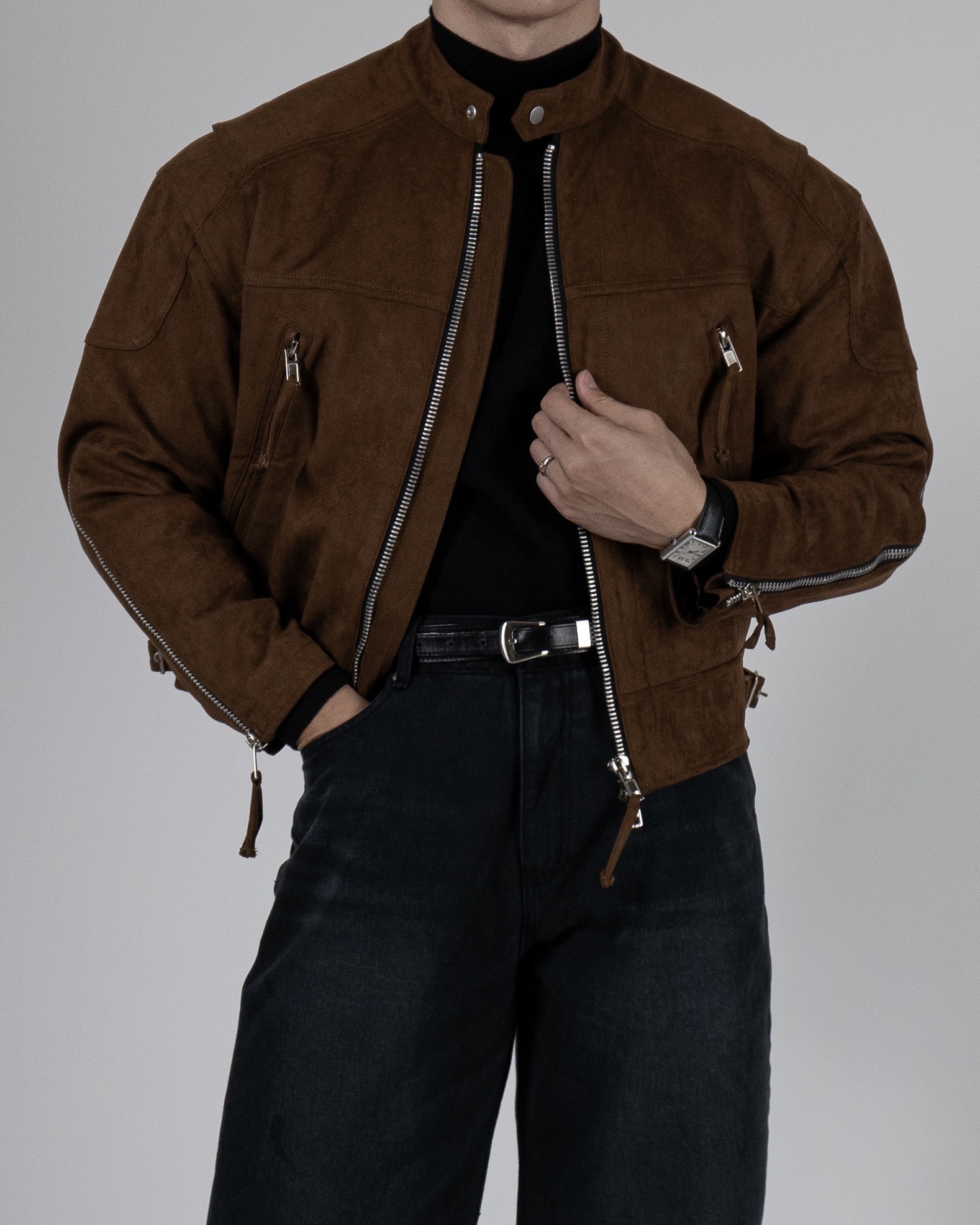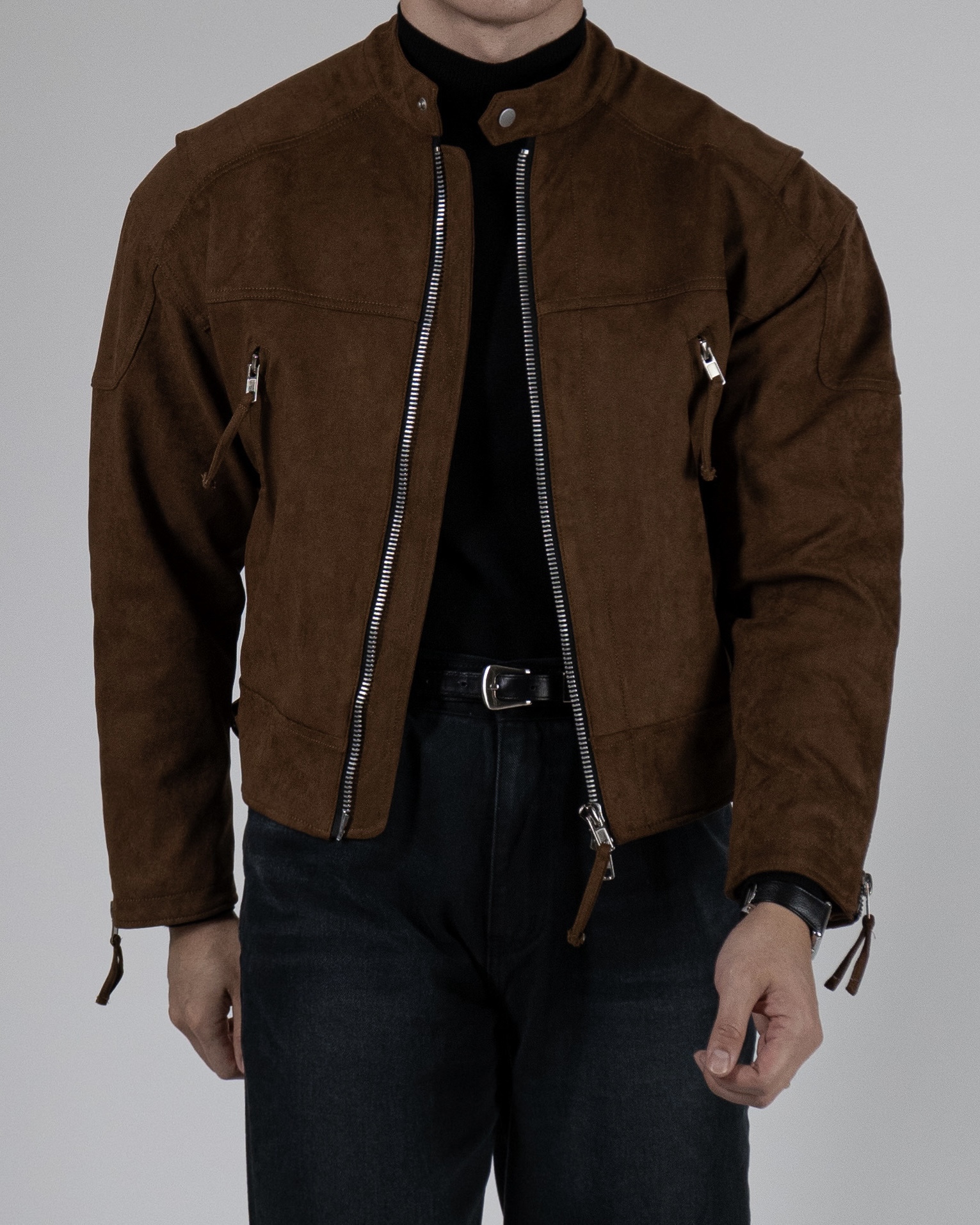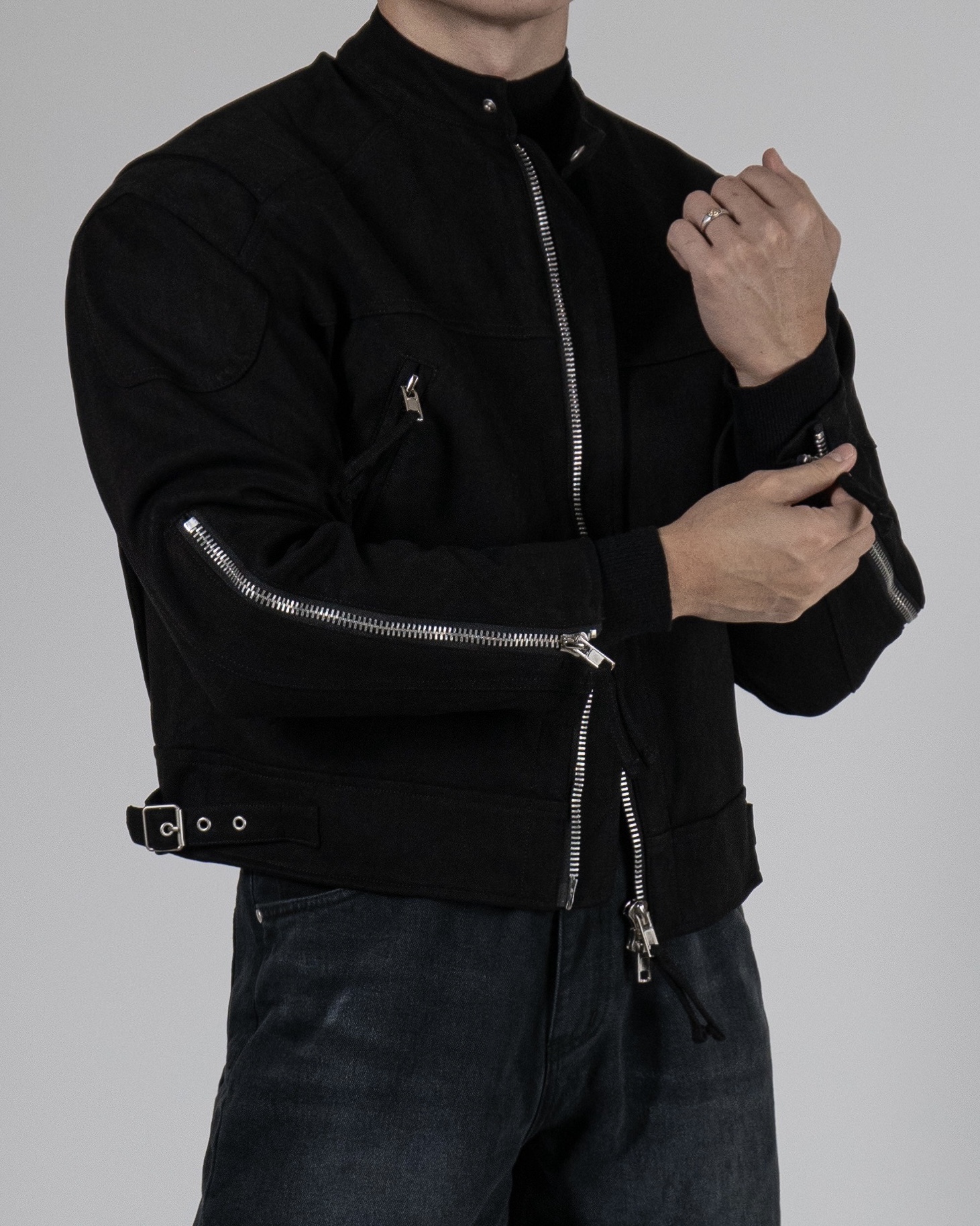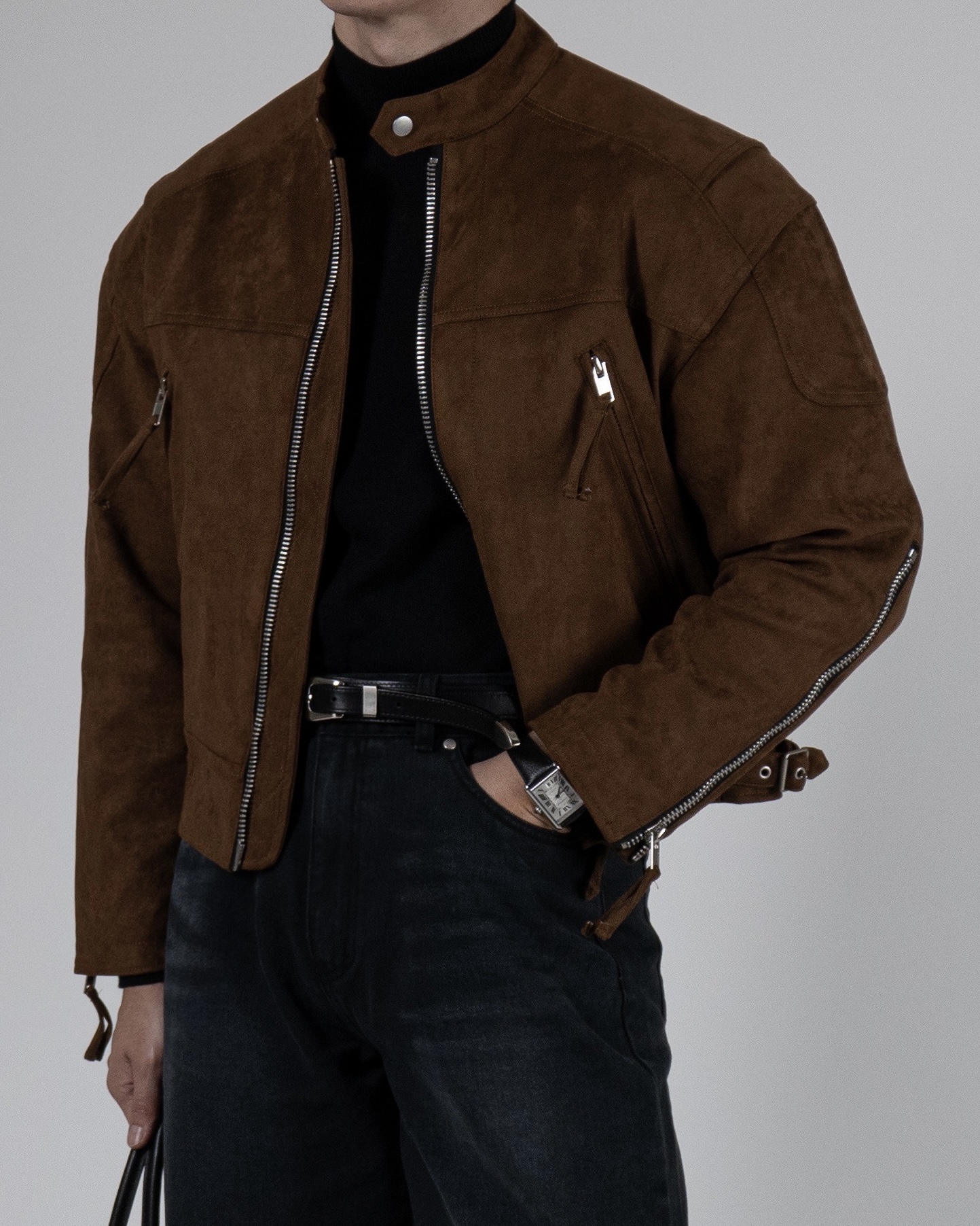 - 익케이 특유의 남성적인 핏의 스웨이드 바이커 자켓