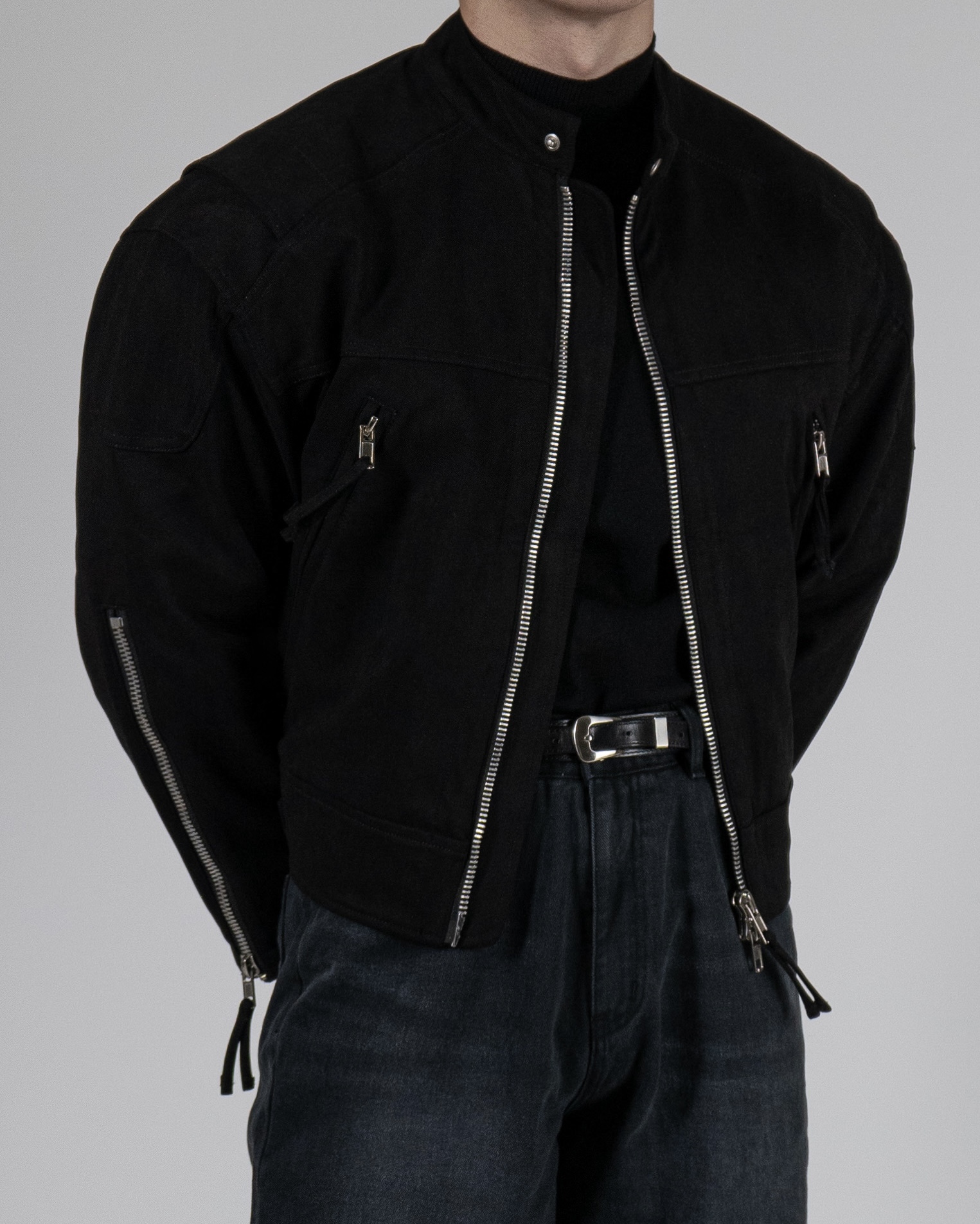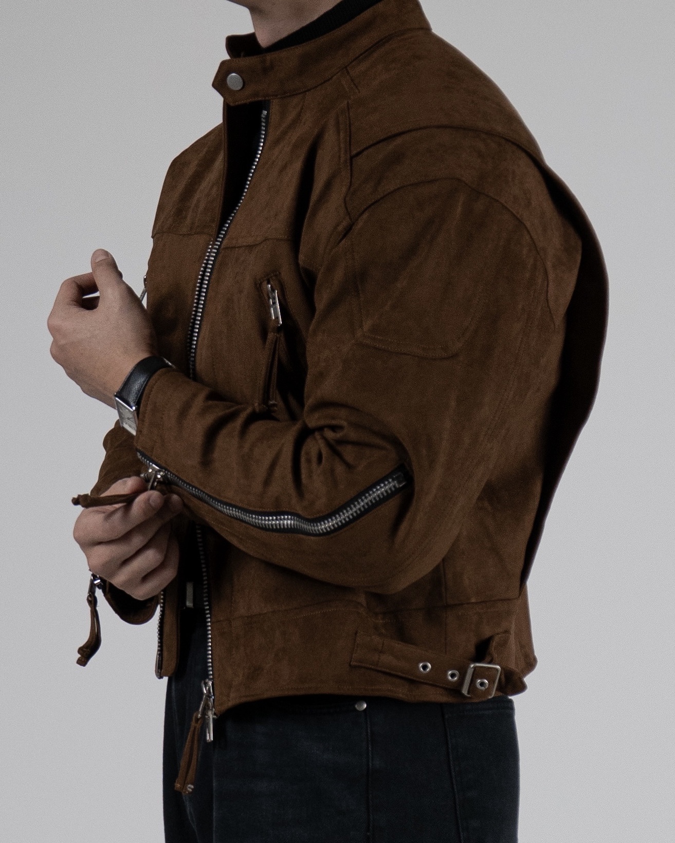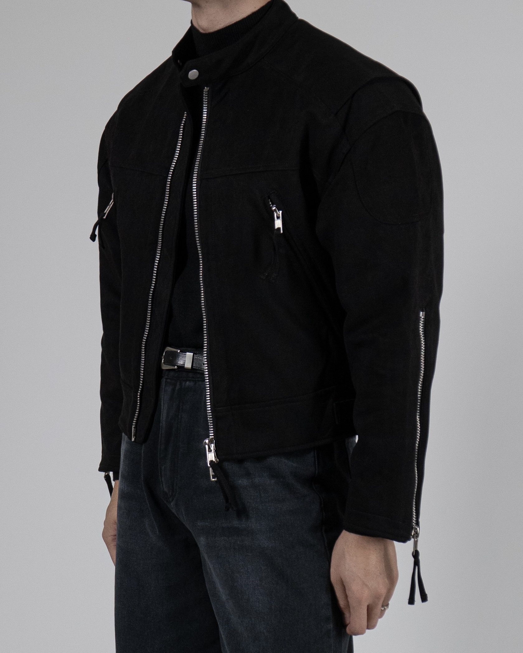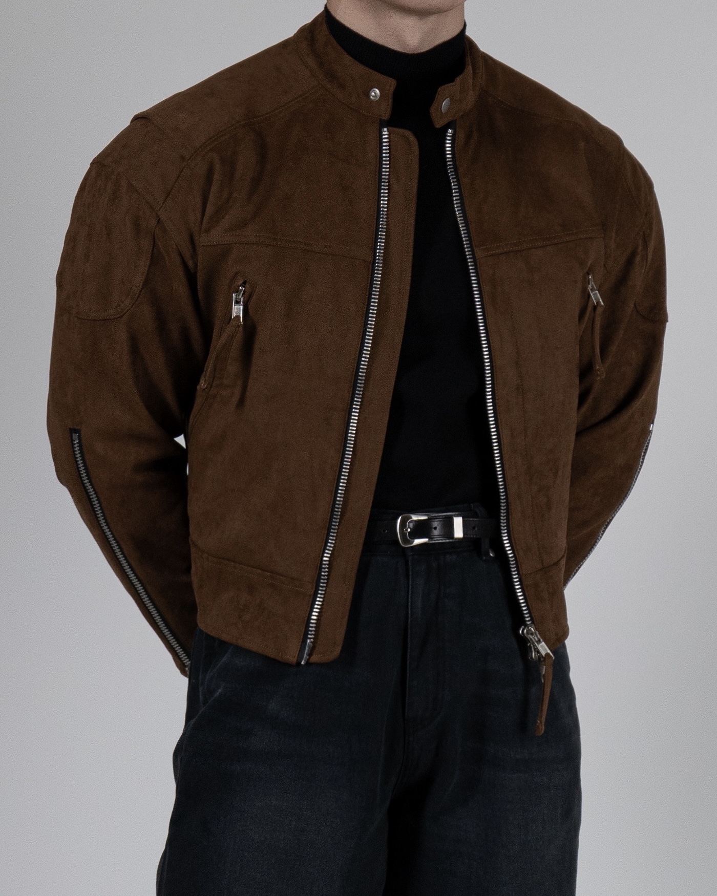 - 익케이 특유의 남성적인 핏의 스웨이드 바이커 자켓