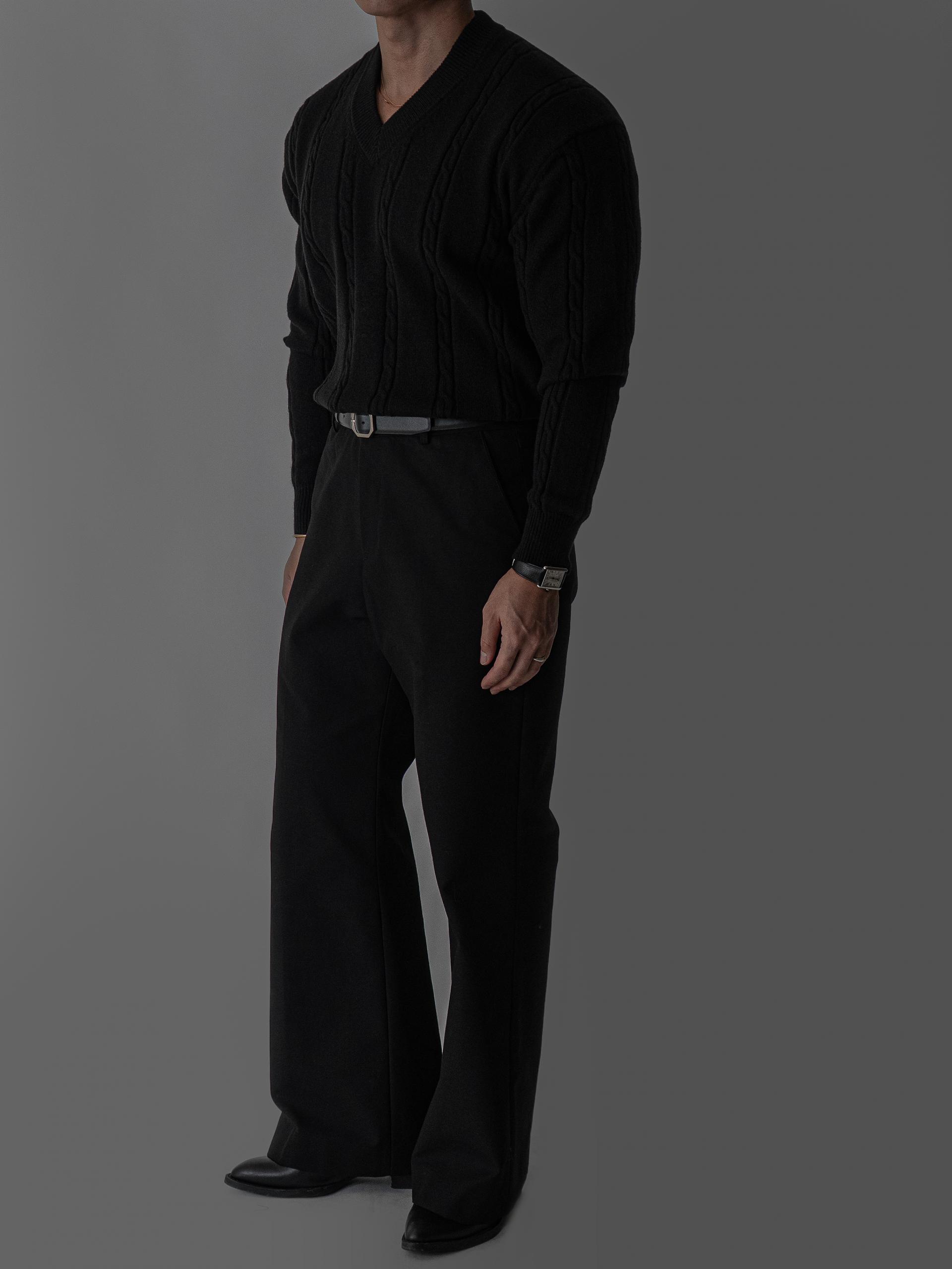 - 적당한 깊이감의 브이넥 디테일로 목선이 깔끔하게 정리되는 실루엣