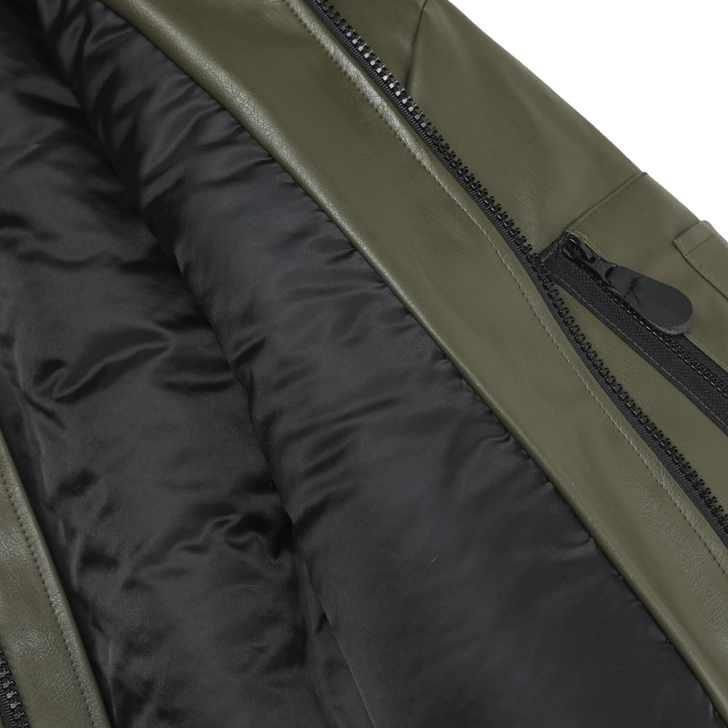 - 매트한 질감의 폴리우레탄 원단을 사용해 고급스러운 무드의 아우터