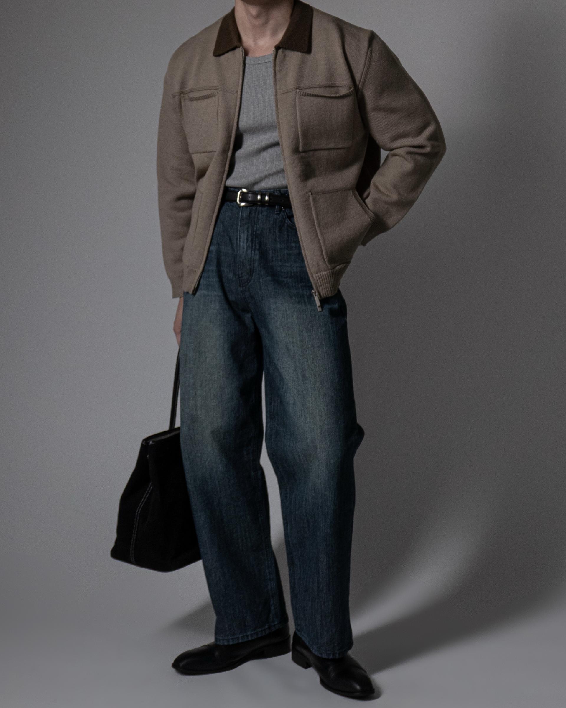 하의 - 프리미엄 솔리드 와이드 데님 팬츠
