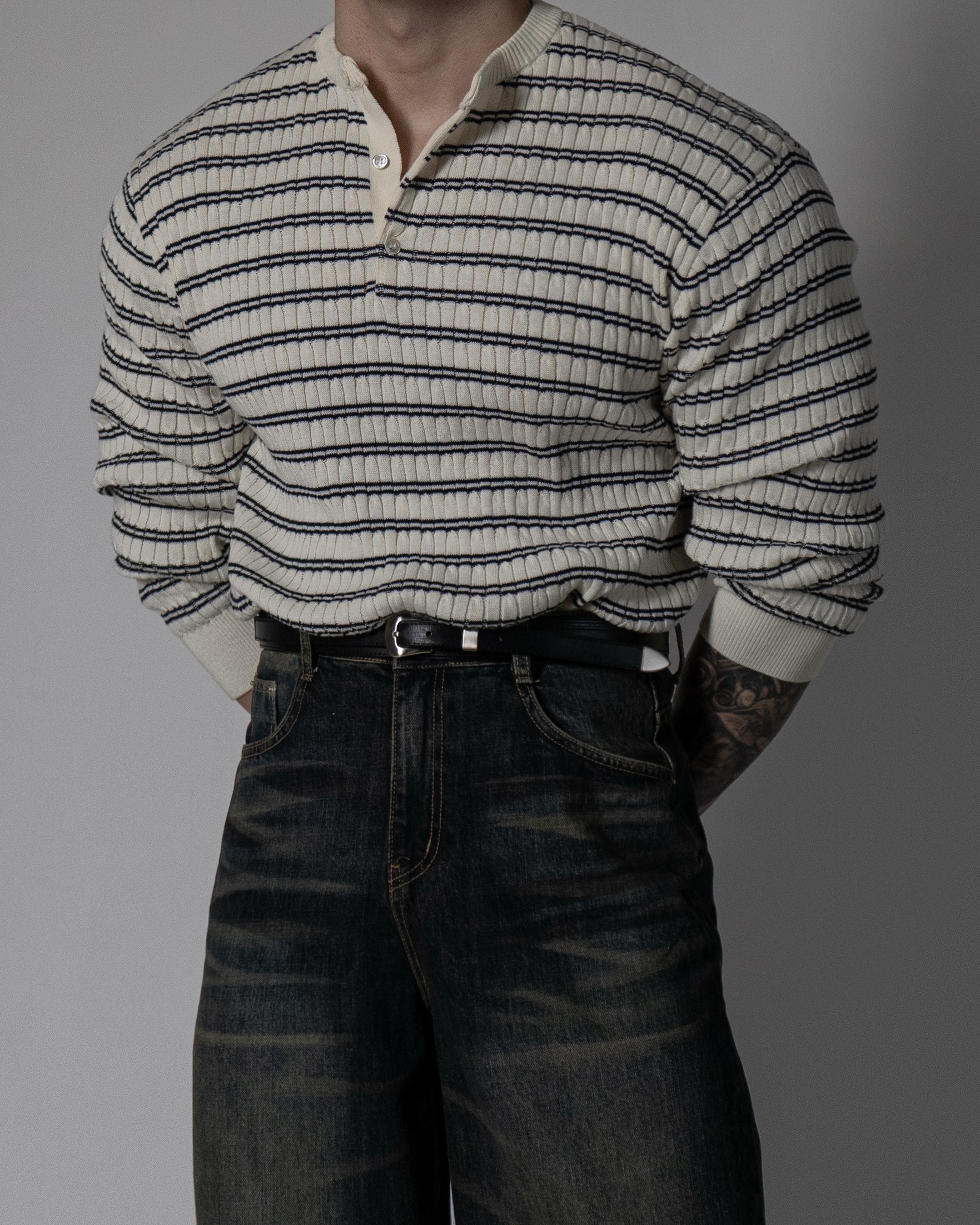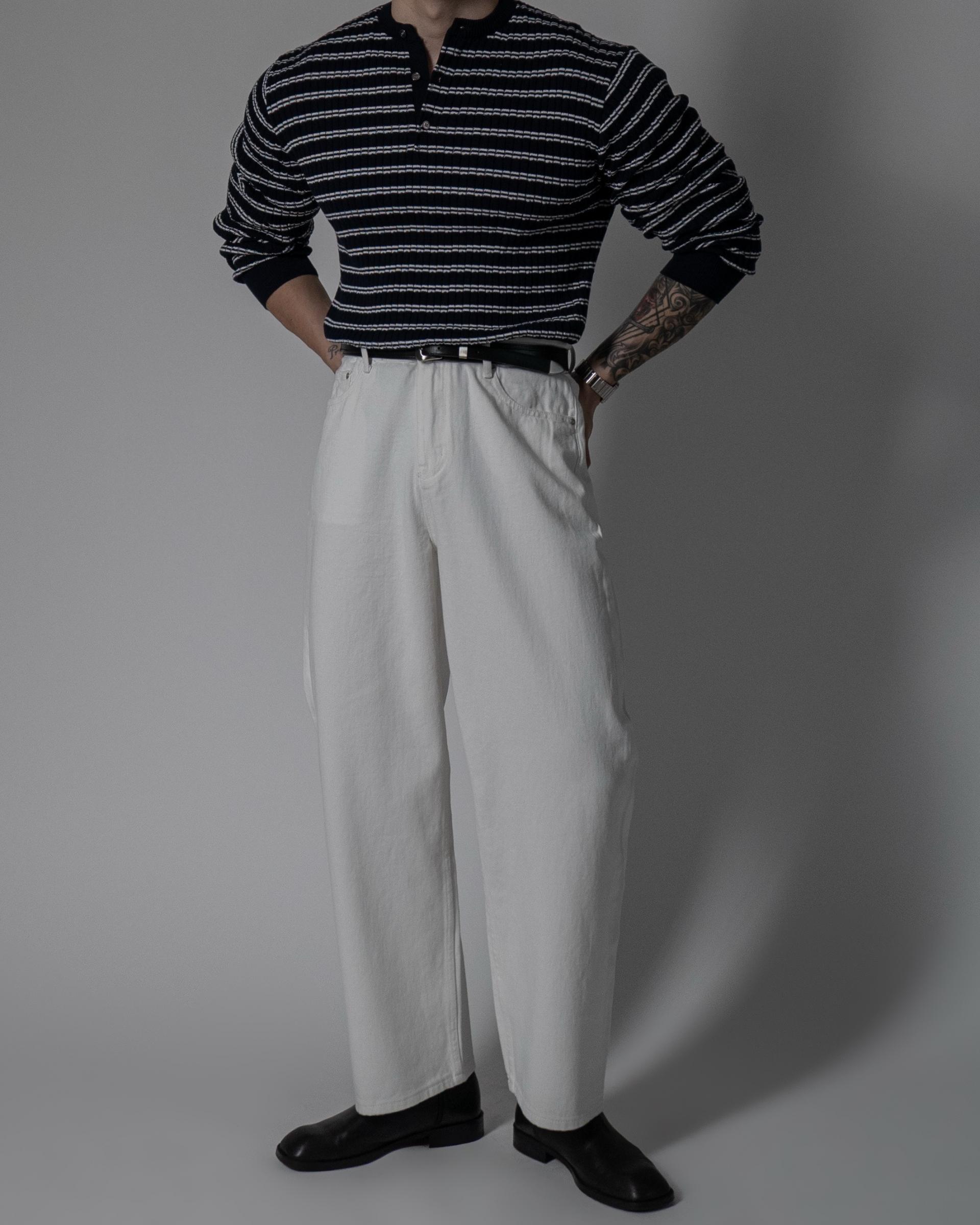 하의 - 타스 엠보 오일 와이드 데님 팬츠