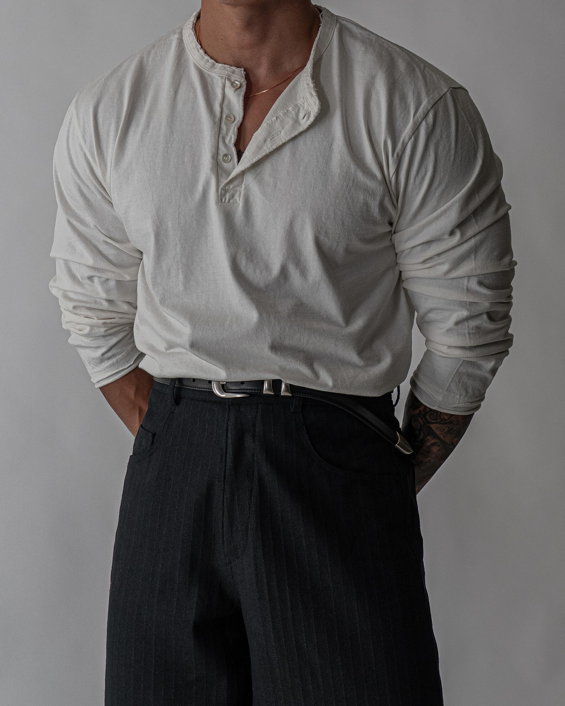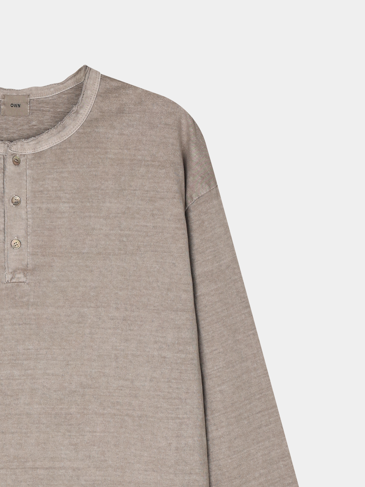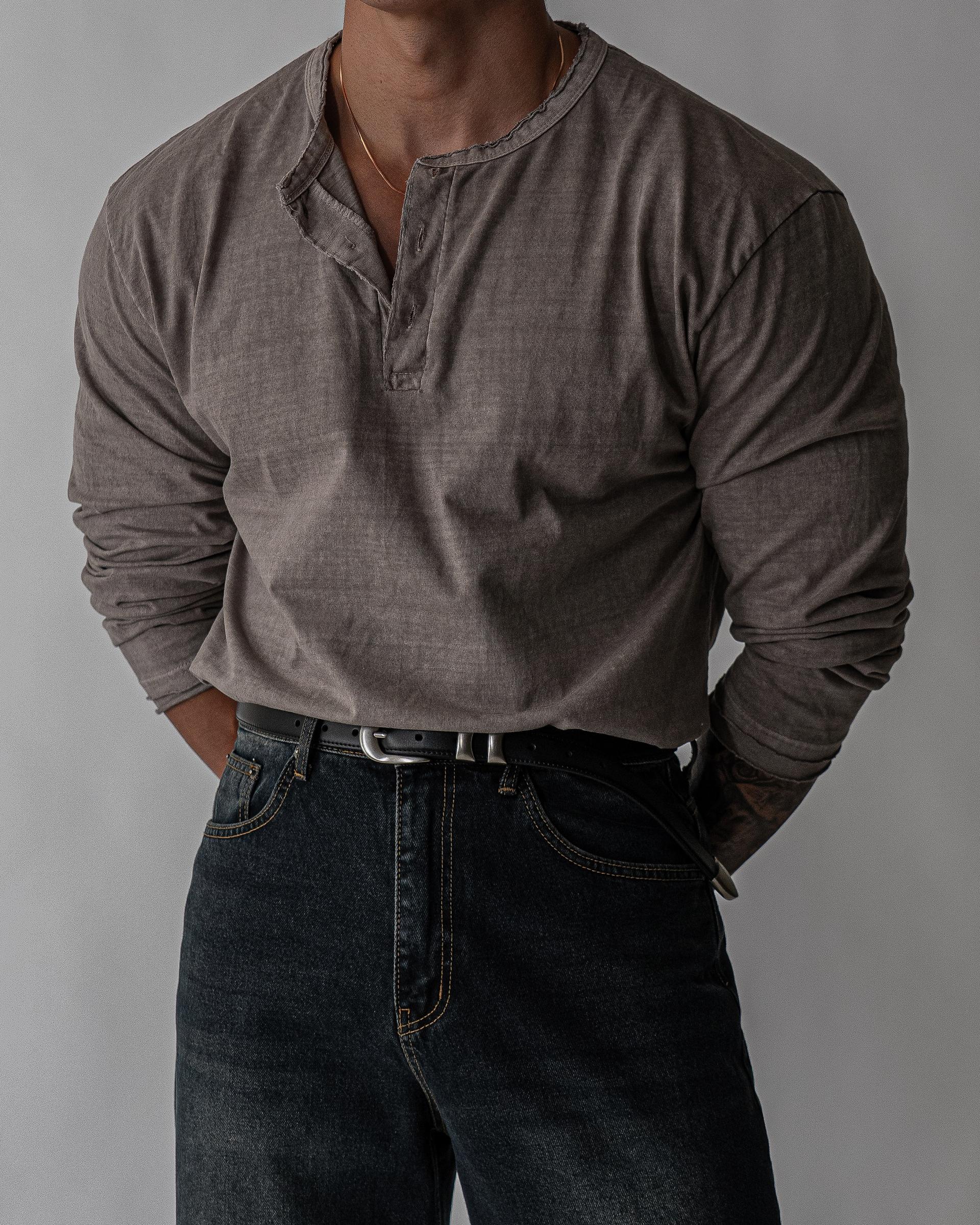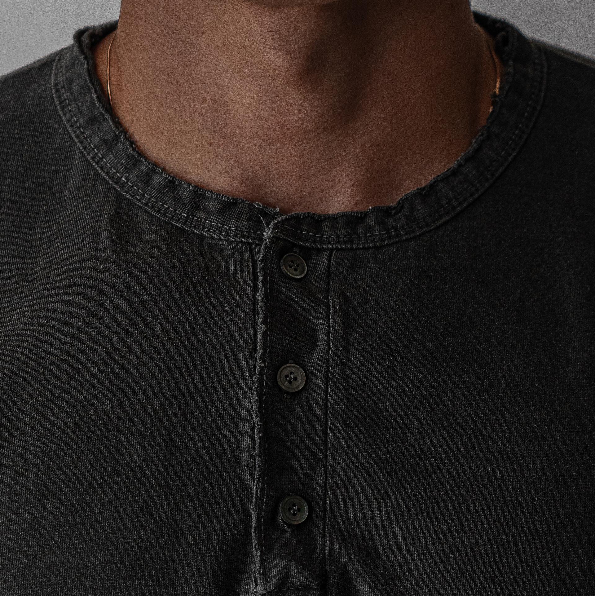 - 유니크한 컬러감과 데미지 디테일의 헨리넥 티셔츠