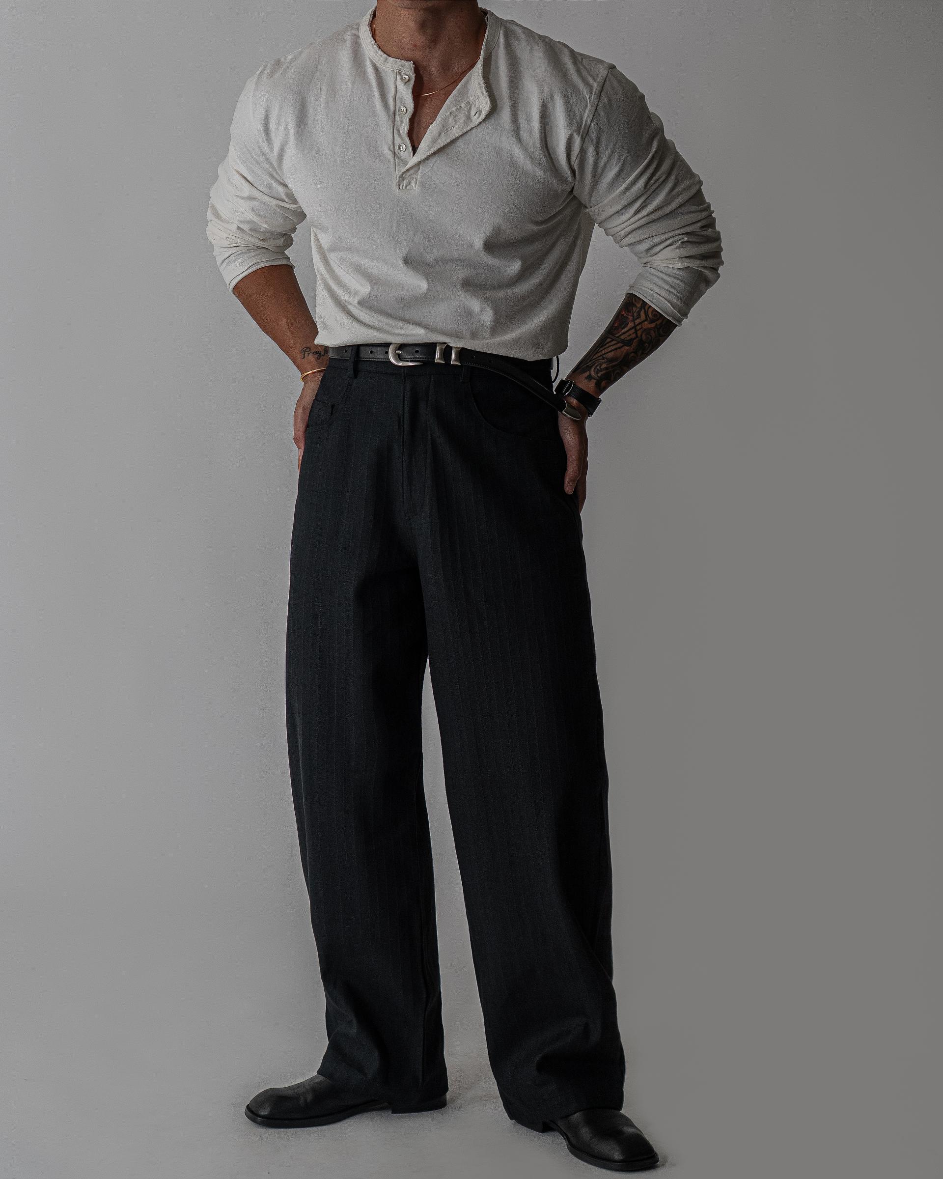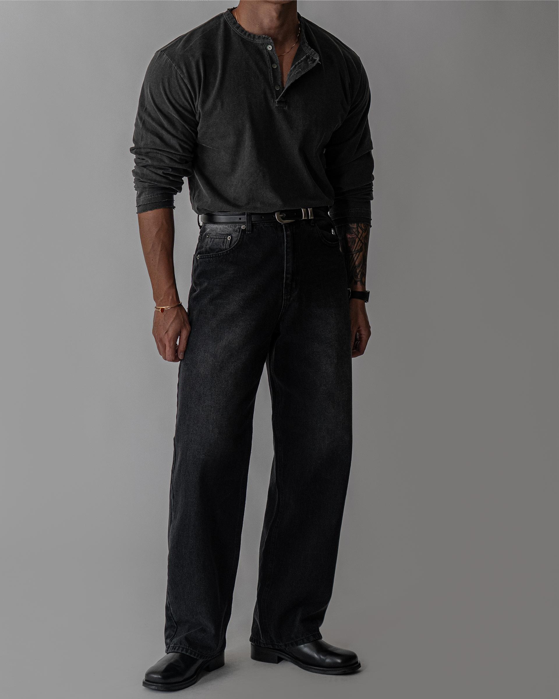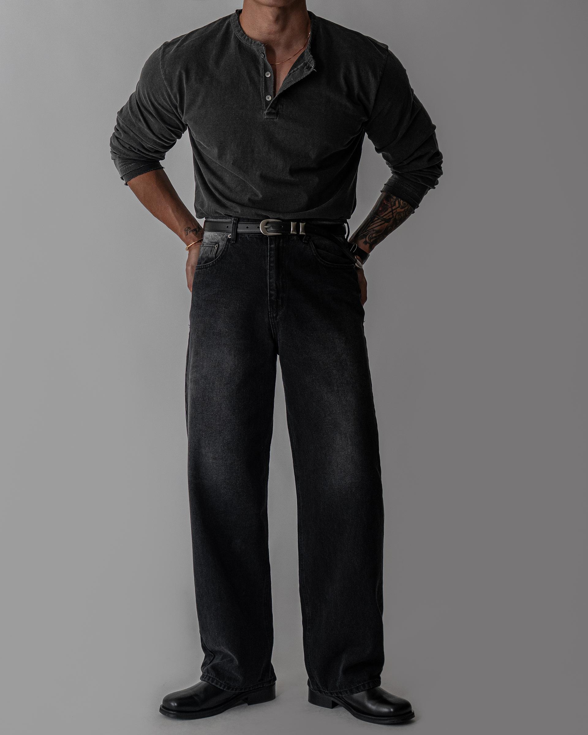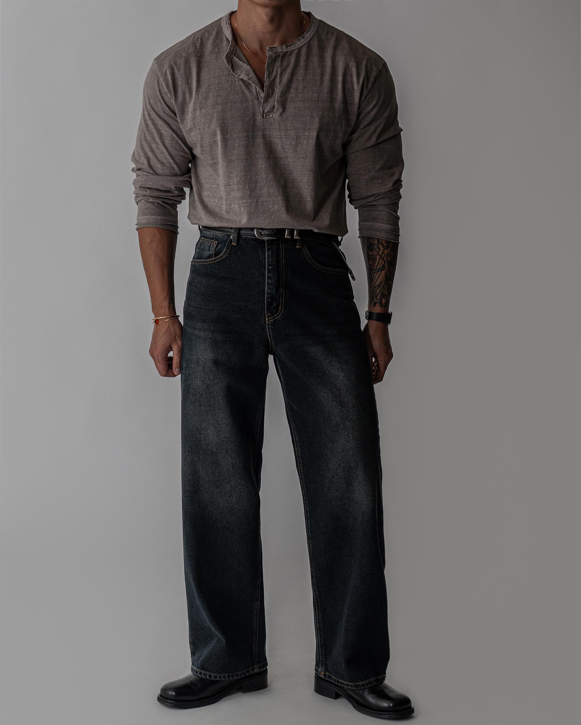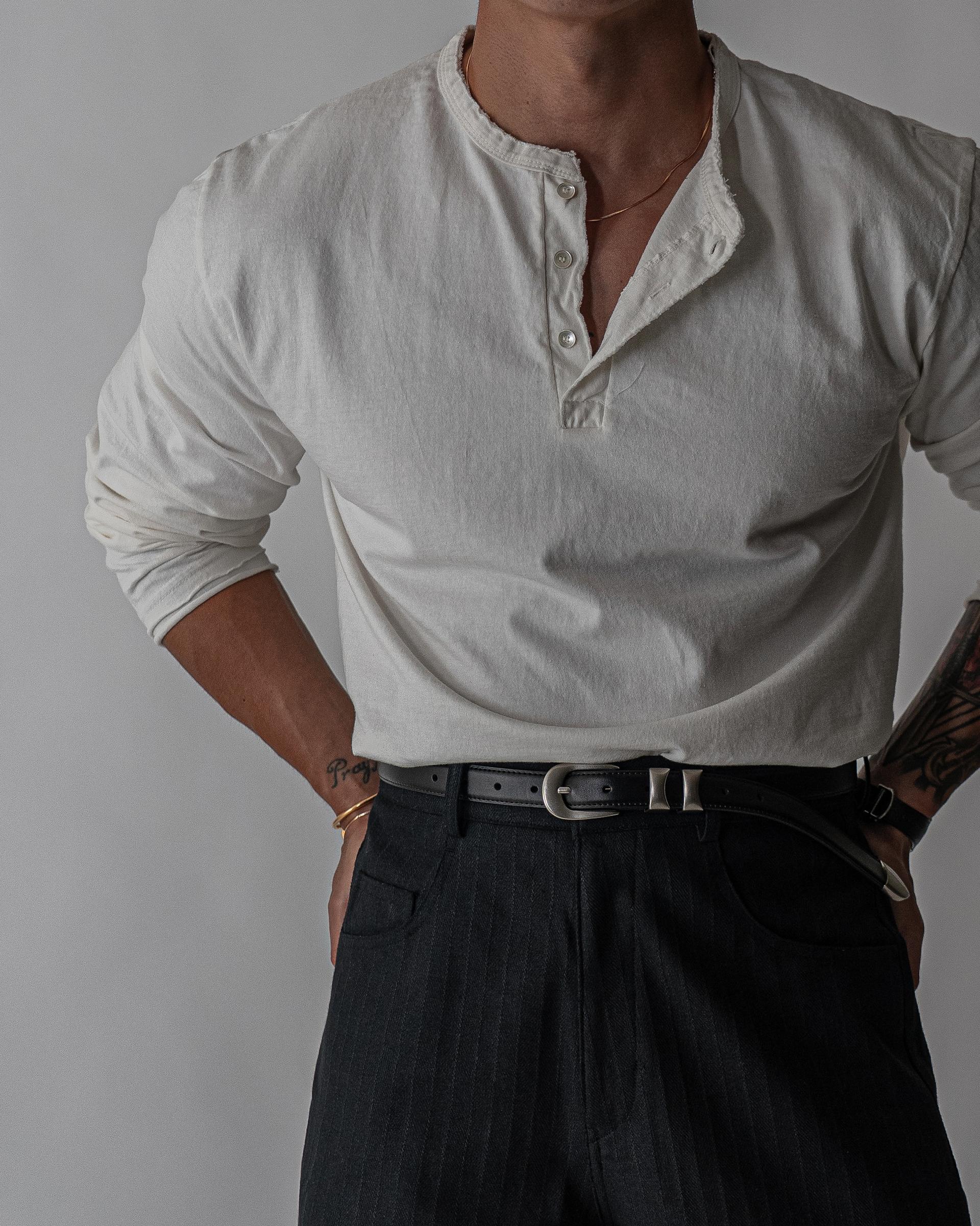 - 유니크한 컬러감과 데미지 디테일의 헨리넥 티셔츠