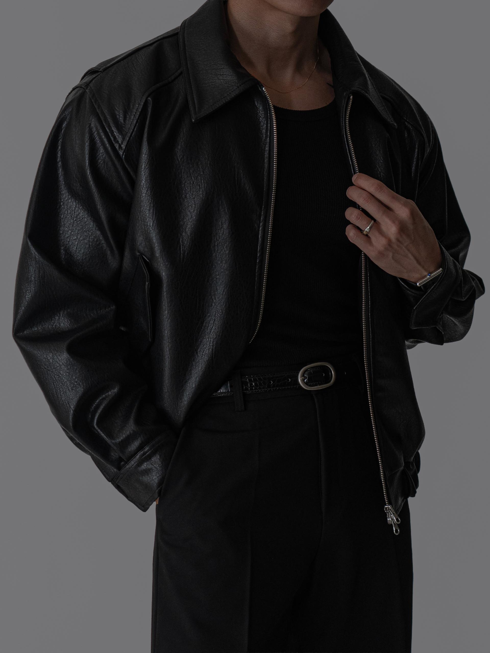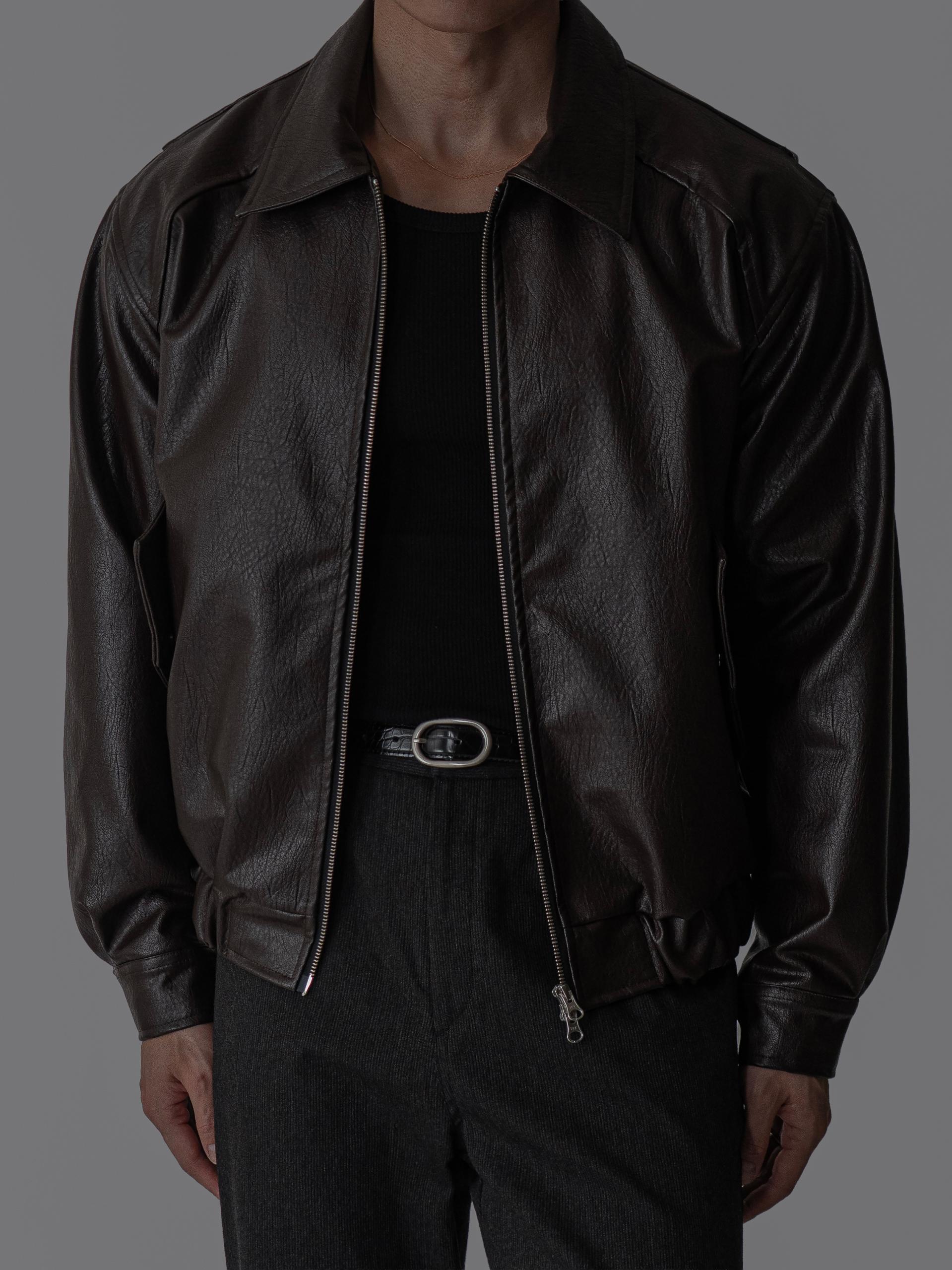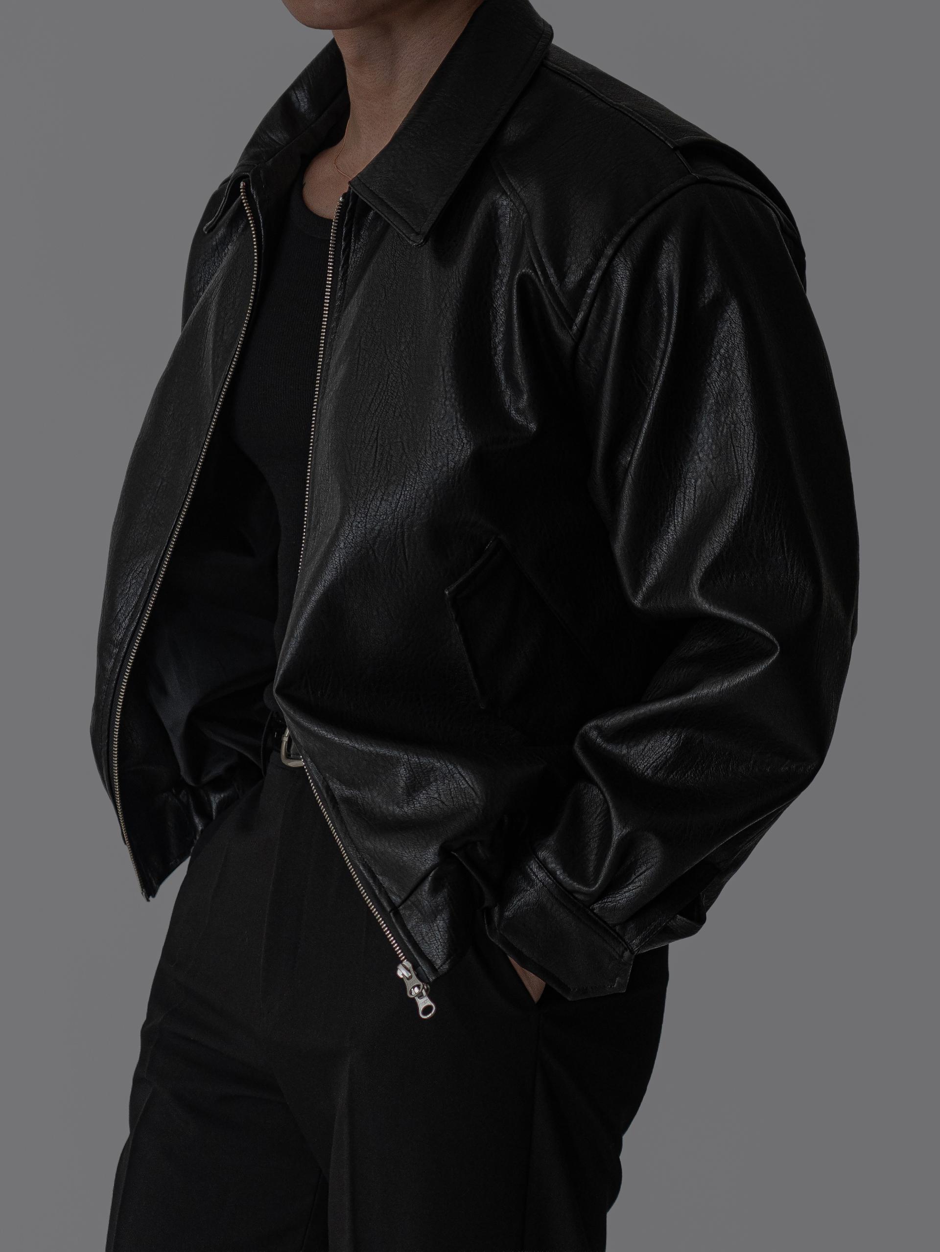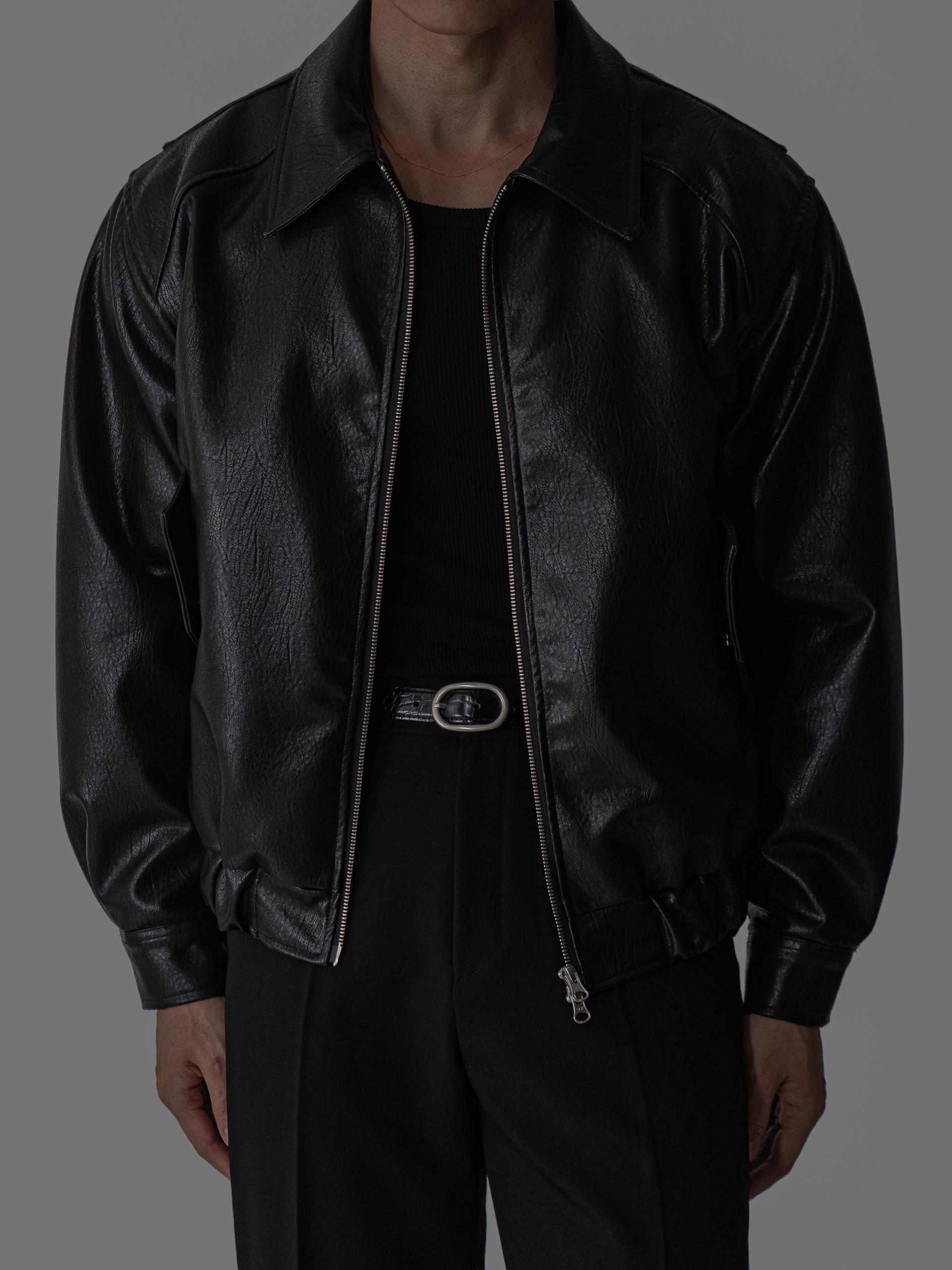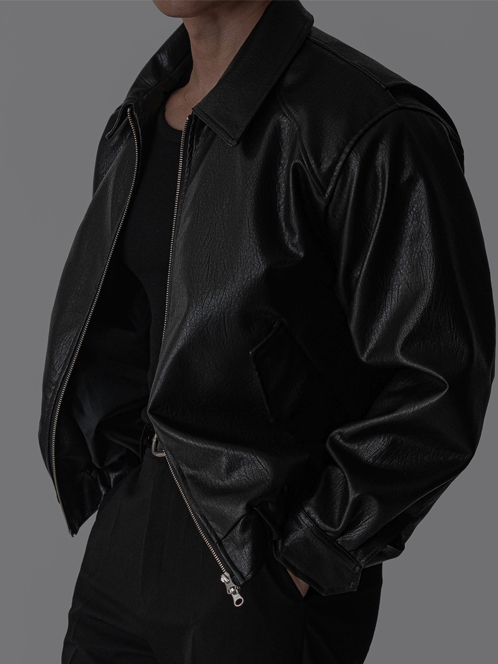 - 폴리우레탄 소재로 레더 특유의 고급스러운 질감과 묵직한 분위기의 자켓