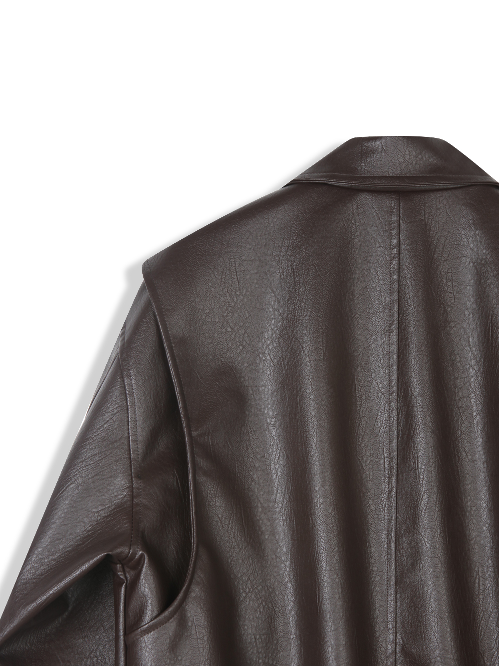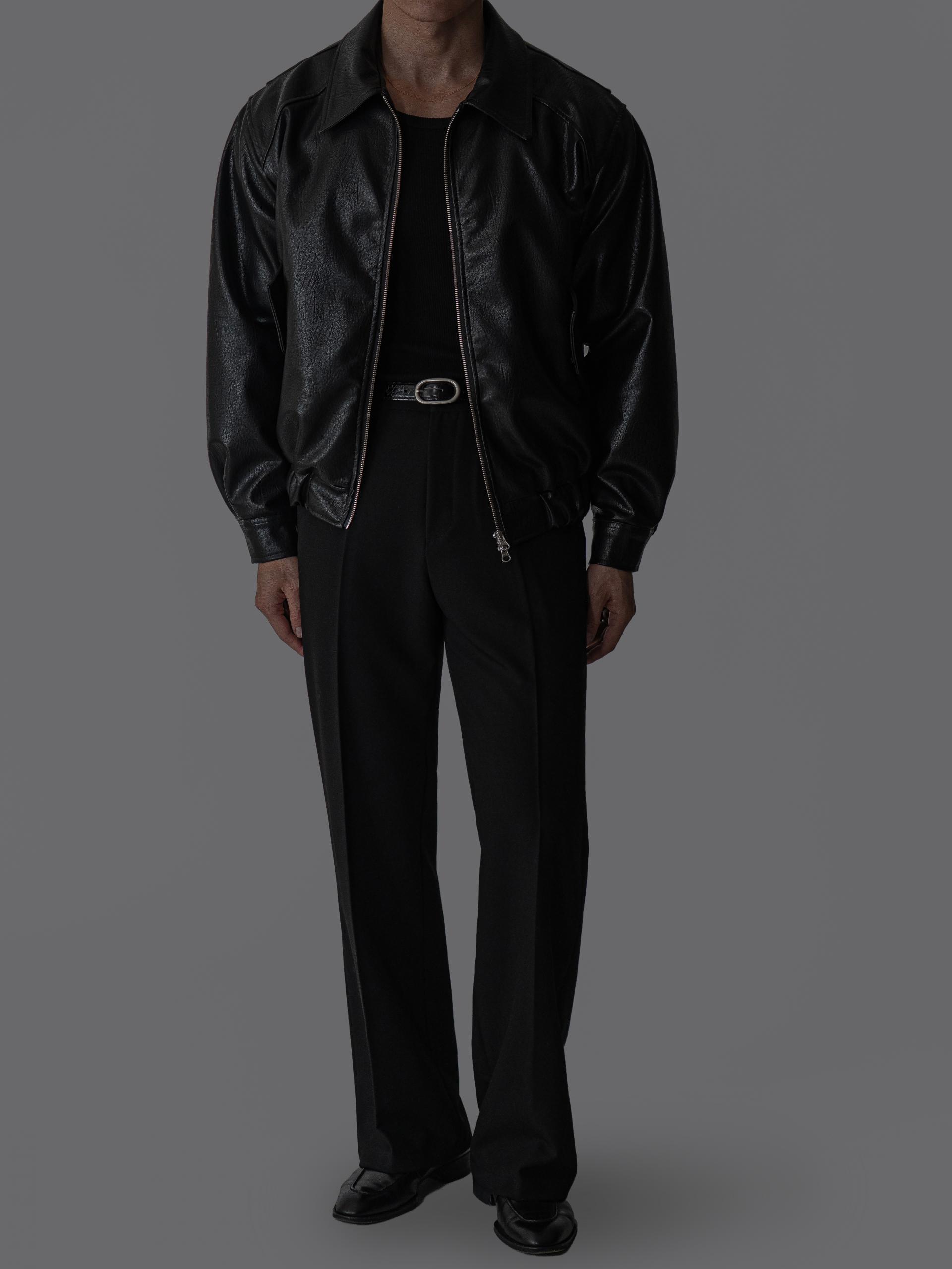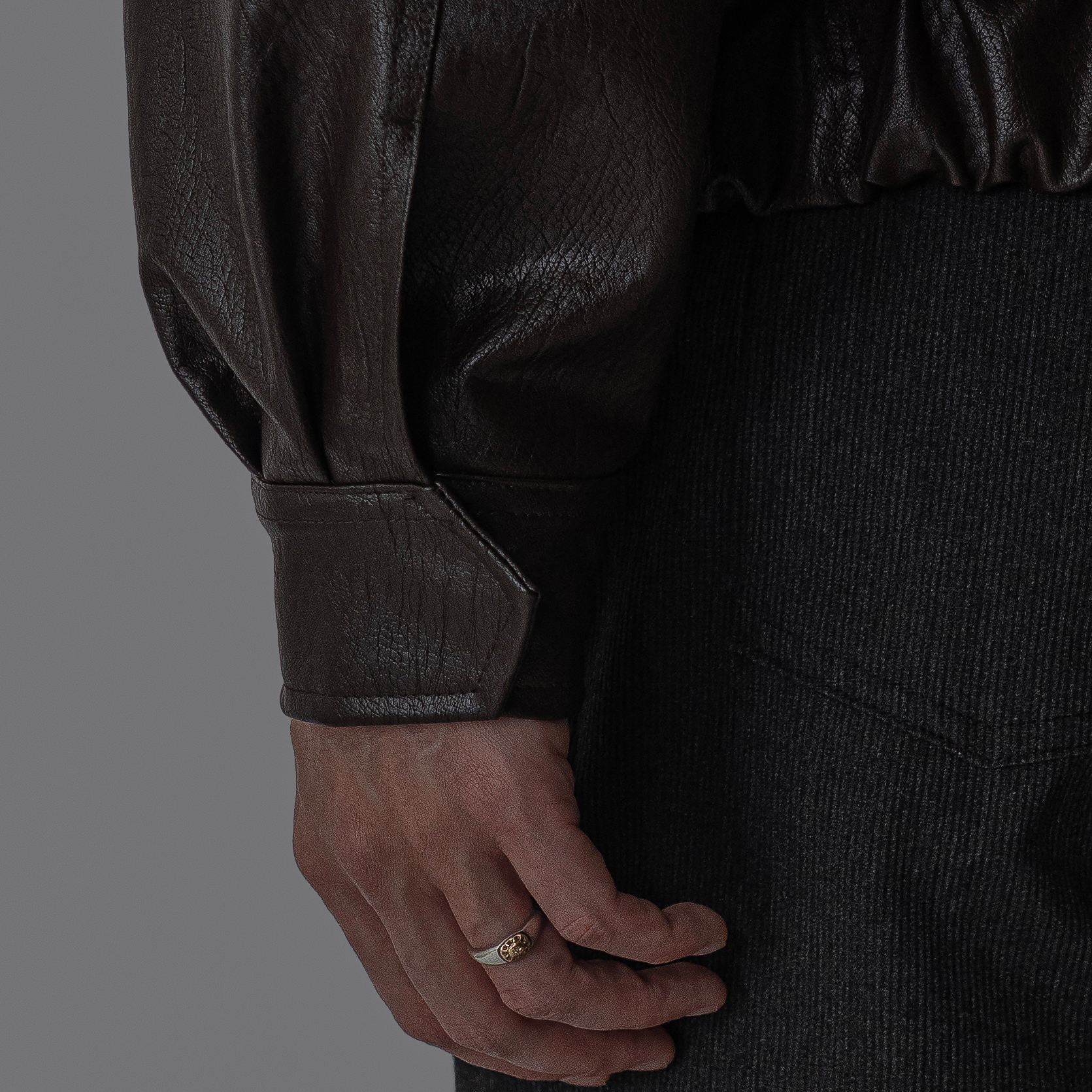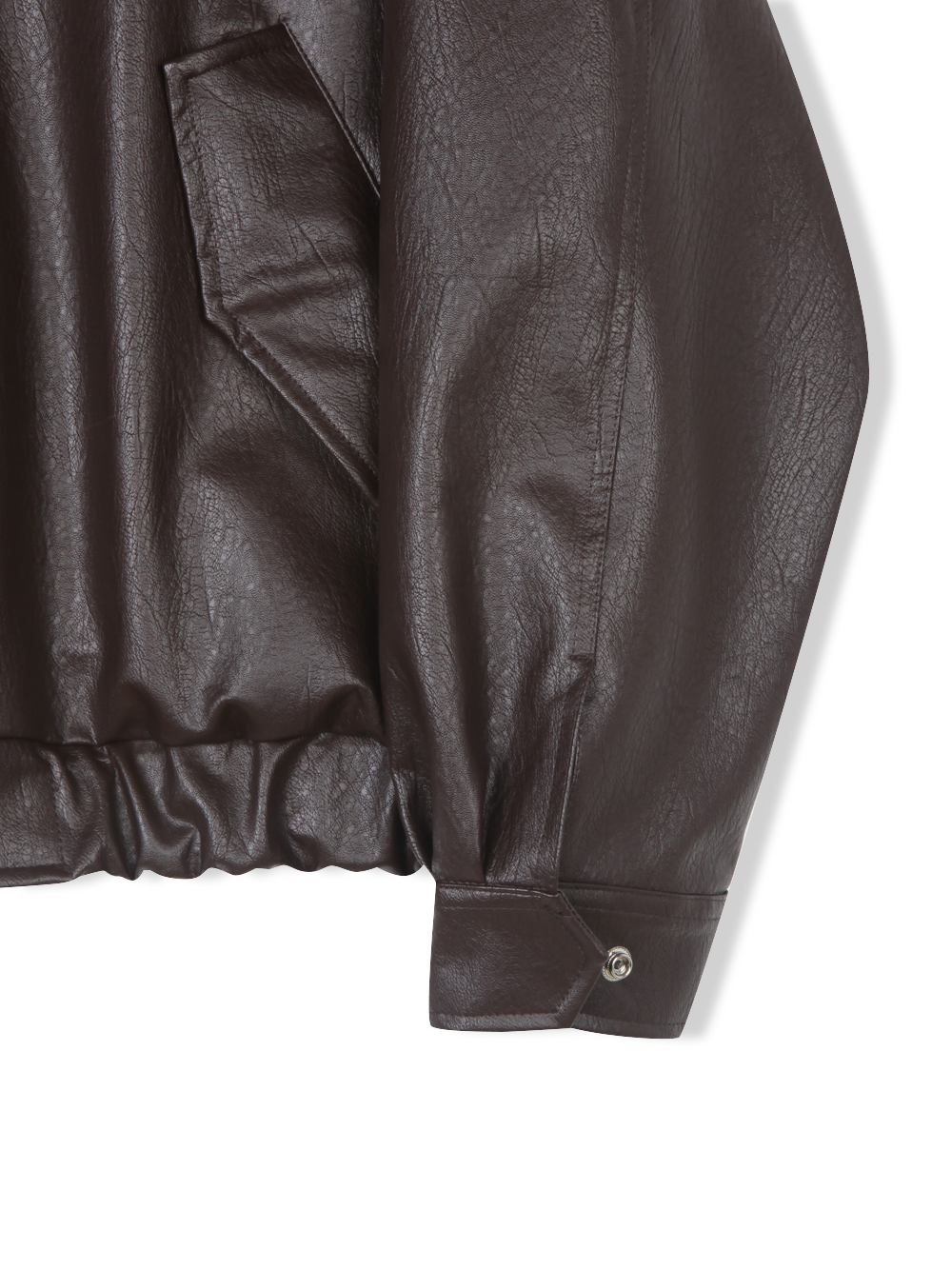 - 폴리우레탄 소재로 레더 특유의 고급스러운 질감과 묵직한 분위기의 자켓