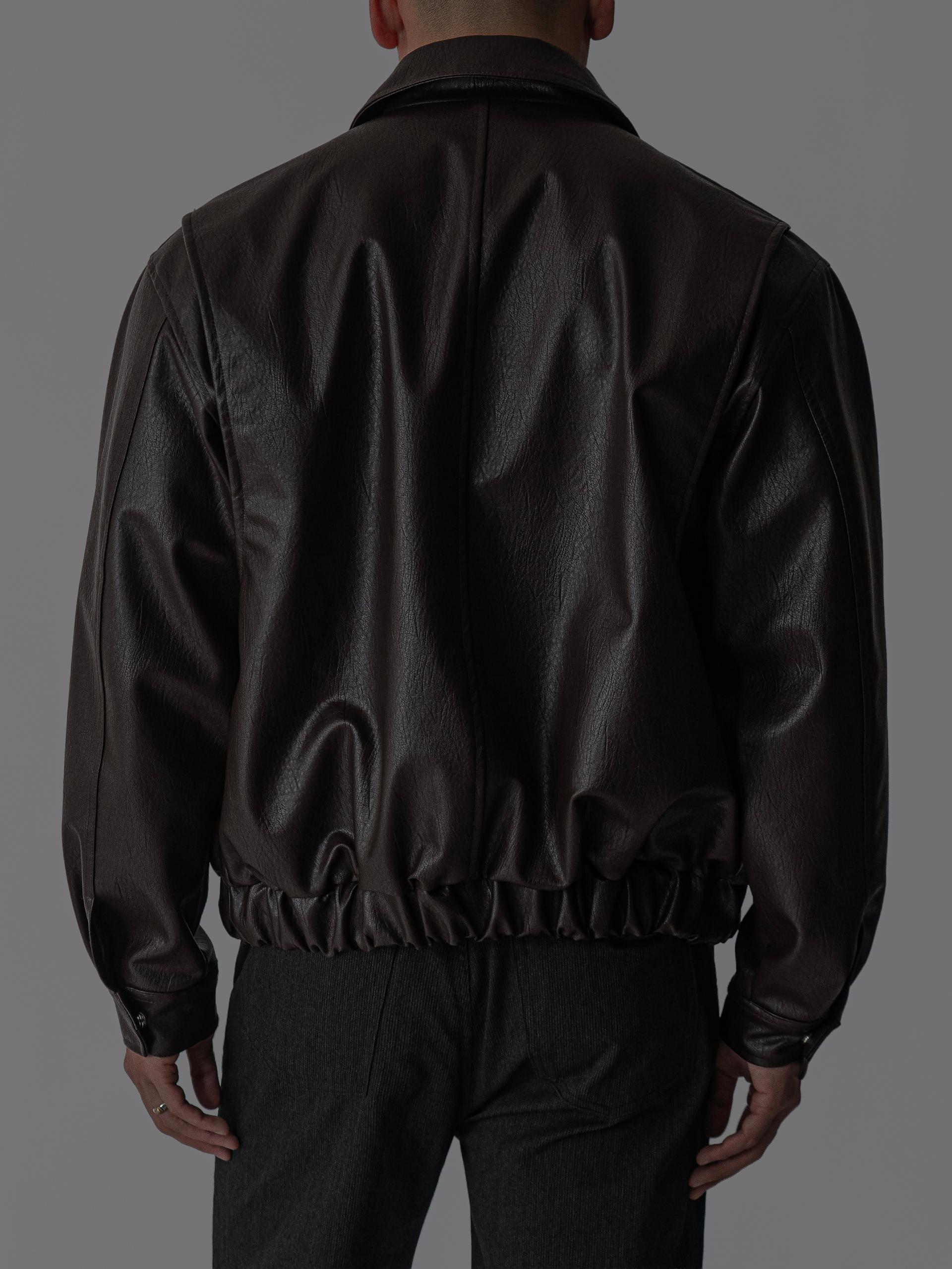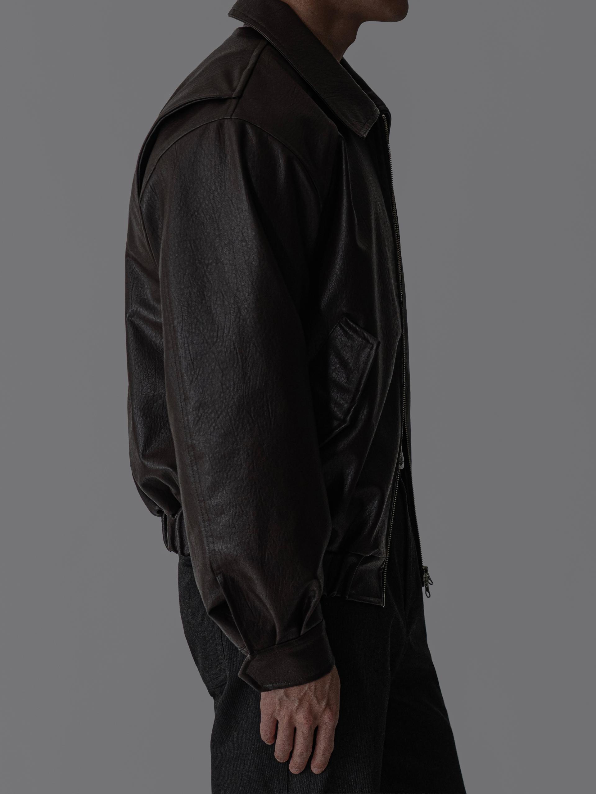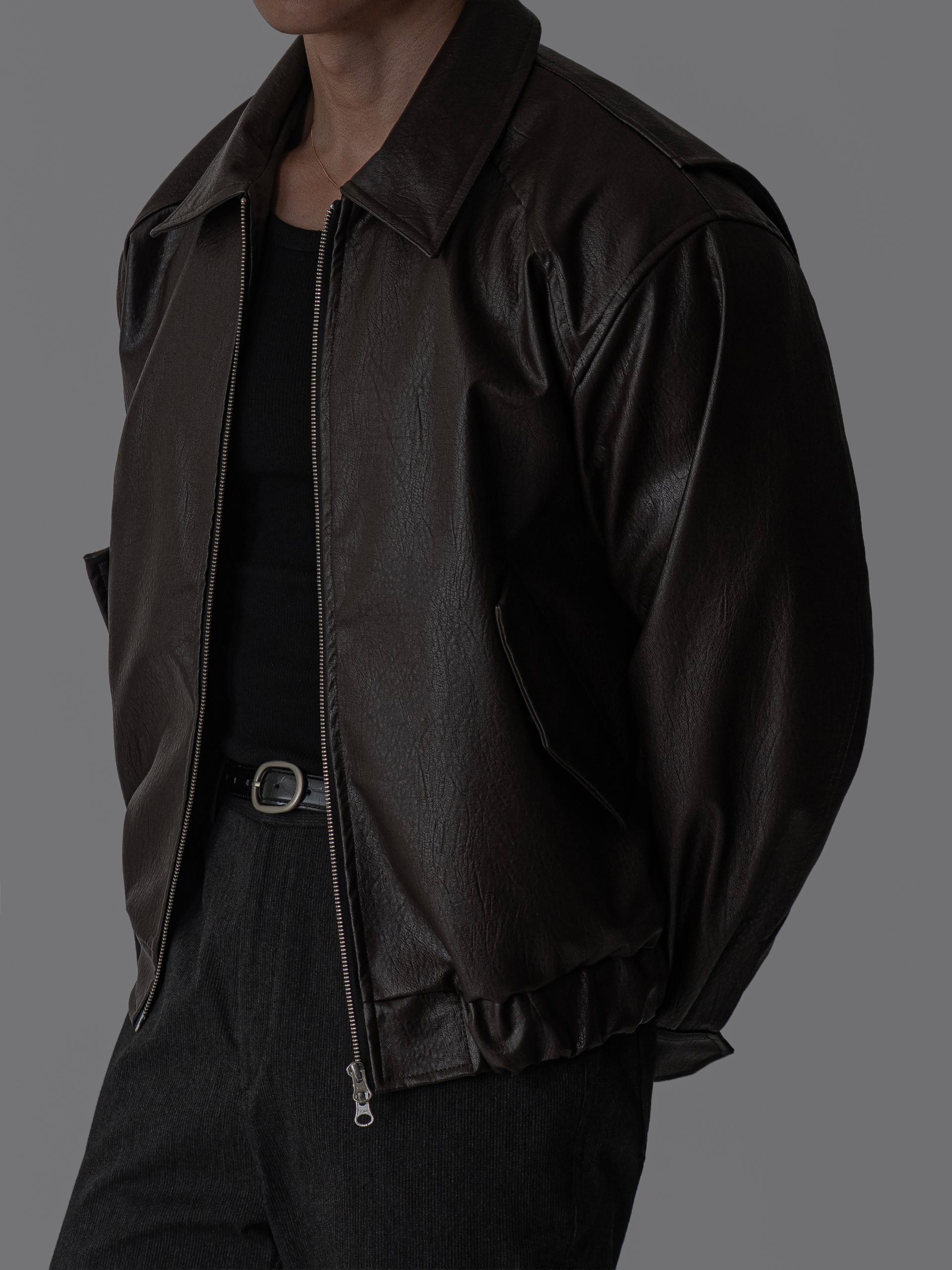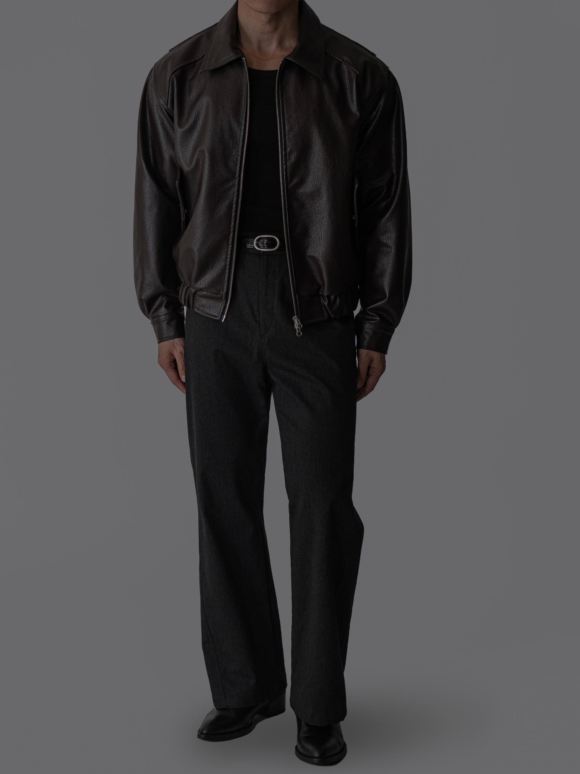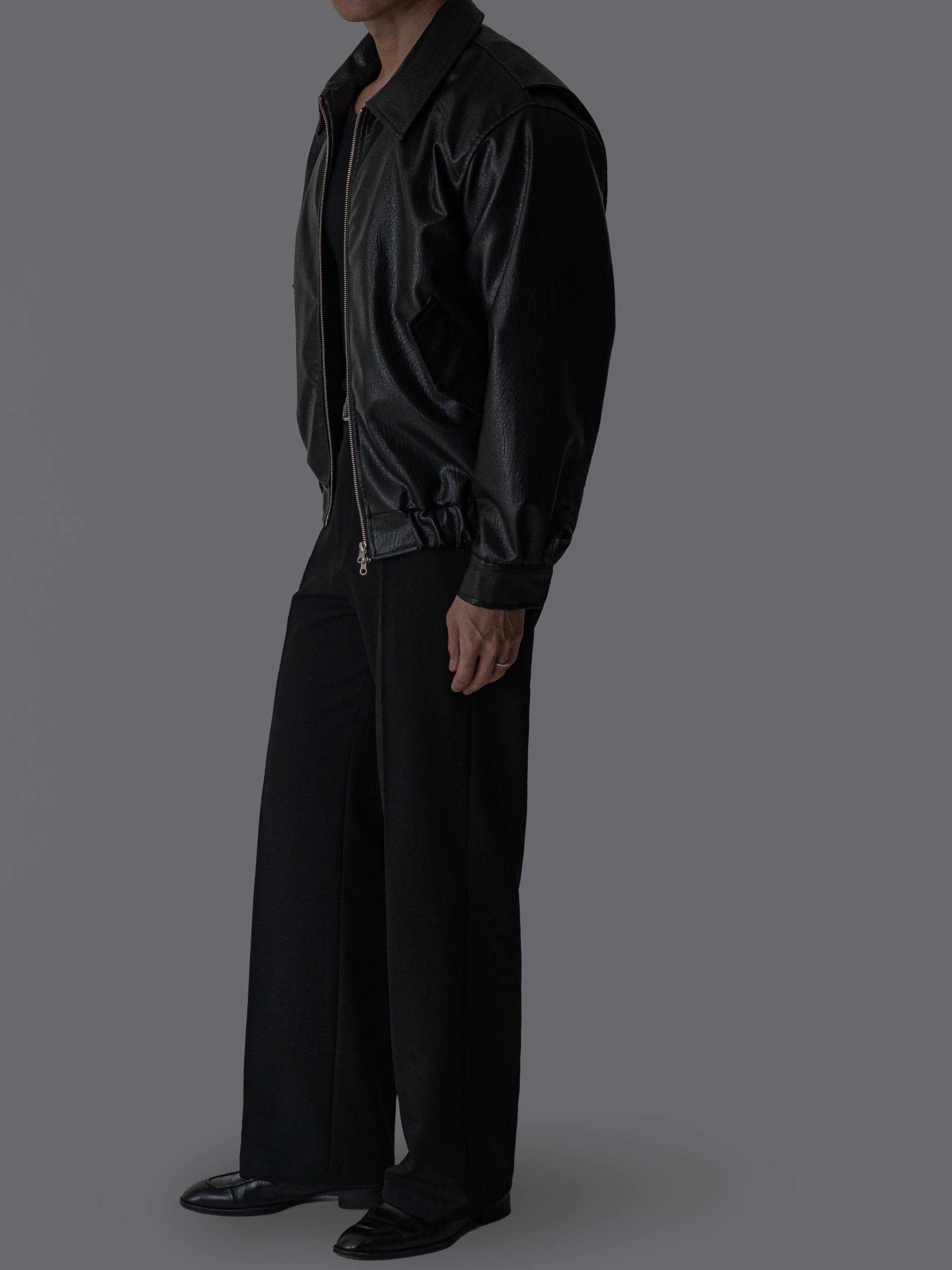 - 폴리우레탄 소재로 레더 특유의 고급스러운 질감과 묵직한 분위기의 자켓