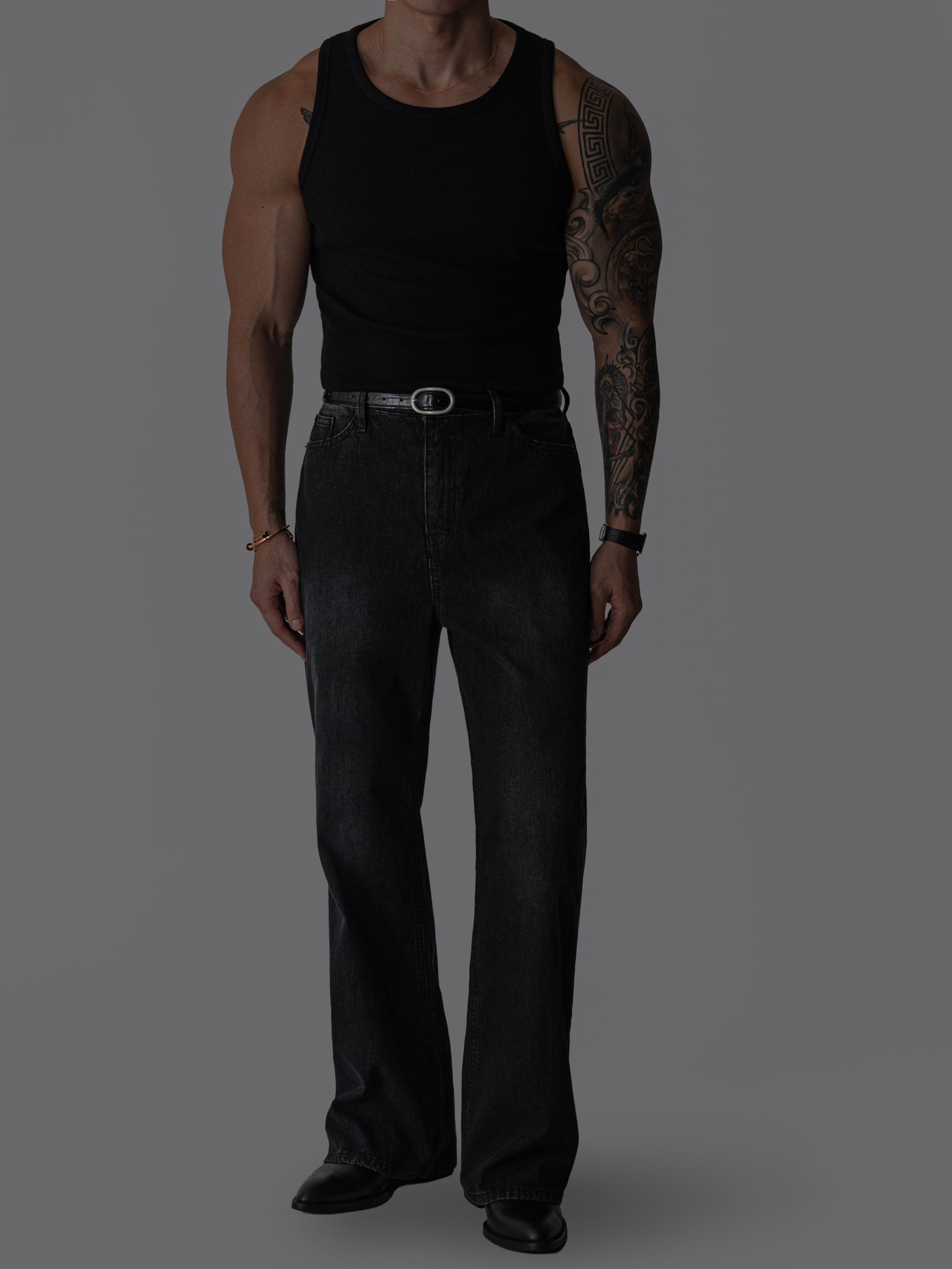 하의 - ikkei PRODUCT 프리미엄 워싱 플레어 골지 데님 팬츠