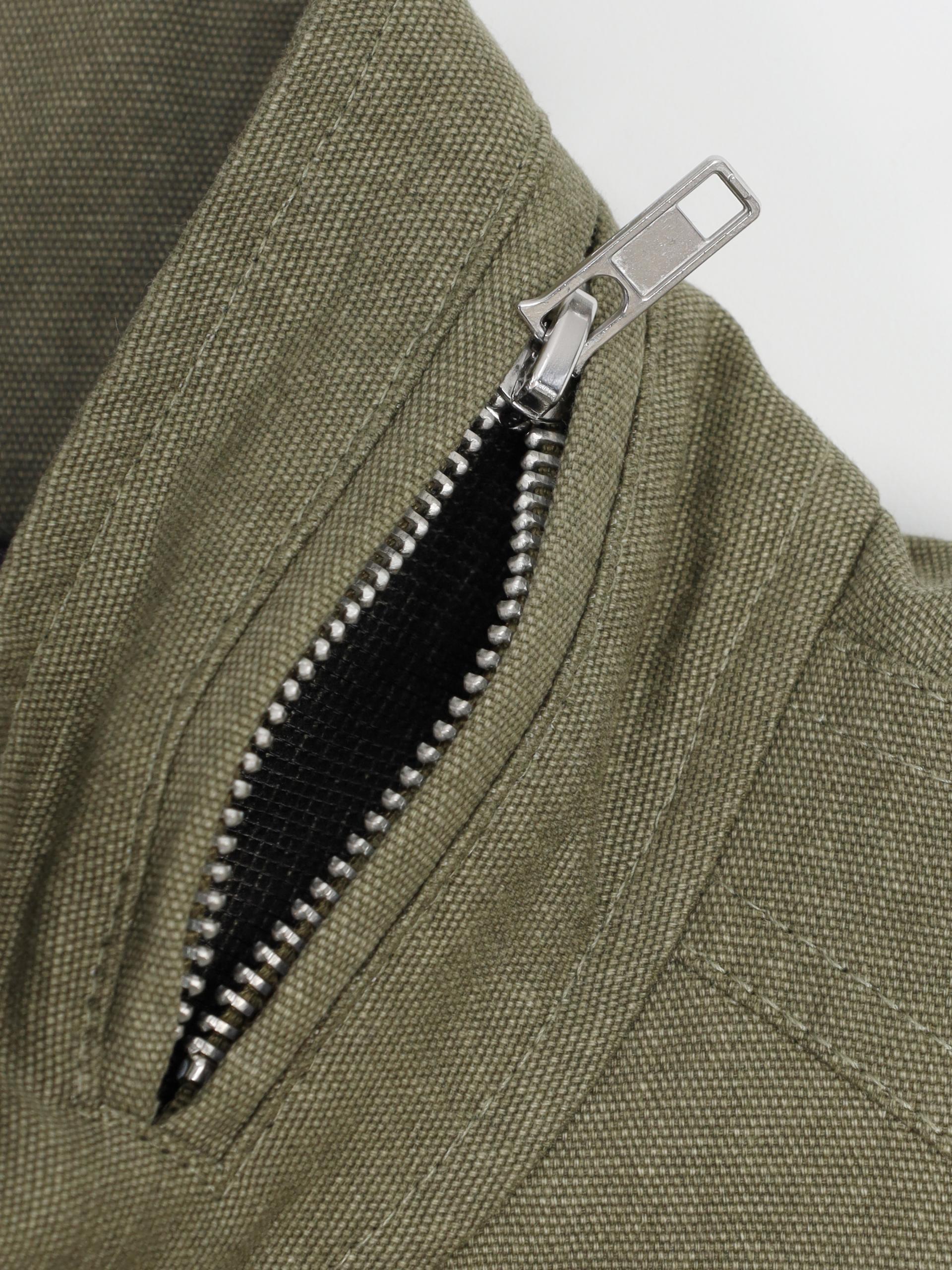 - 소매 지퍼 디테일과 요크 숄더 패턴으로 완성도를 높인 디자인