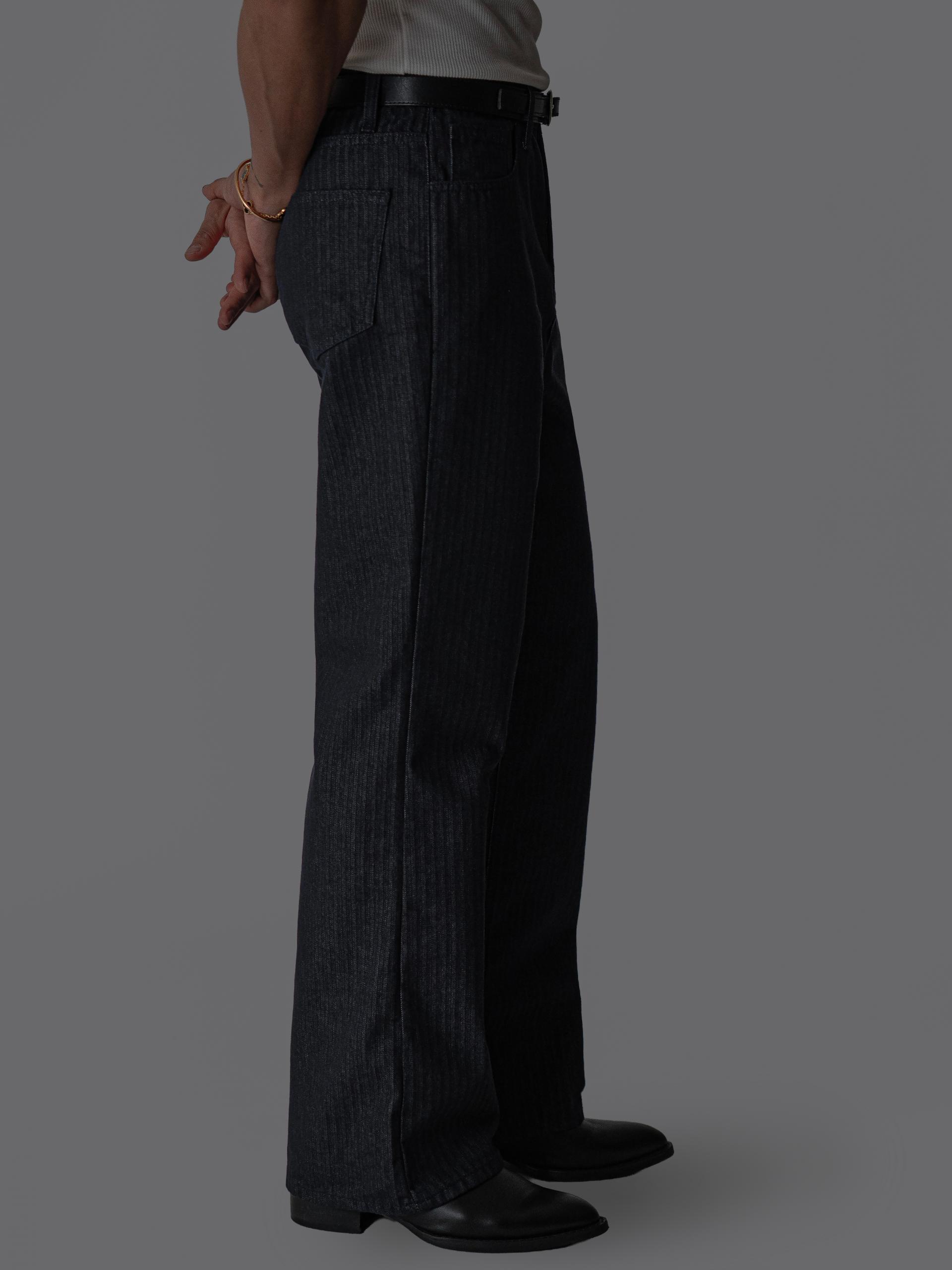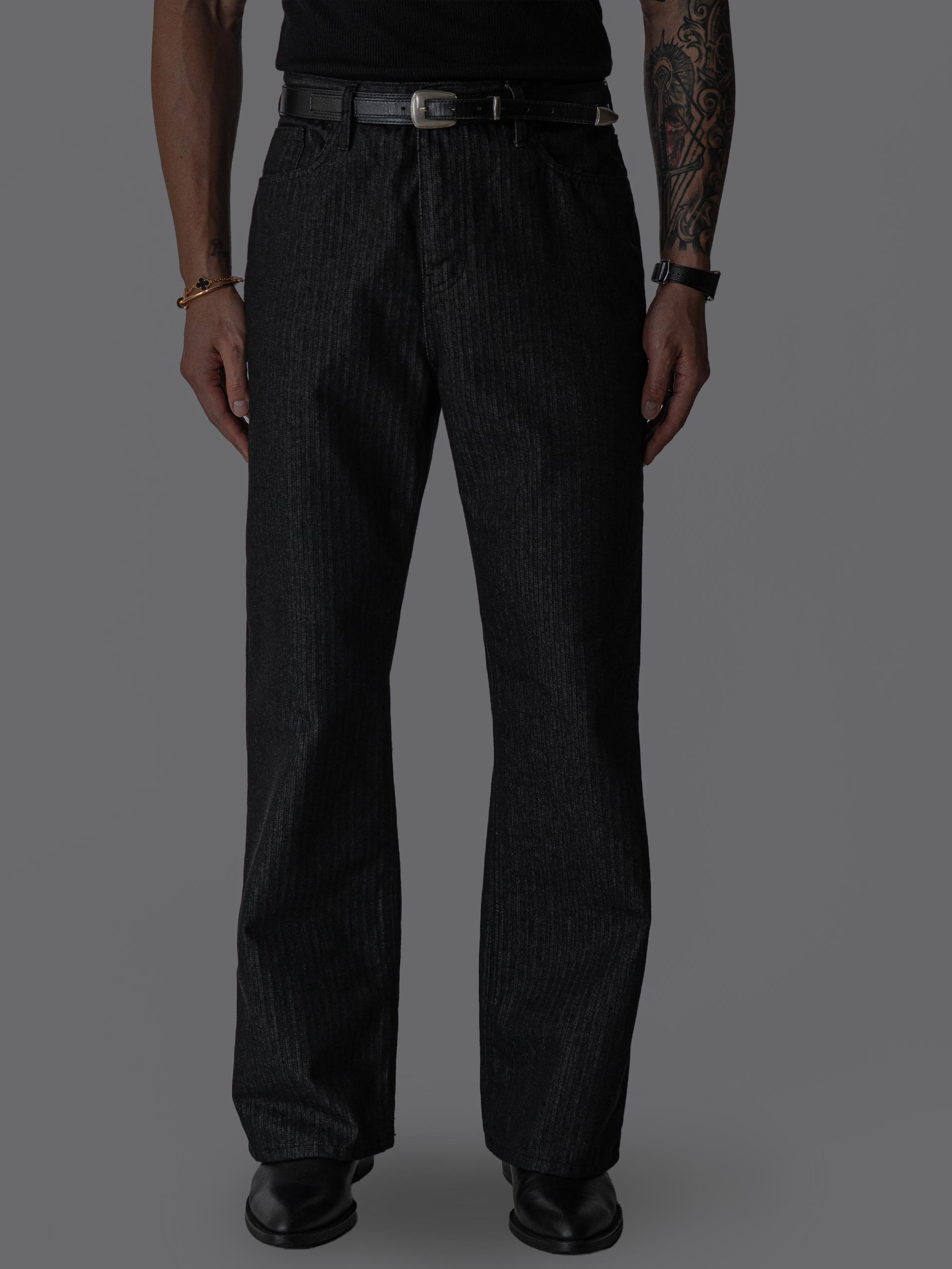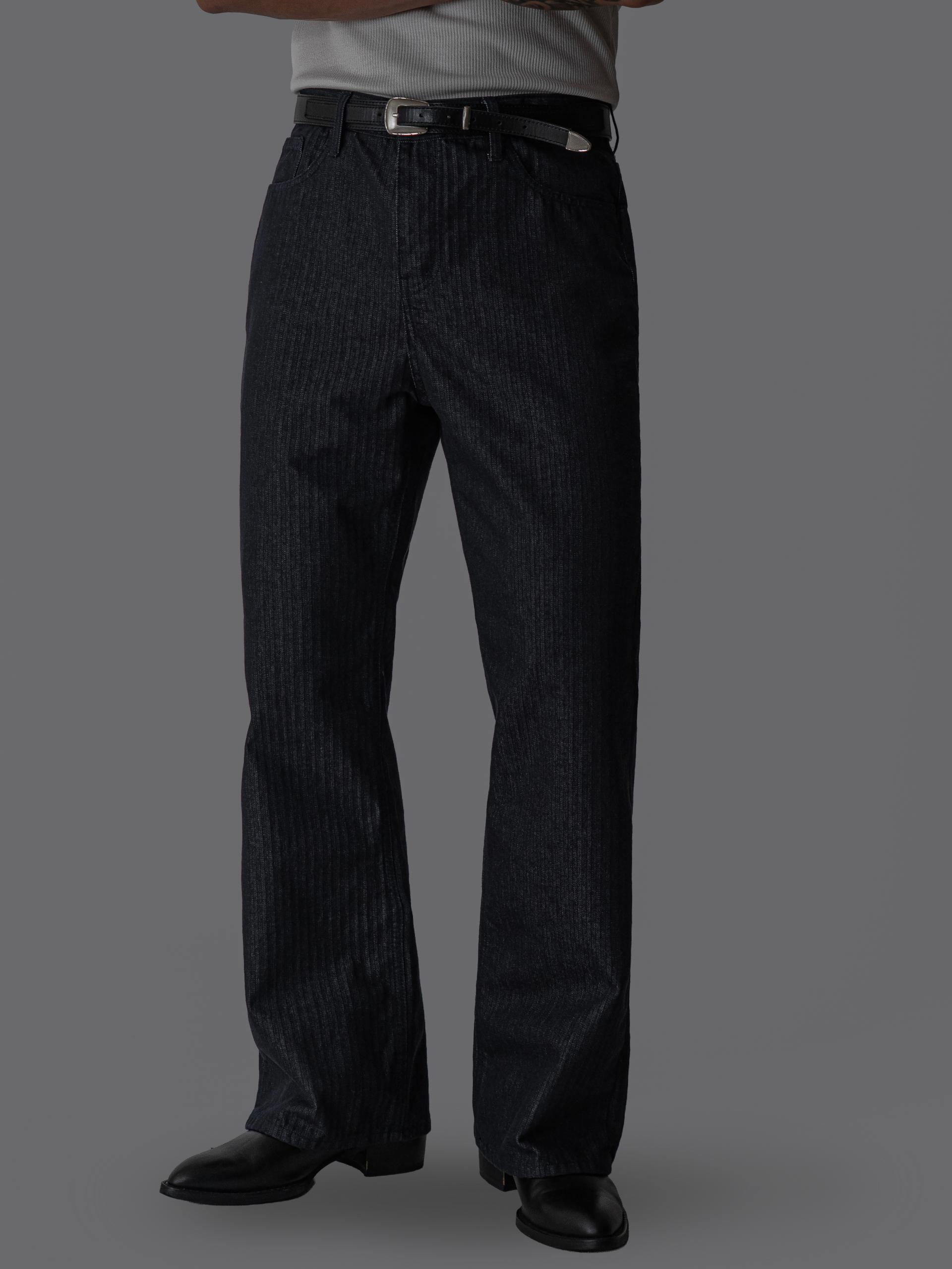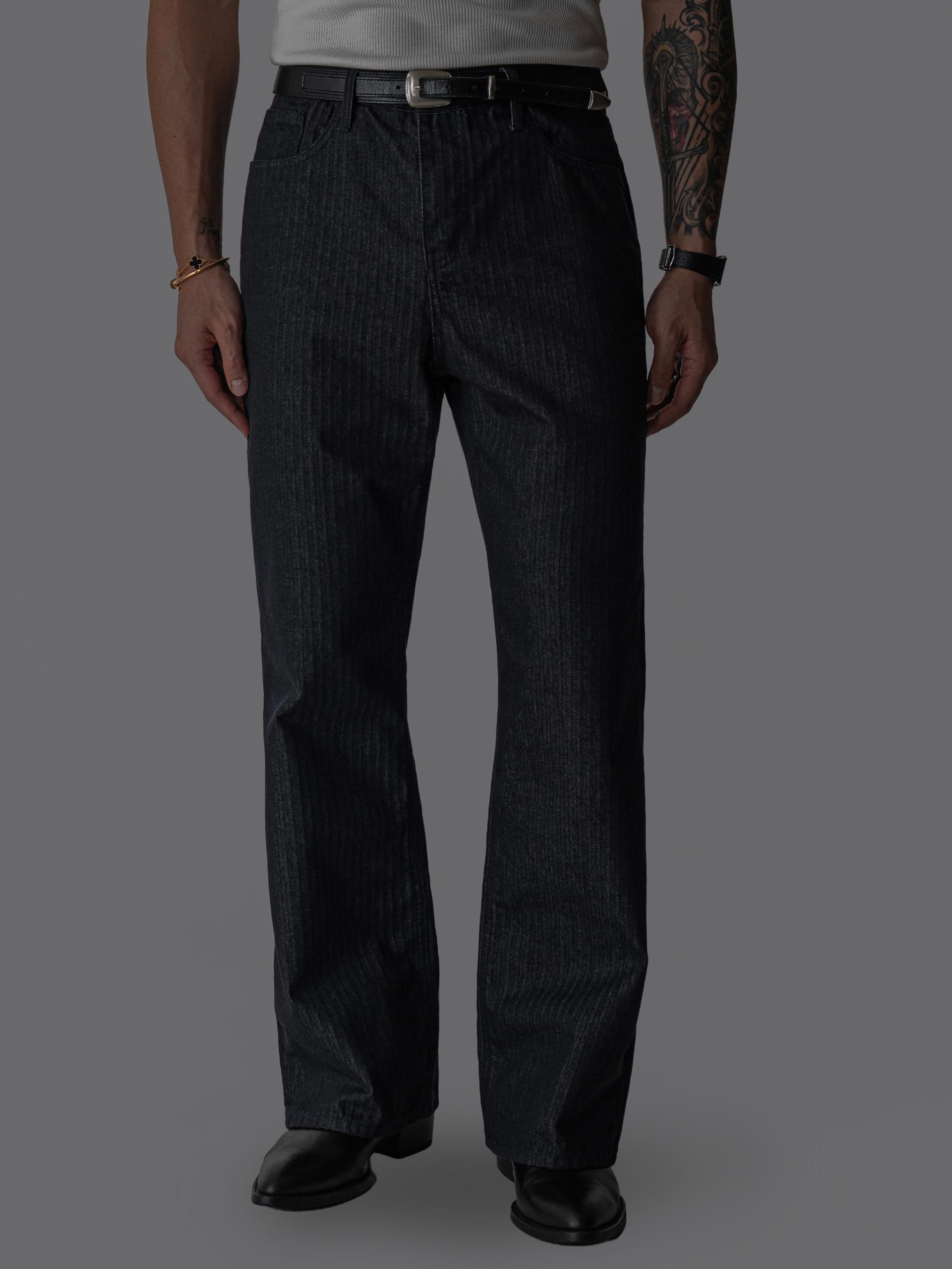 - 헤링본 조직감이 은은하게 드러나는 코튼 100% 헤링본 데님 원단의 플레어 팬츠