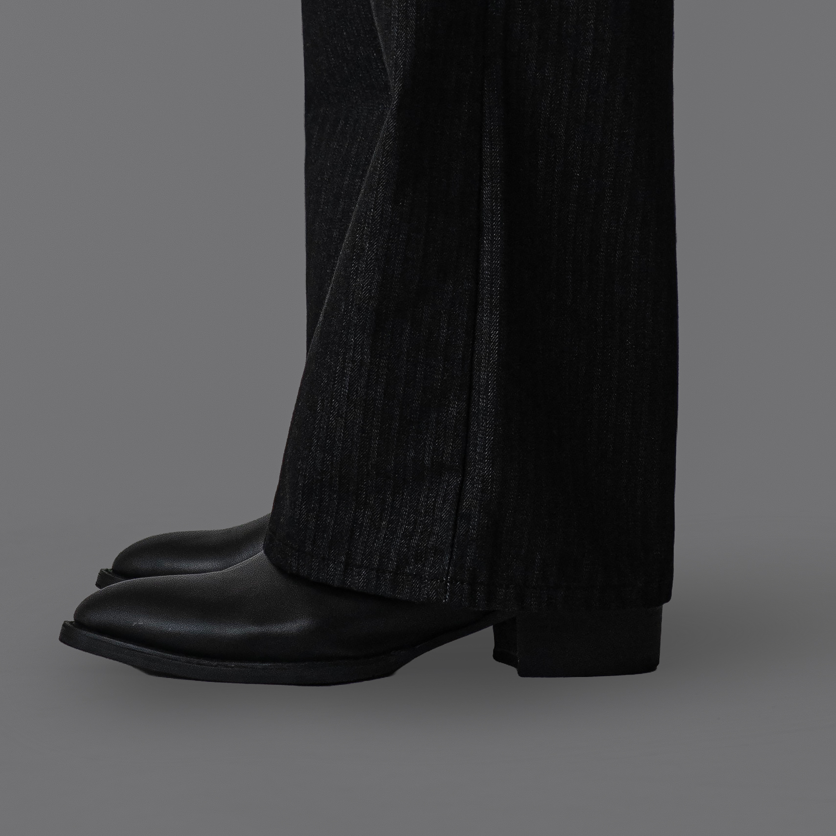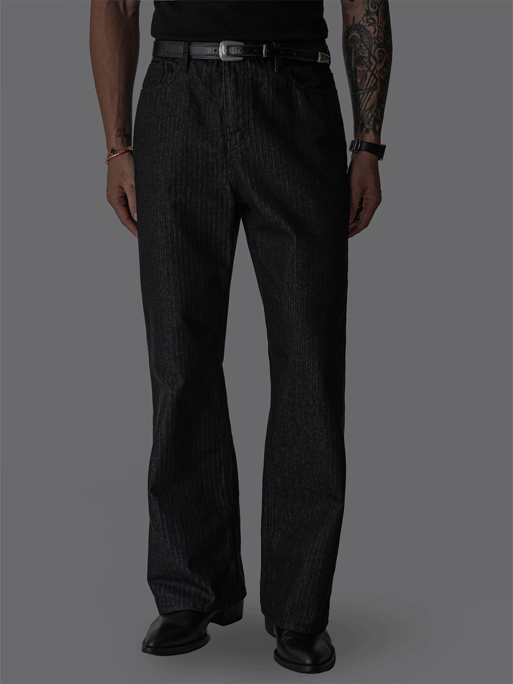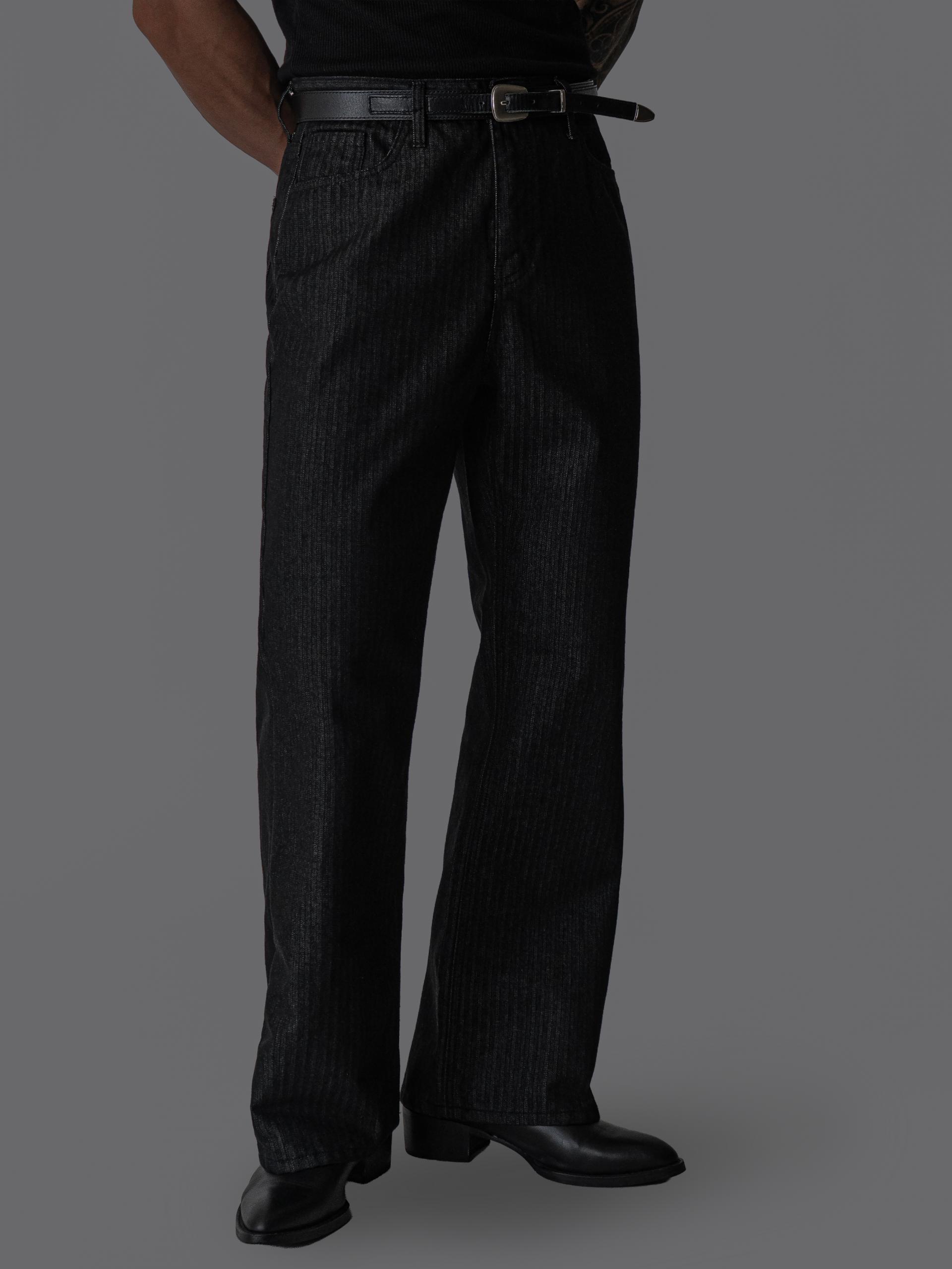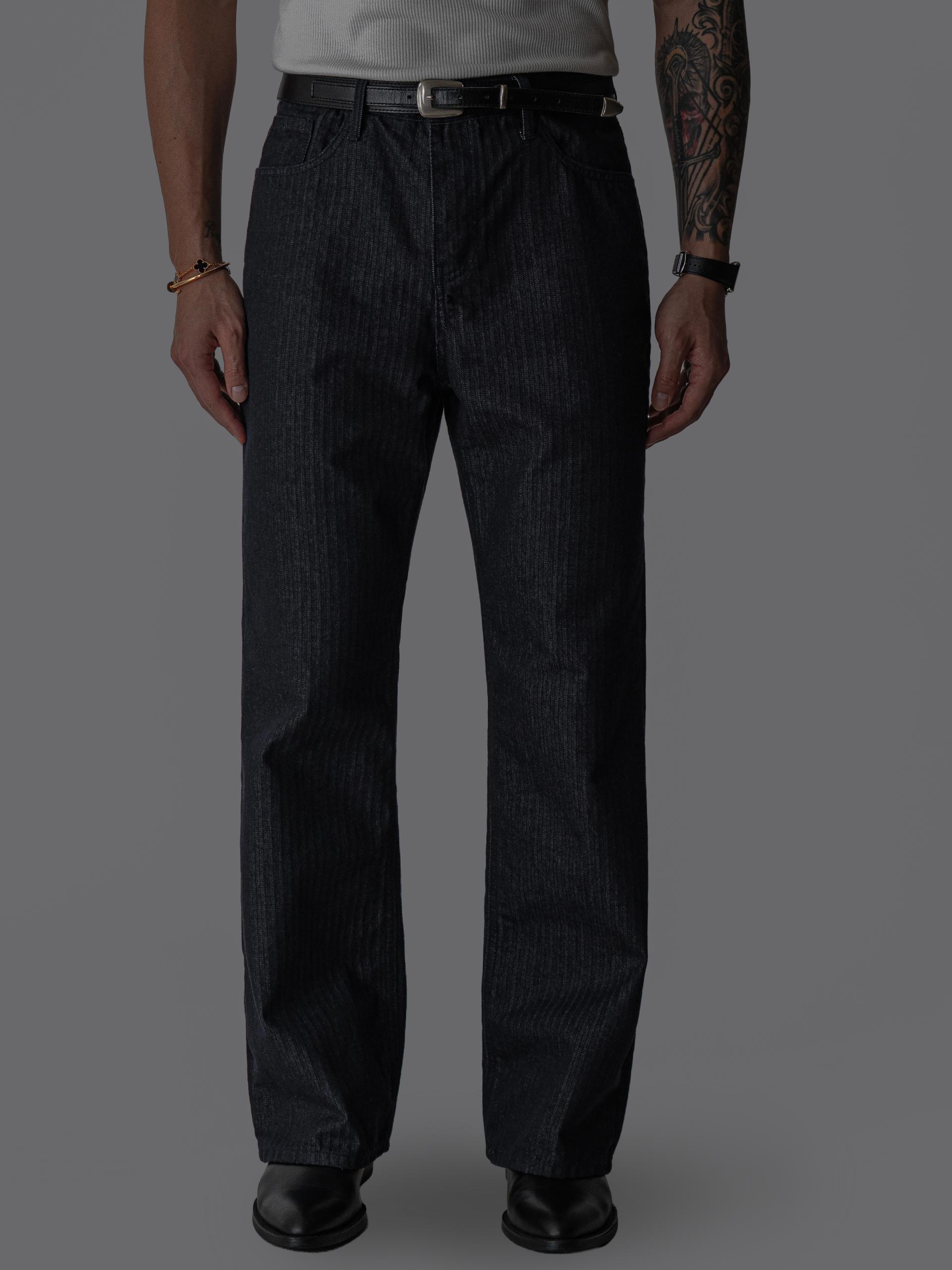 - 헤링본 조직감이 은은하게 드러나는 코튼 100% 헤링본 데님 원단의 플레어 팬츠