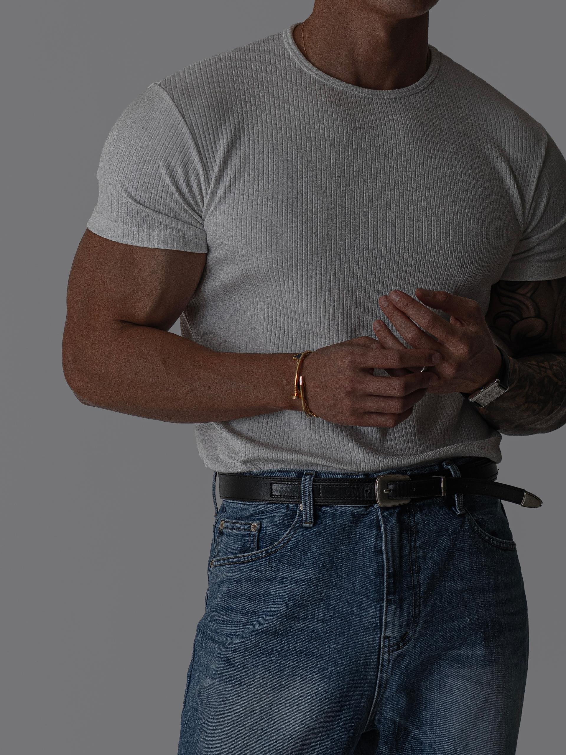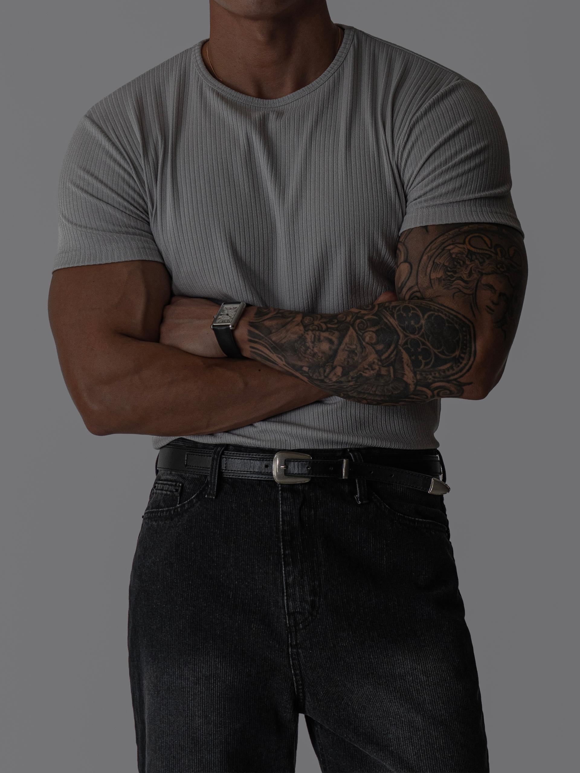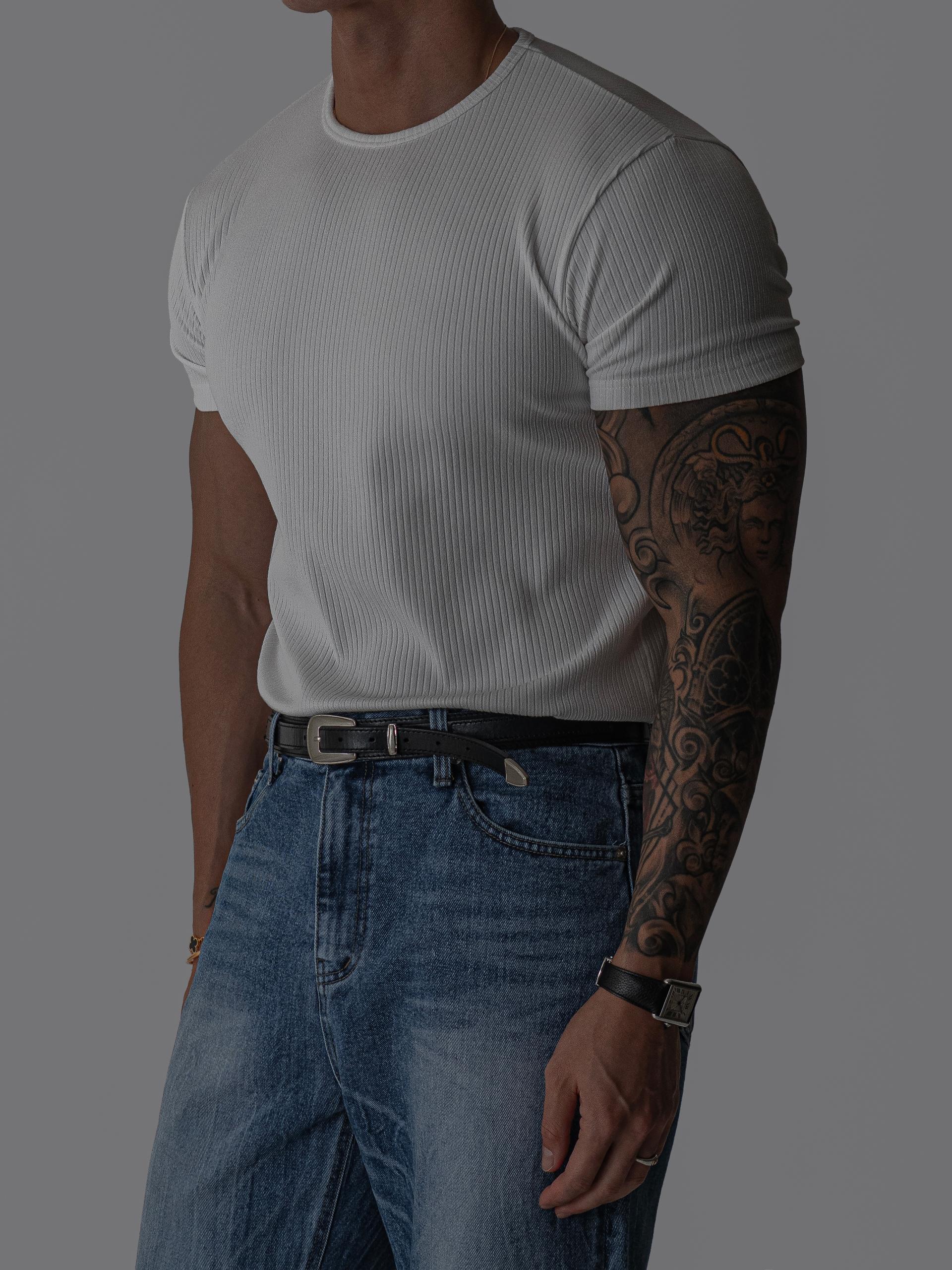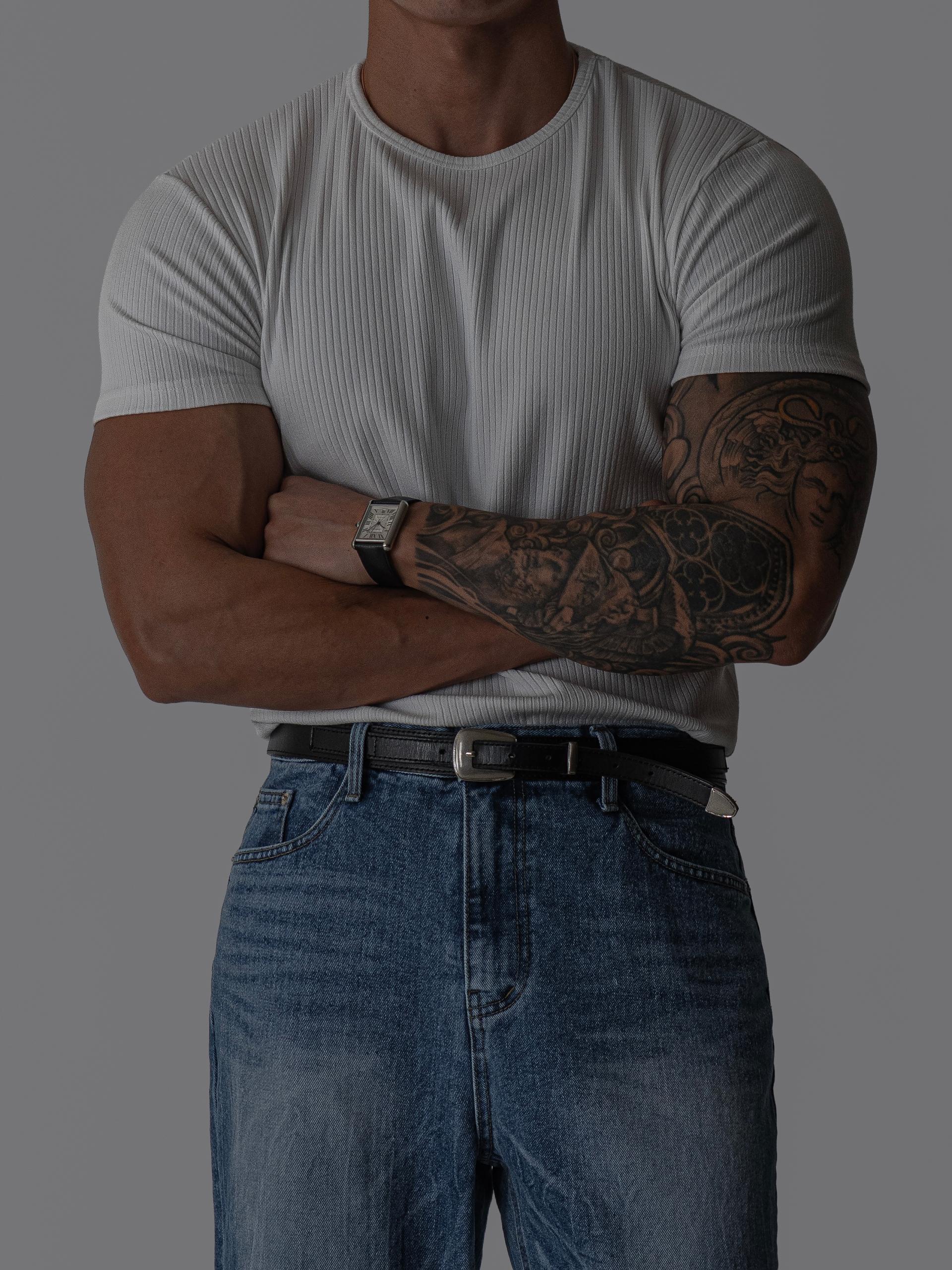 - 타이트한 암홀 설계로 팔 라인을 확실하게 잡아주는 머슬핏