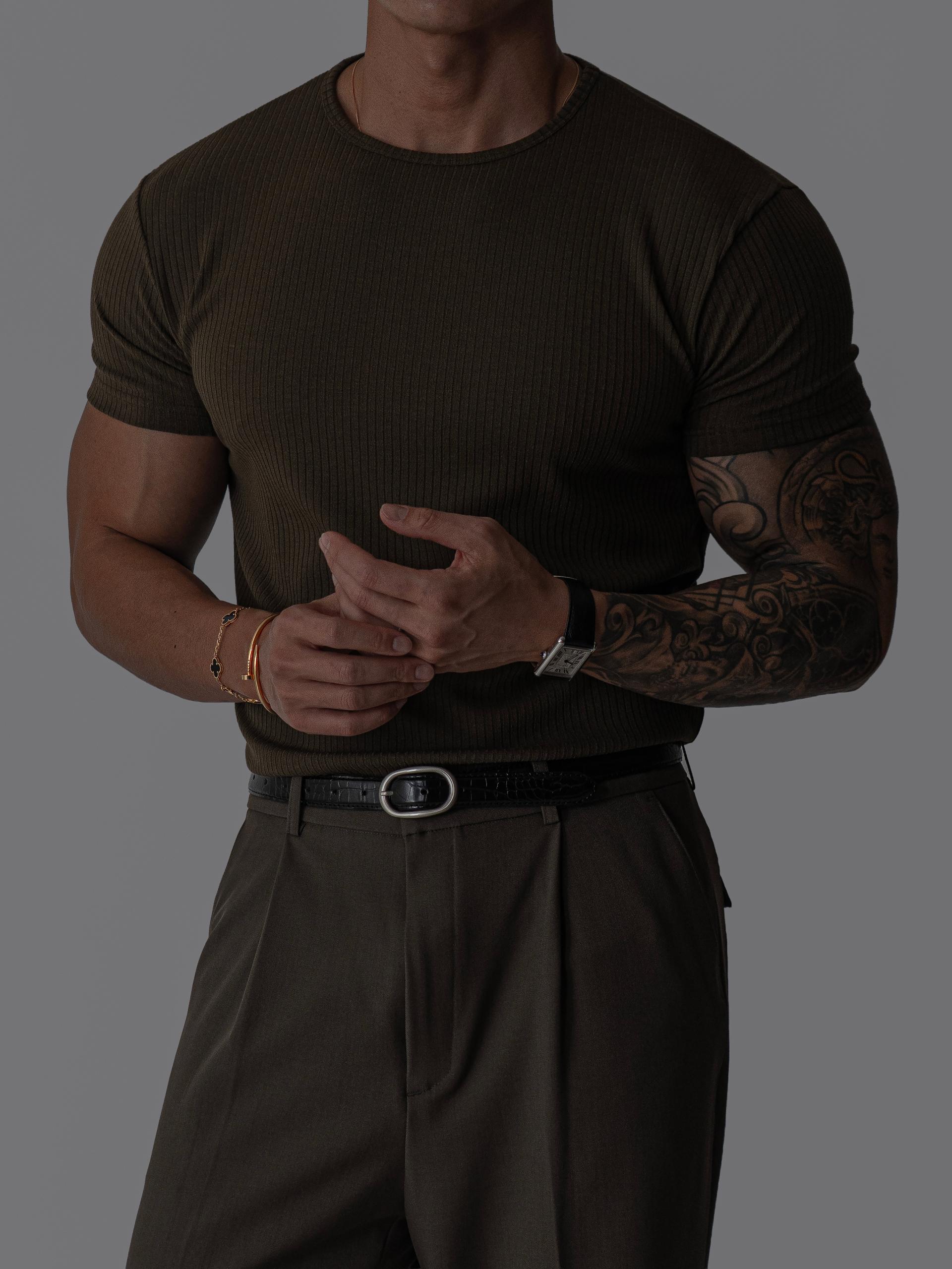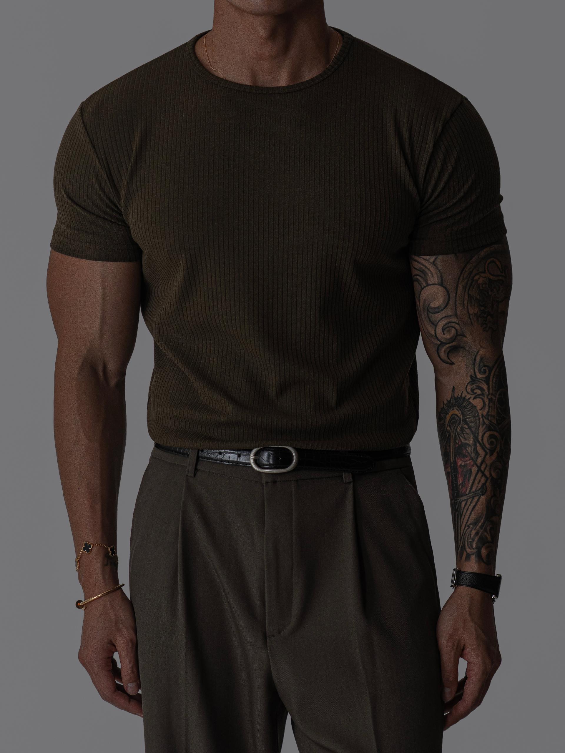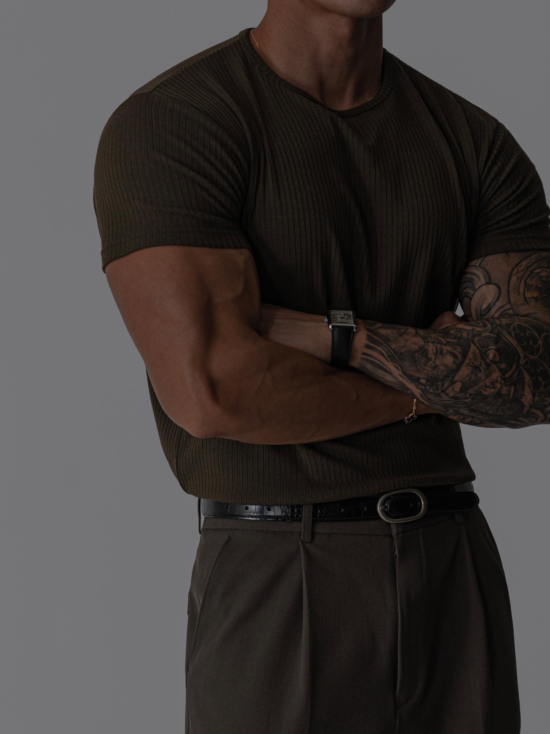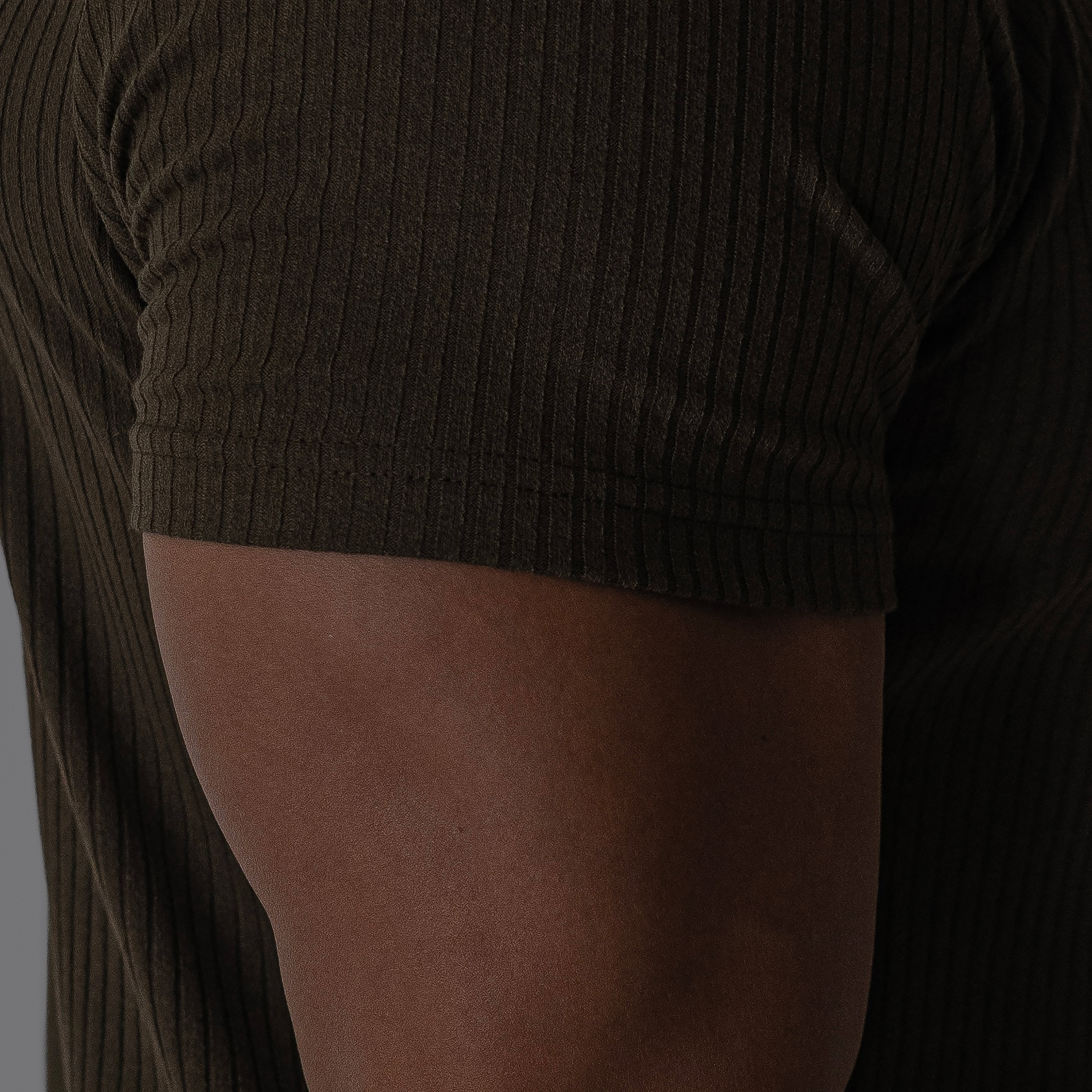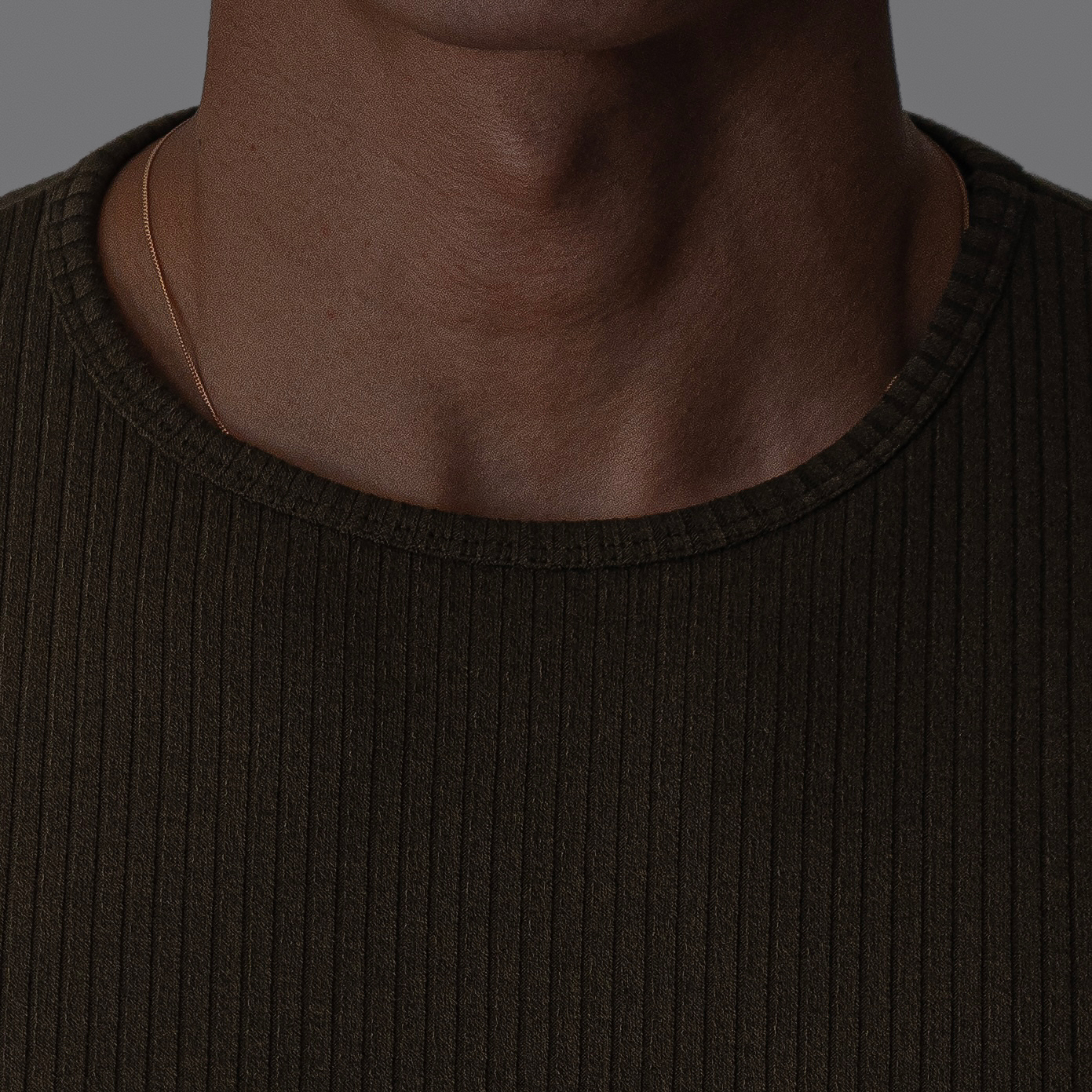 - 세로 골지 패턴으로 자연스럽게 상체 라인을 부각시켜주는 실루엣