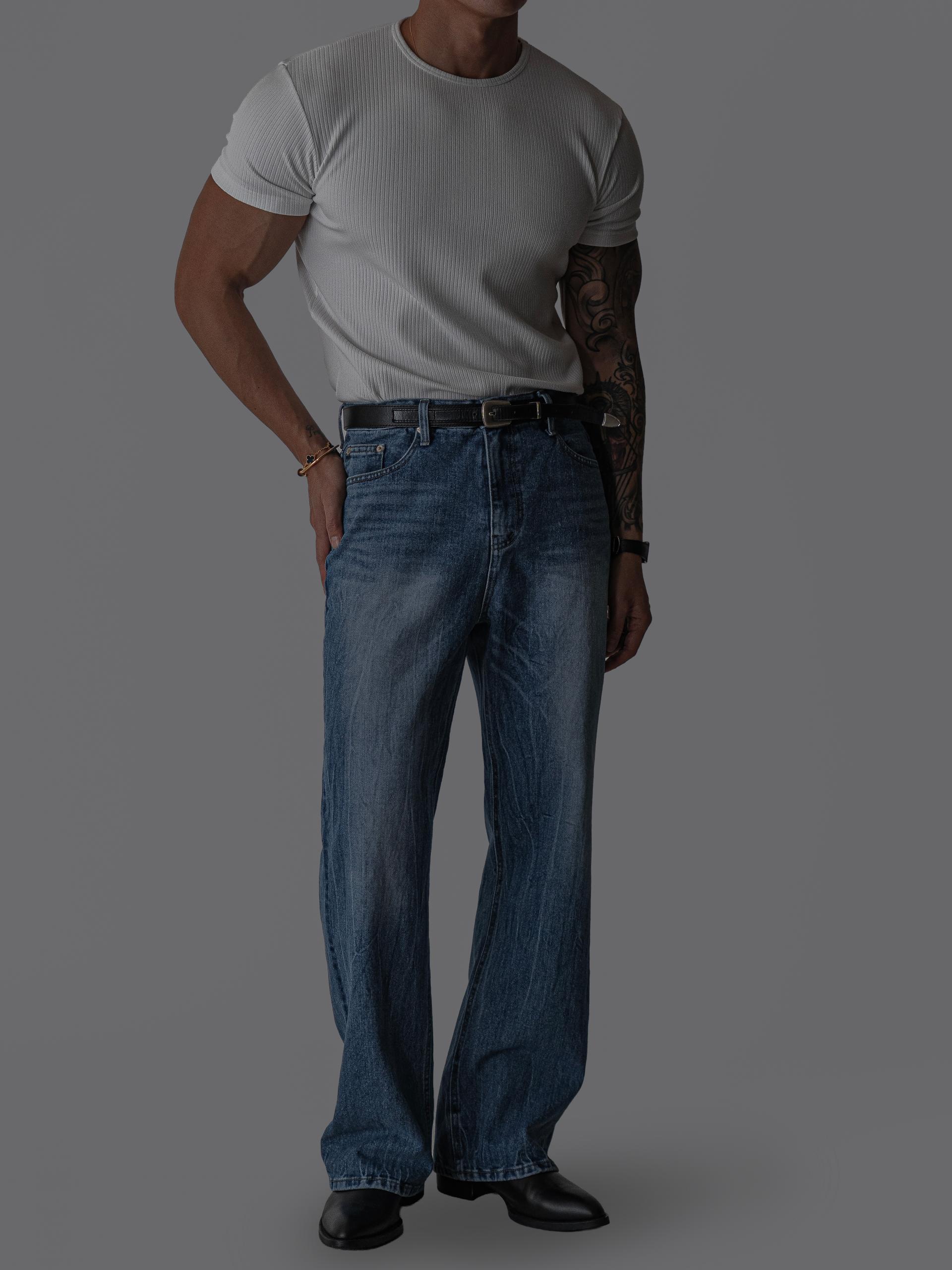 하의 - ikkei PRODUCT 프리미엄 워싱 플레어 골지 데님 팬츠